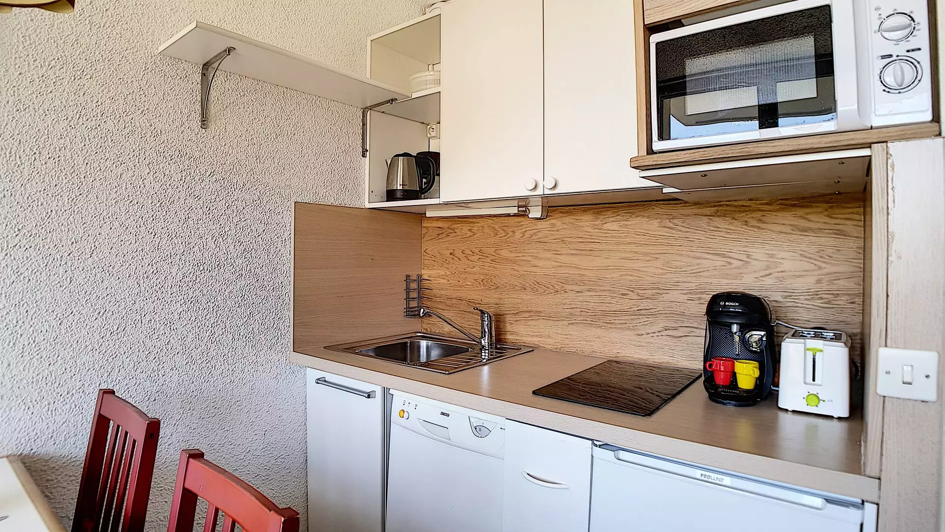 Kitchen equipped with 2 ceramic hobs, microwave, refrigerator, coffee maker, kettle and toaster, Tassimo coffee machine, dishwasher