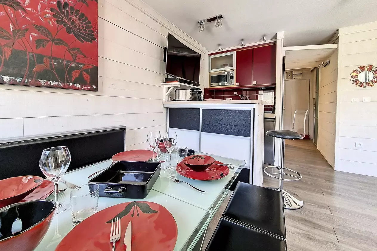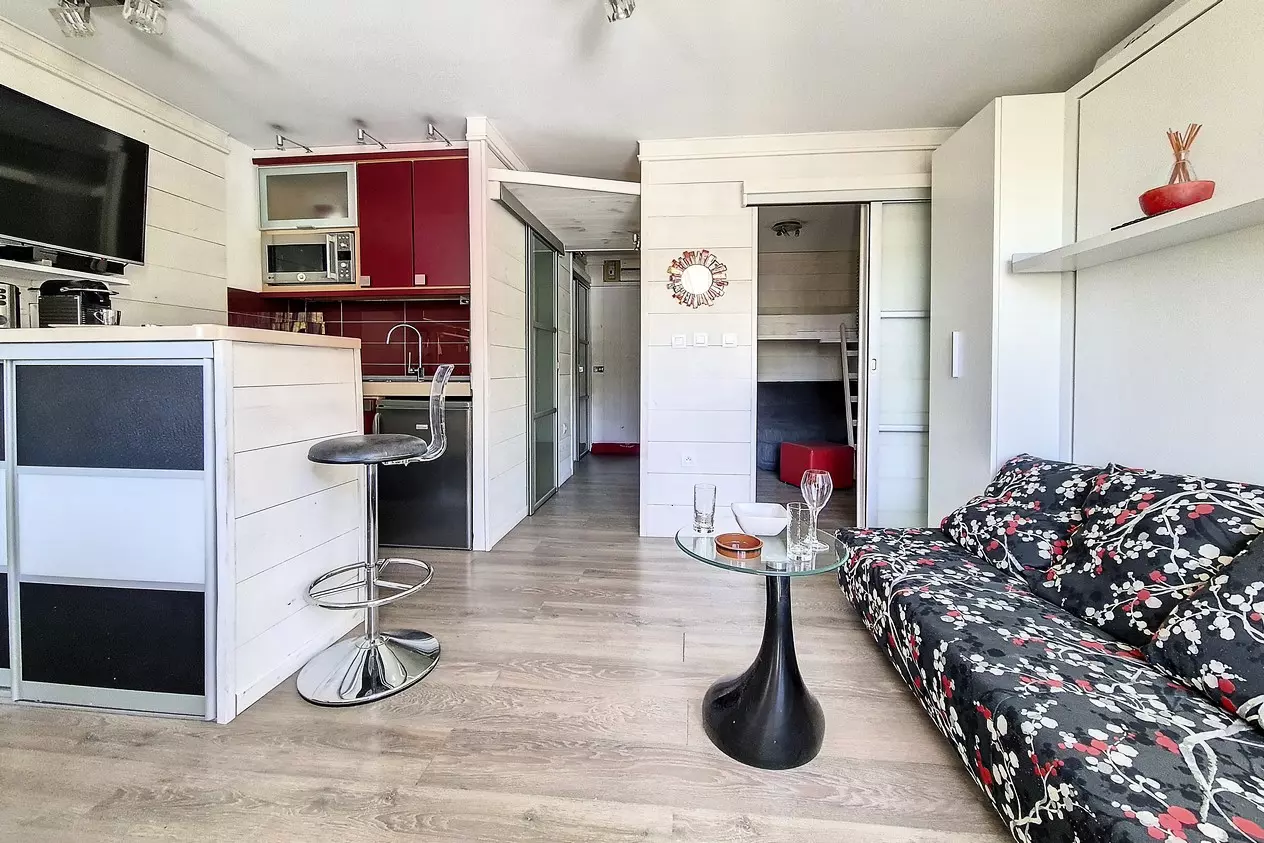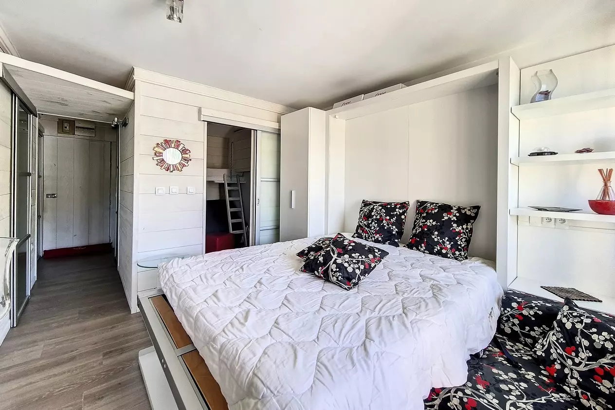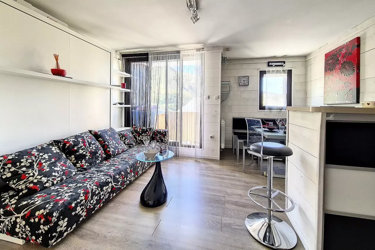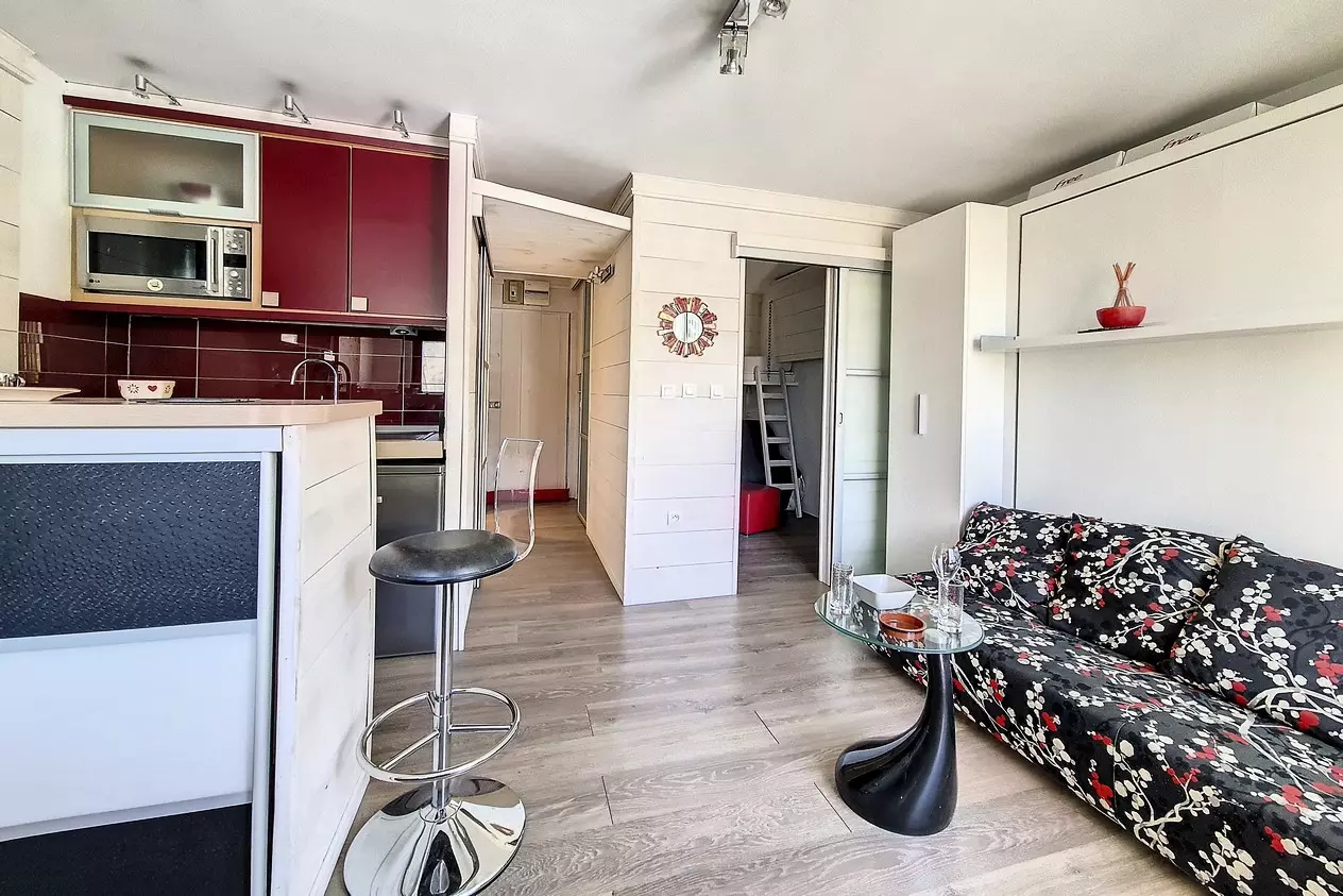 Charming 28m² studio apartment with a sleeping alcove, accommodating up to 4 people, completely renovated. Located on the 3rd floor, it features a west-facing balcony and is equipped with electric shutters.