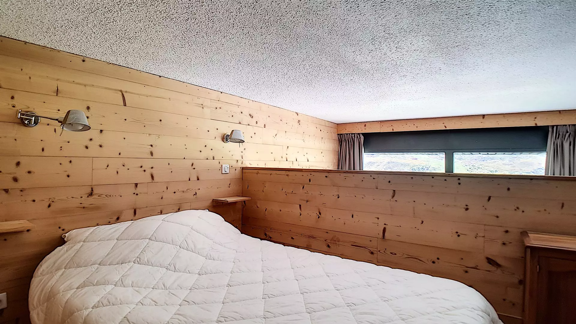 Bedroom 2: (in an open mezzanine, with windows, and directly overlooking the living room - ceiling height: 1.60m): 1 double bed.