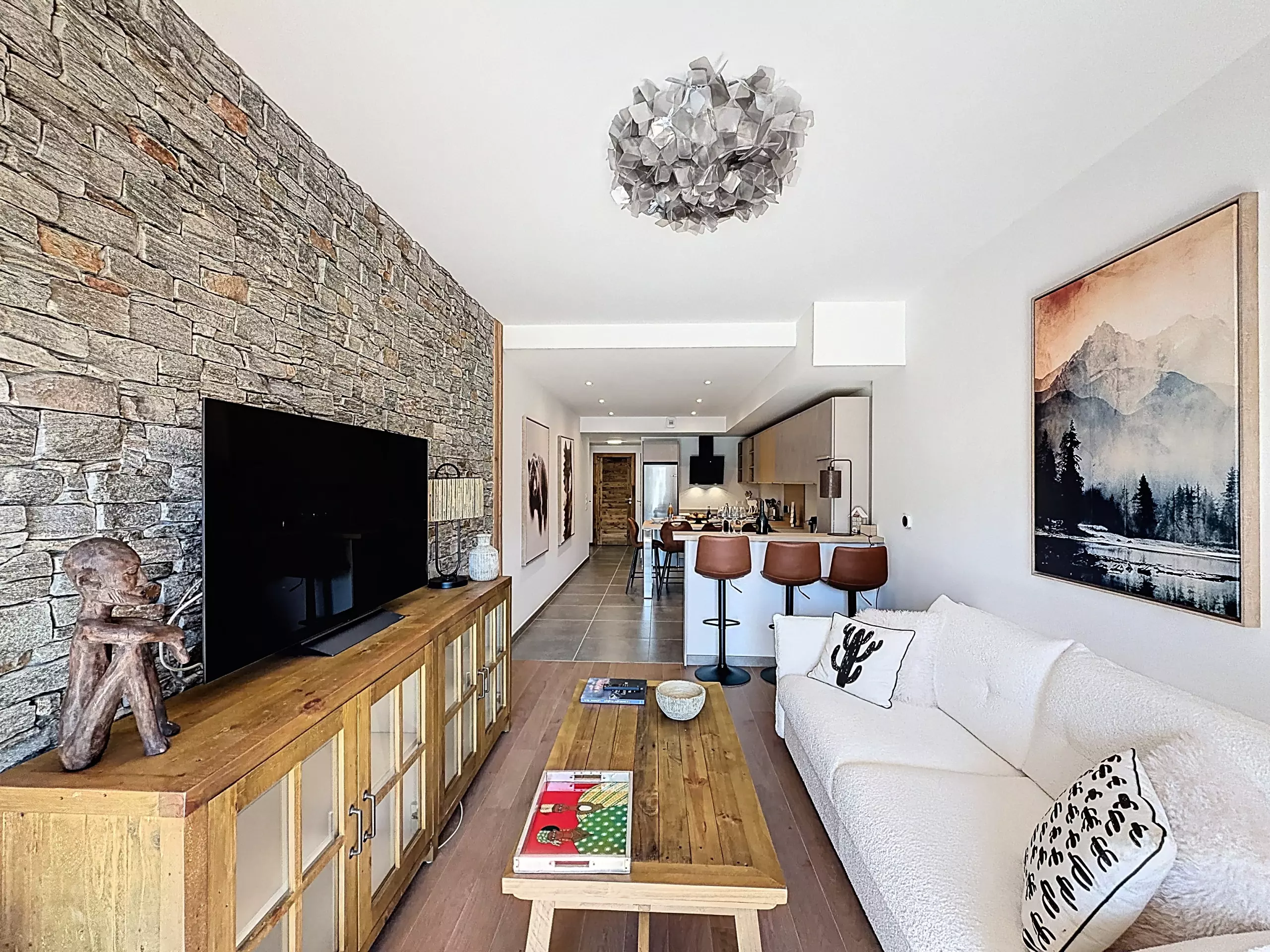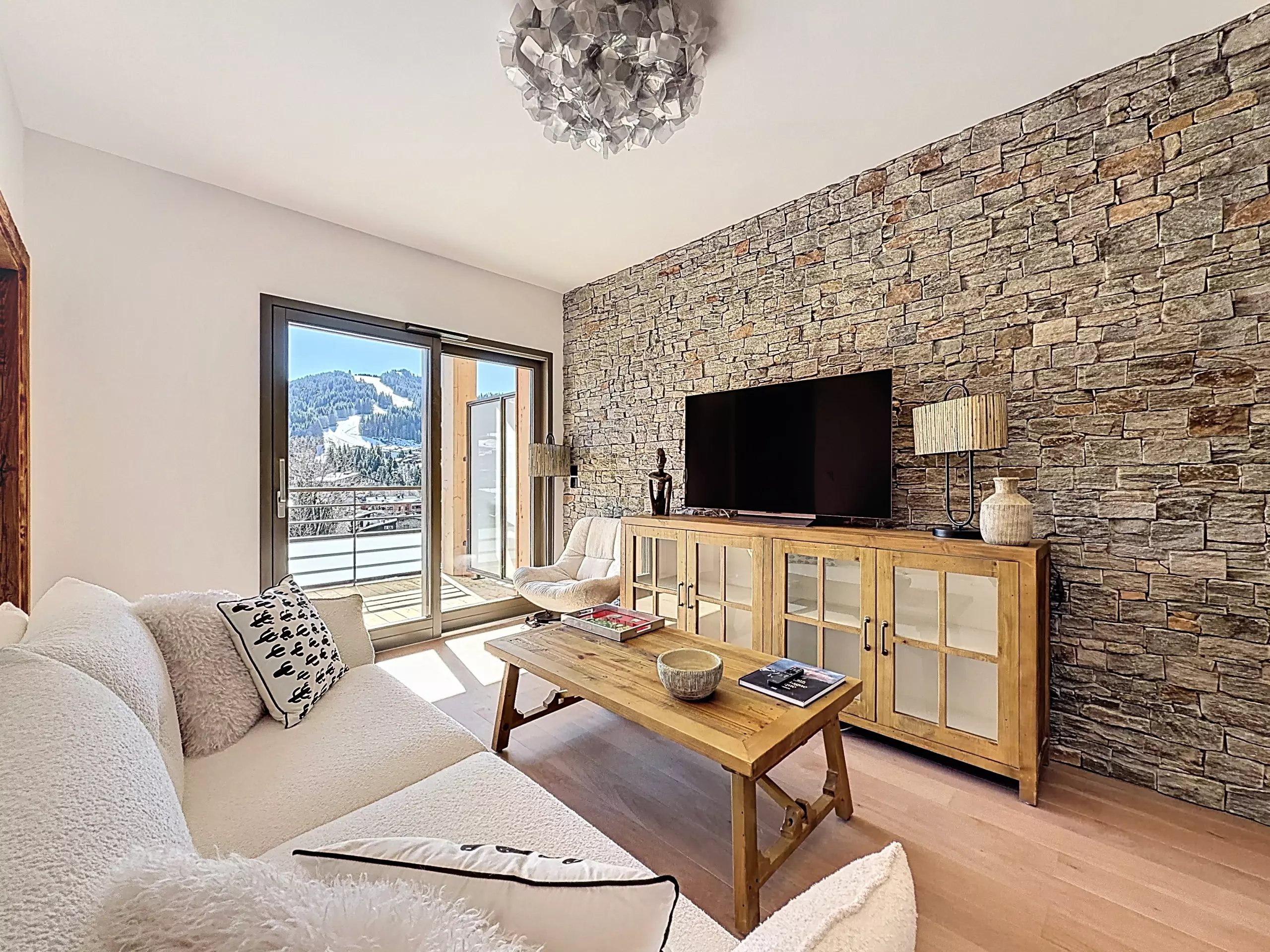 Discover "Le Louro", a modern and elegant apartment located in the heart of Les Gets, perfect for a stay with family or friends. This carefully furnished accommodation offers a warm setting for 6 people.