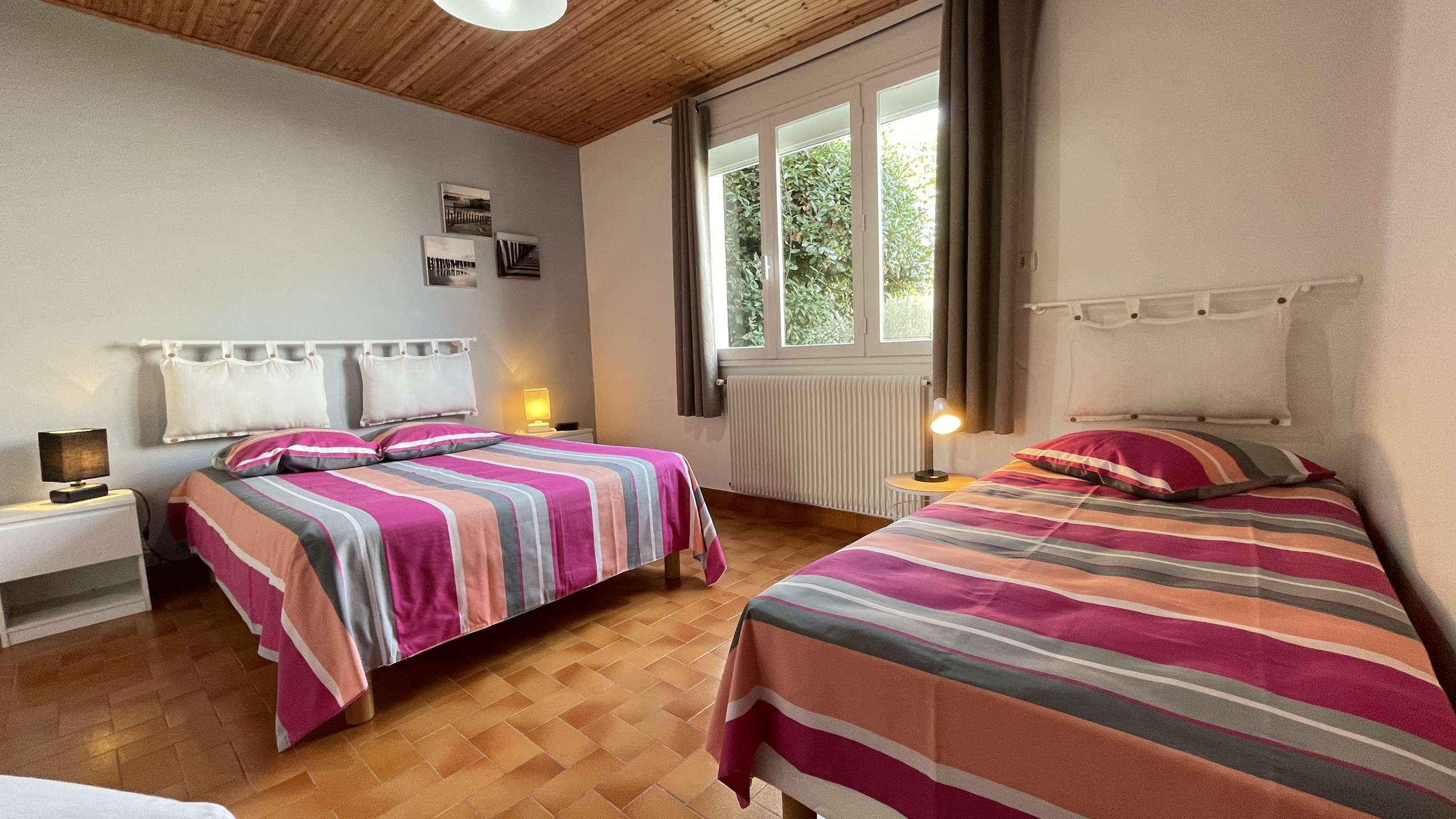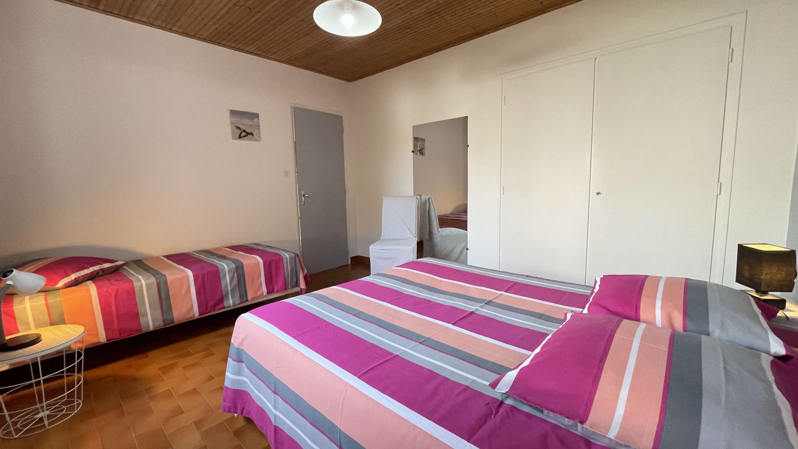 Located 800 m from the beach and 700 m from the village, this comfortable independent house consists of an entrance, a living room overlooking the garden, an equipped kitchen, a bedroom with a double bed and a bed single, another bedroom with a double bed, a bathroom and a separate toilet. Garage