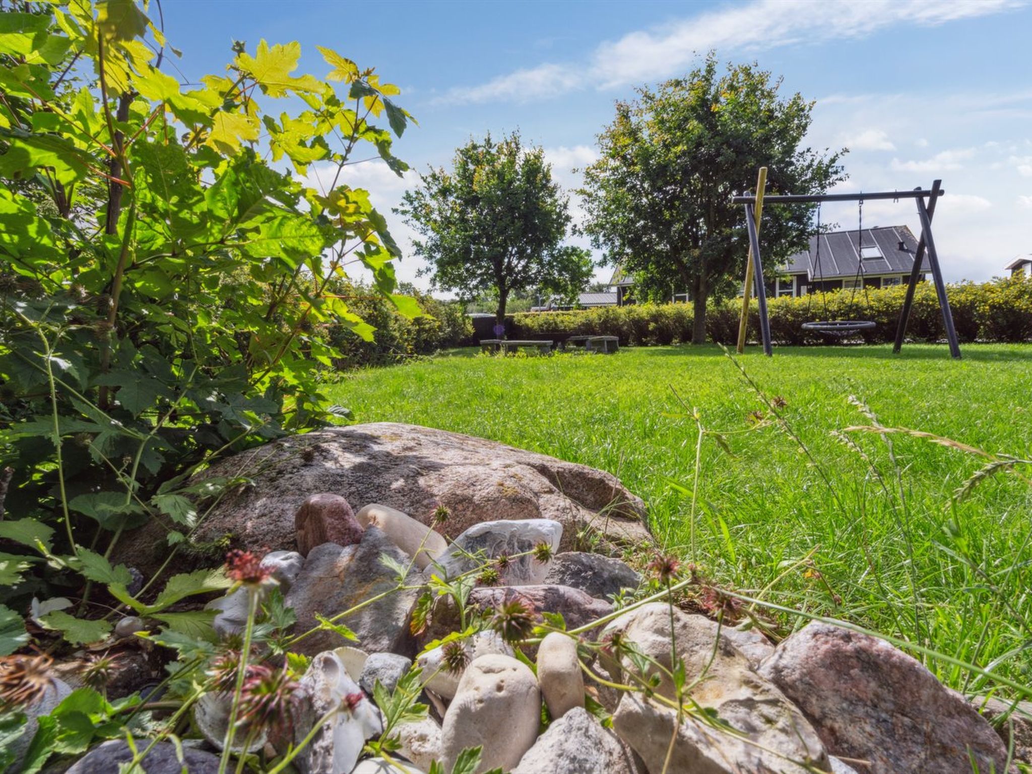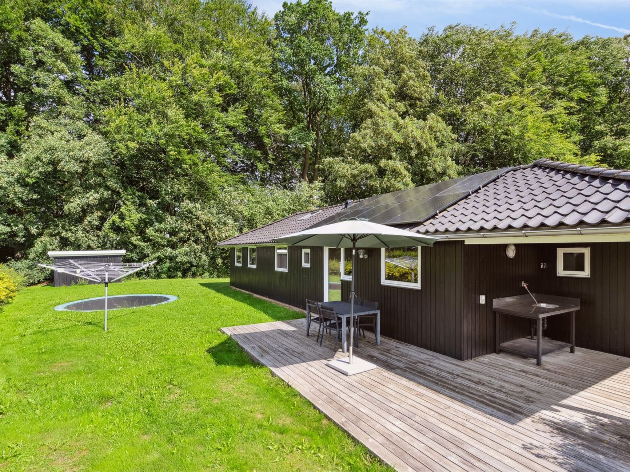 Single-family house, built in 2006. 150 m from the sea. Private: natural state property 2'000 m2, indoor pool (3 x 5 m, 1'6.5 m2, depth 140 - 140 cm). Outdoor shower, barbecue, children's playground (swing). In the house: sauna, table football, trampoline, washing machine, tumble dryer. Parking at the house. E-charging station. Grocery 3 km. Golf course 5 km. The owner does not accept any youth groups.
