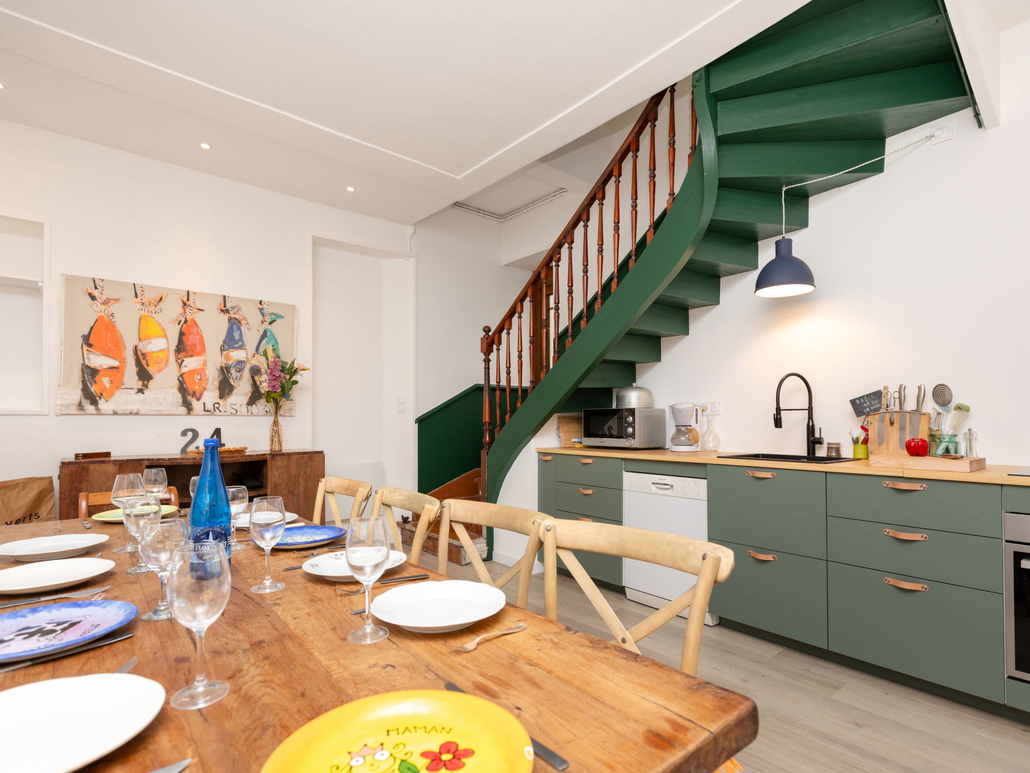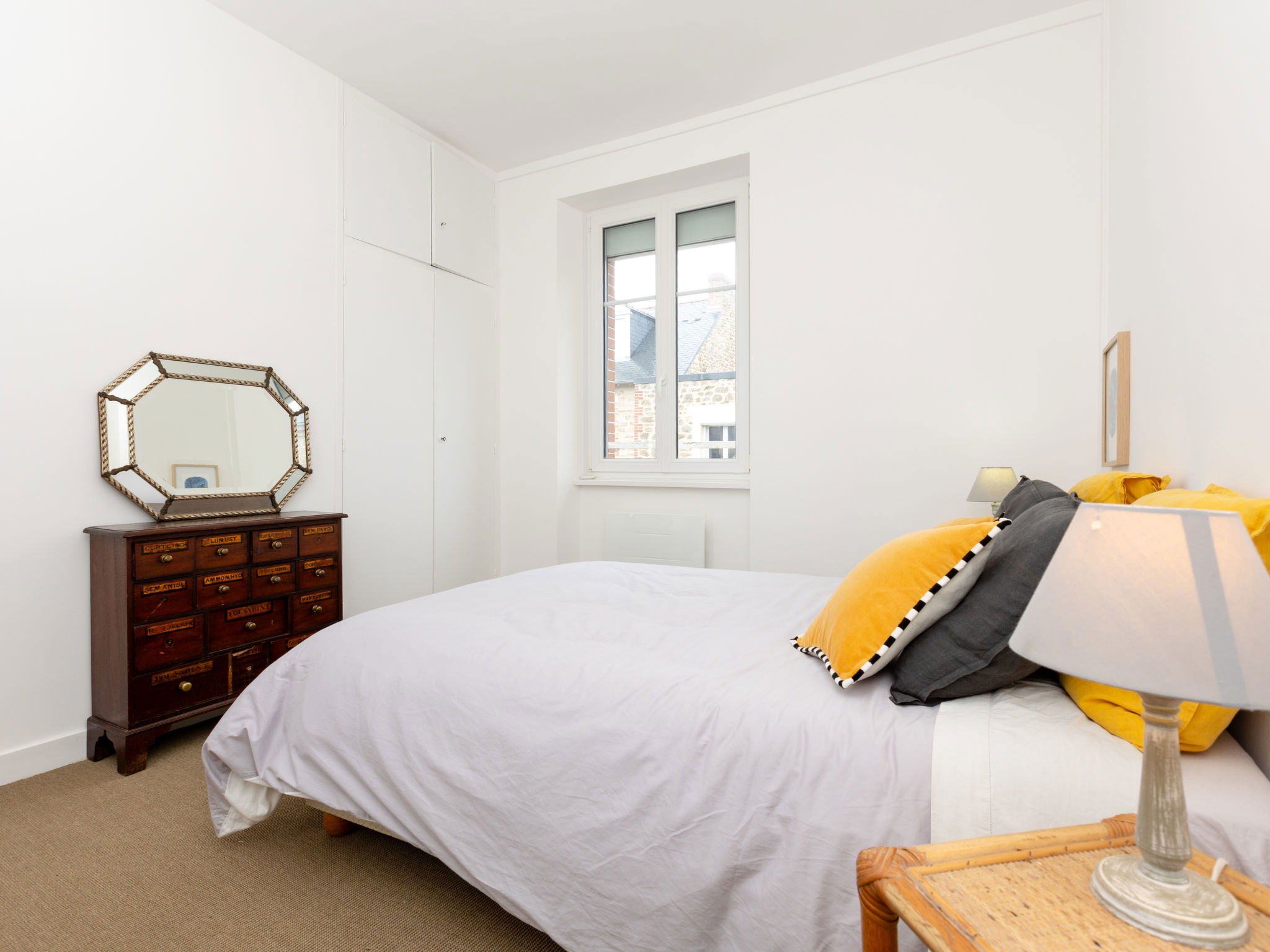 Beautiful terraced house "Les Roses", 2 storeys. In the centre of Dinard, in a central, quiet position, 700 m from the sea, 700 m from the beach. Public parking 150 m. Grocery 400 m, restaurant 50 m, bakery, café 500 m, bus stop "Eglise Notre dame" 700 m, railway station "Saint Malo" 9 km, sandy beach "Plage de l'écluse" 700 m, thermal baths "Thalasso de Dinard" 2 km. Sports harbour 850 m, sailing school 950 m. Nearby attractions: Saint Lunaire 4.5 km, Cap Fréhel 40 km, Saint Malo Intra muros 10 km, Cancale 22 km, Mont Saint Michel 50 km. Hiking paths: GR34 St Lunaire 1 km. The keys‘ handover takes place by the agency in Dinard.
