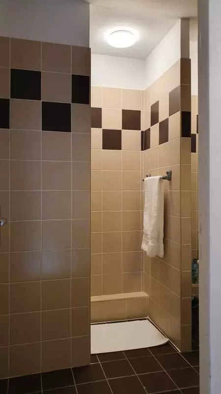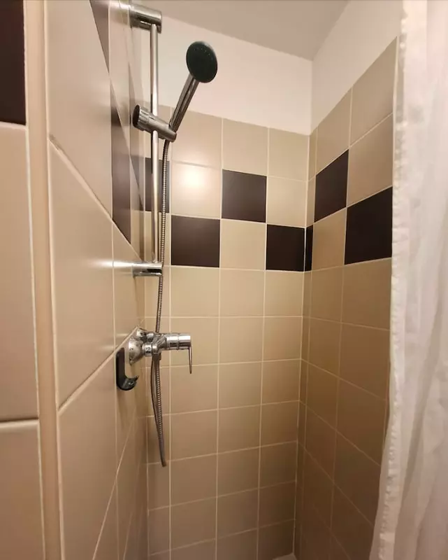 The modern bathroom is complemented by a washing machine, an iron and a hairdryer at your disposal.
