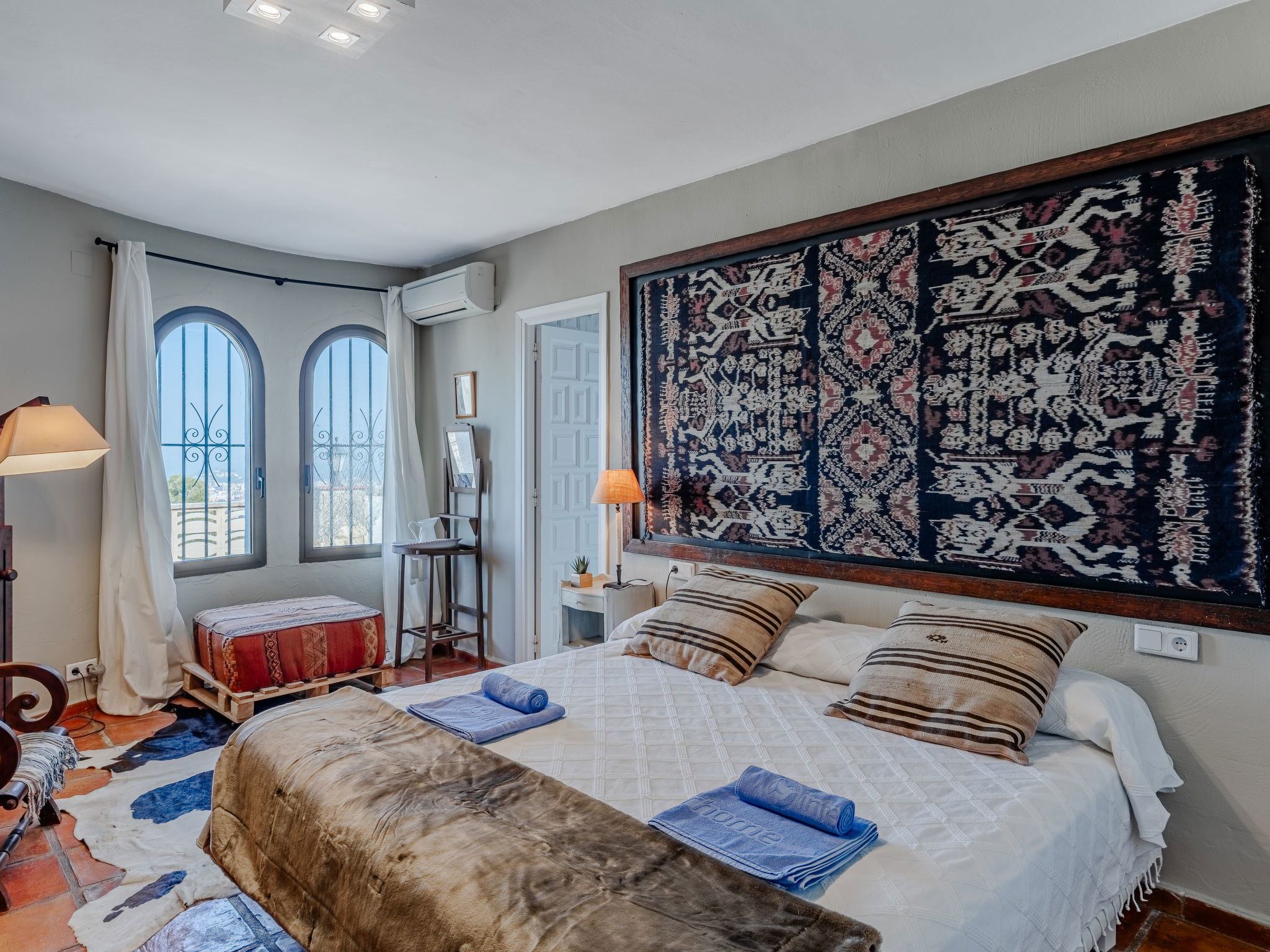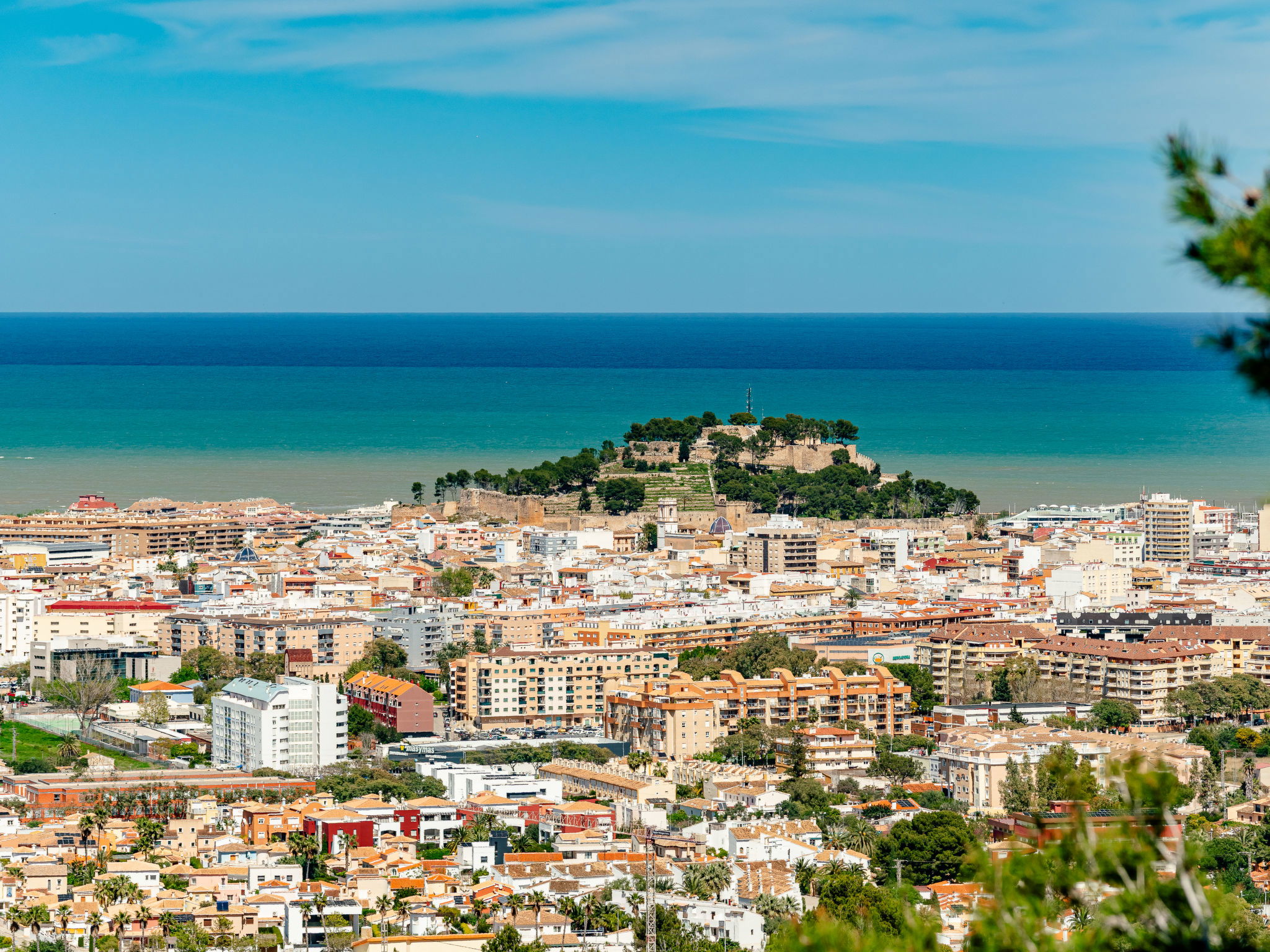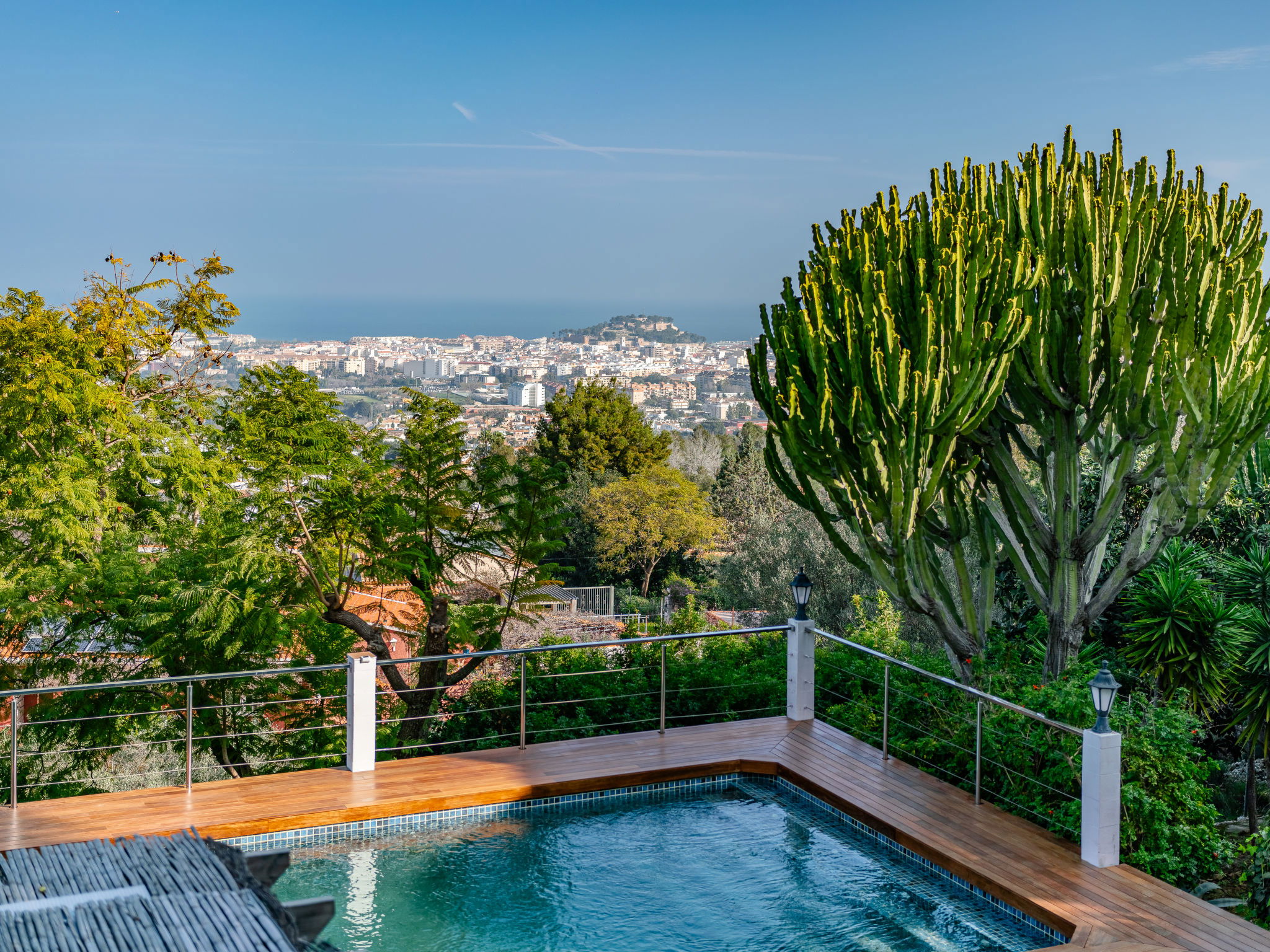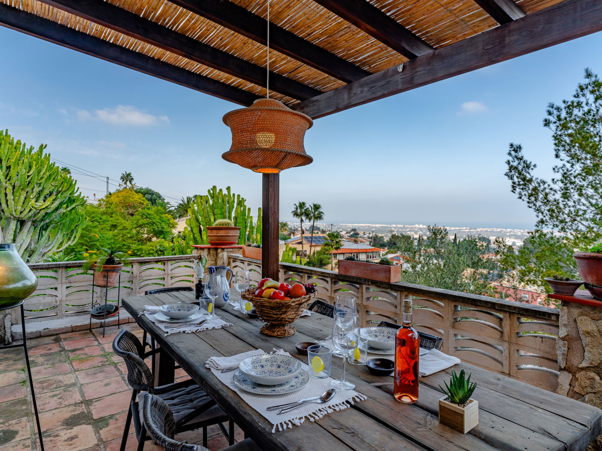"Villa Horizonte", 8-room villa 250 m2 on 2 levels. Spacious and bright, very comfortable and stylish furnishings: living/dining room with digital TV, air conditioning and forced-air heating. Exit to the terrace. 1 room with 1 french bed (150 cm, length 200 cm), air conditioning and forced-air heating. 1 room with 1 french bed (150 cm, length 200 cm). 2 baths/WC, double hand-basin. On the lower ground floor: dining room. Lounge. 1 room with 1 french bed (180 cm, length 200 cm), air conditioning and forced-air heating. 1 room with 1 french bed (180 cm, length 200 cm), air conditioning and forced-air heating. Large, open kitchen (oven, 3 induction hot plates, toaster, kettle, microwave, freezer, electric coffee machine, Capsules for coffee machine (Nespresso) extra). 2 showers/WC. Large terrace, porch. Terrace furniture, deck chairs, covered balcony, sitting area. Marvellous panoramic view of the sea, the valley and the city. Facilities: washing machine, iron, hair dryer. Internet (WiFi, free). Maximum 1 pet/ dog allowed. R00000001 // Reg. Nr.: ESFCNT00000305500029052100000000000000000000000000001