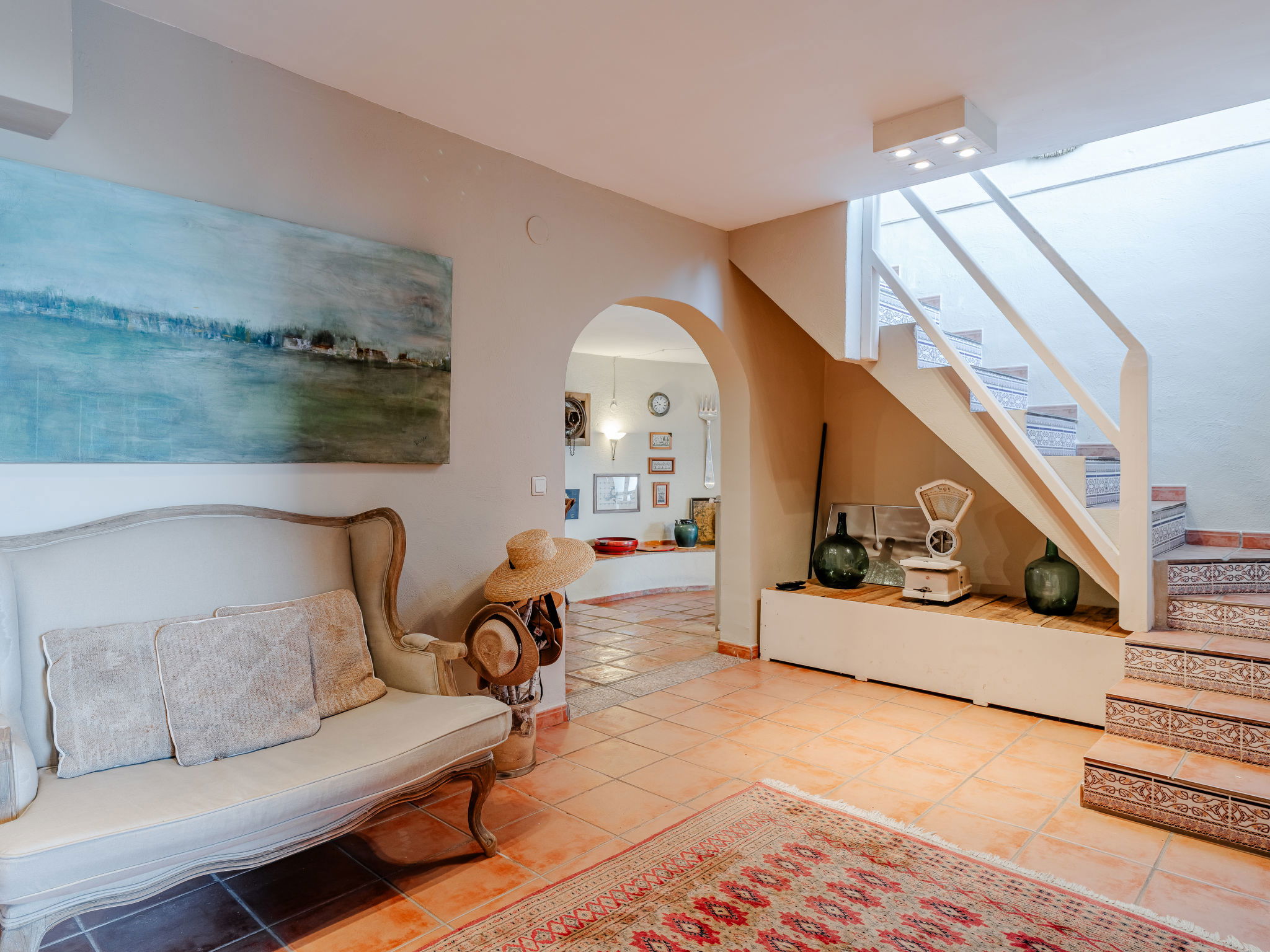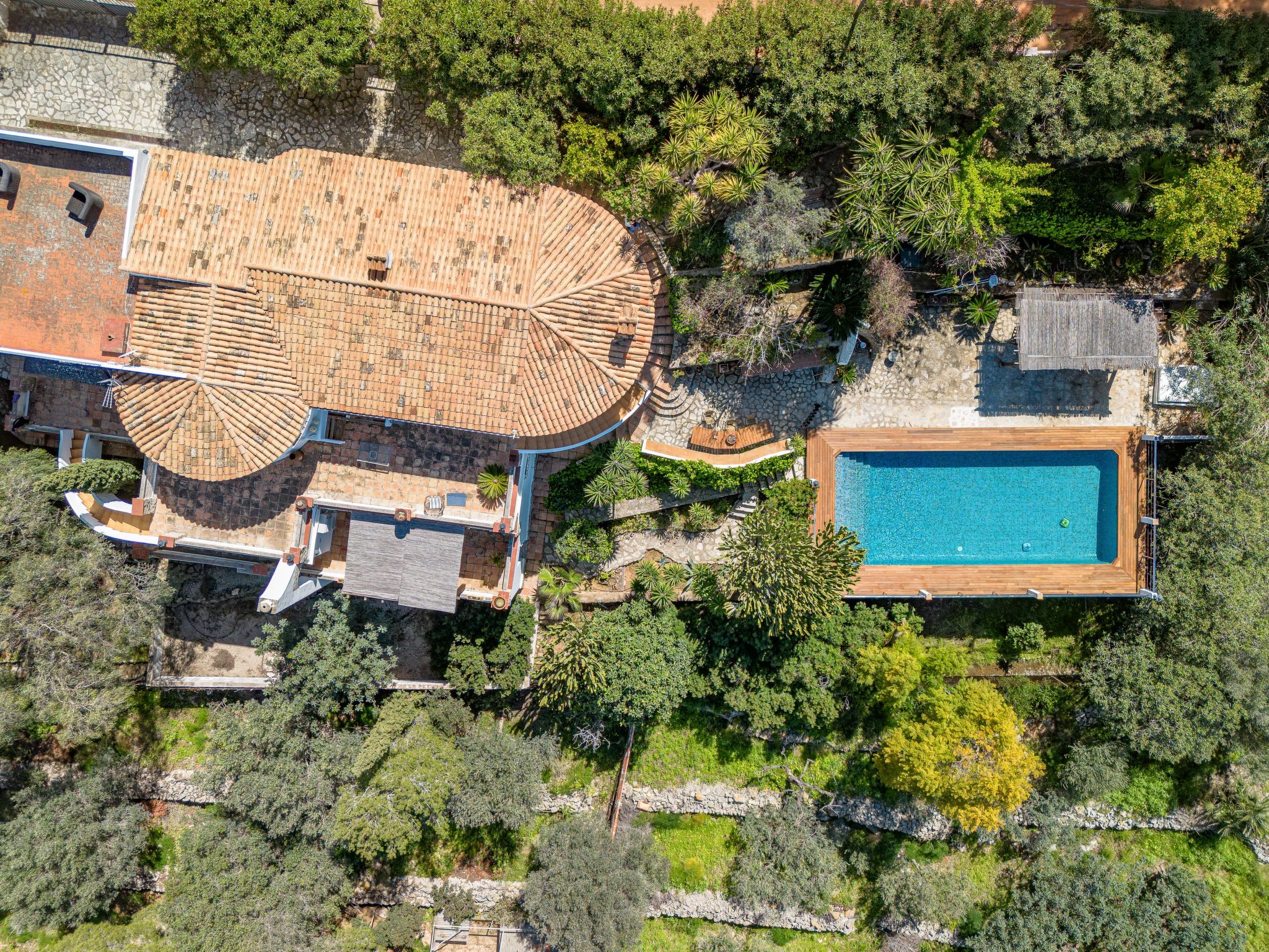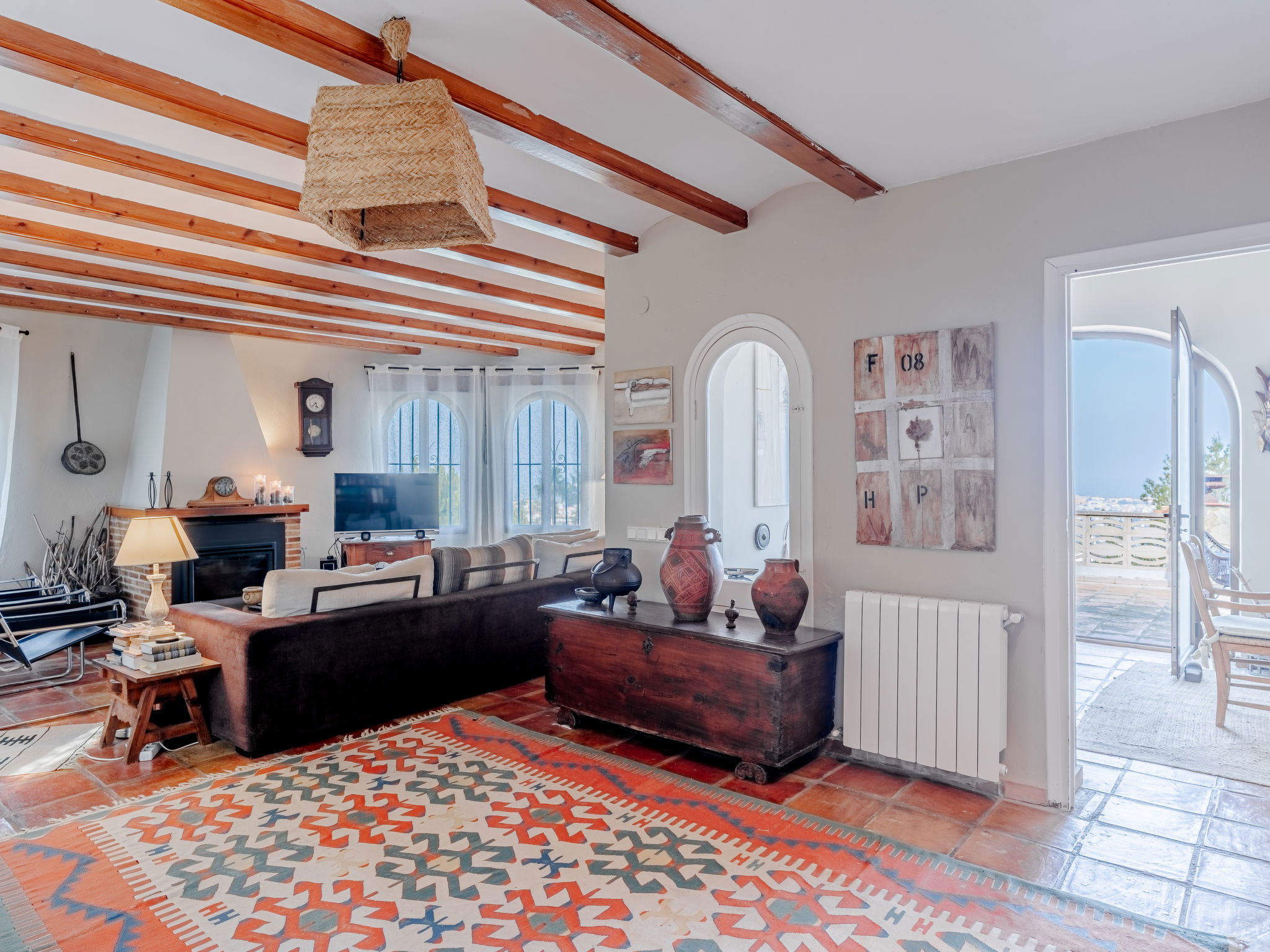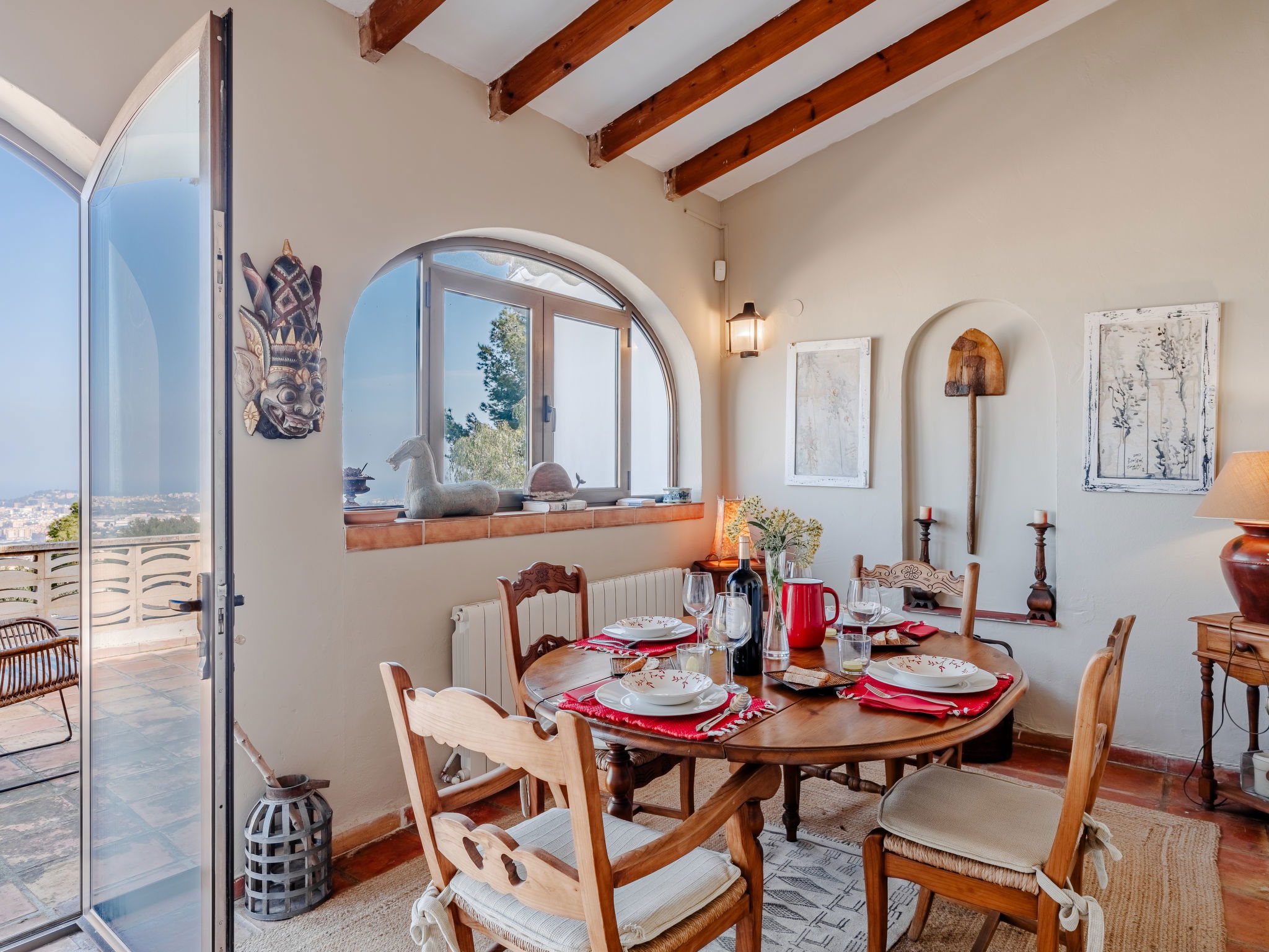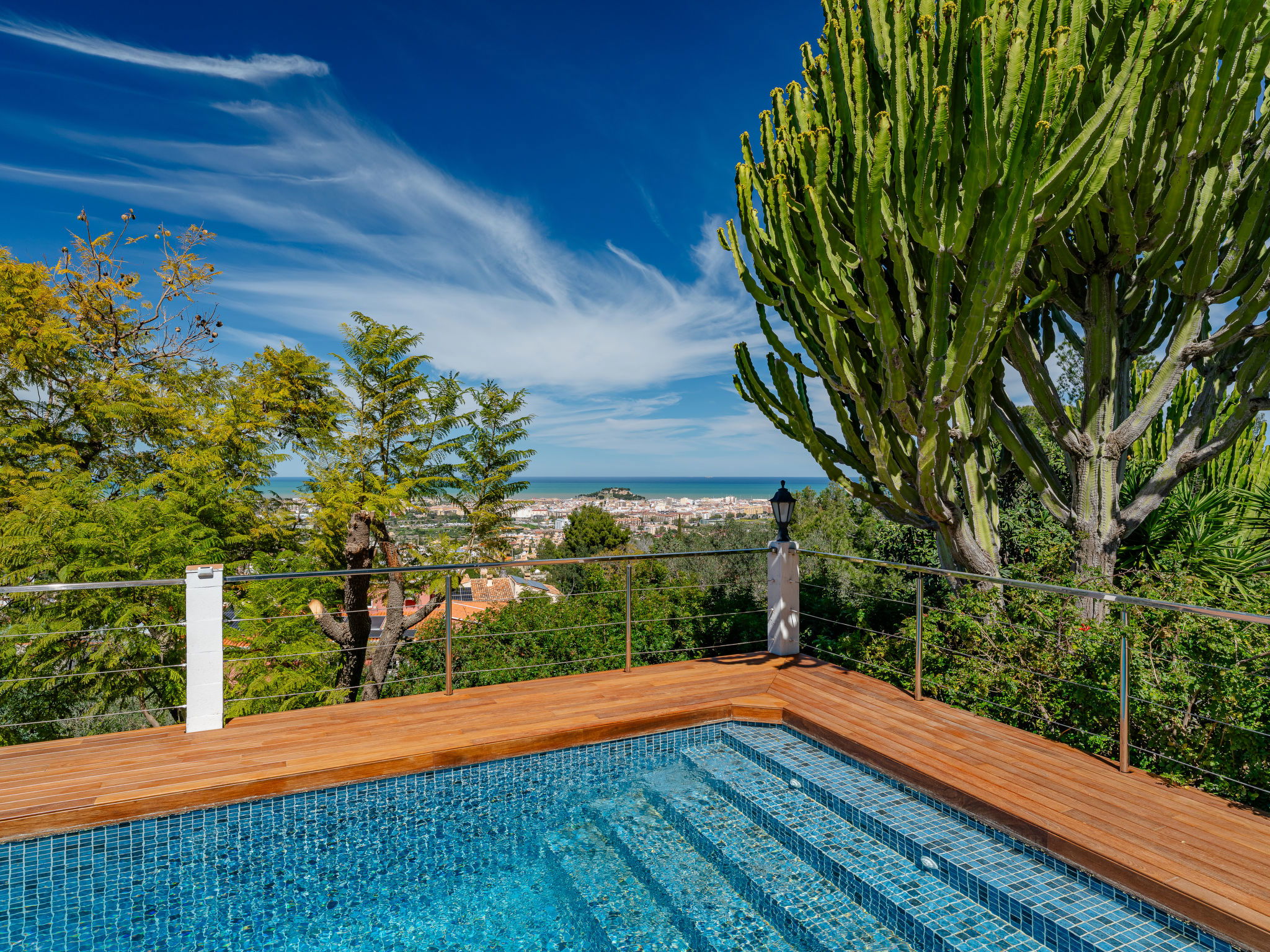 Very large, very beautiful, very comfortable villa "Horizonte", 2 storeys, surrounded by trees. In the district of Montgo Denia, in the resort 2.5 km from the centre of Denia, in a quiet, sunny position residential area (villas), 3.5 km from the sea, 3.8 km from the beach. Private: large, beautiful terraced garden, swimming pool angular (10 x 5 m, depth 40 - 220 cm, seasonal availability: 01.Jan. - 31.Dec.) with internal staircase. Outdoor shower, pergola, garden furniture. Supermarket 2.2 km, restaurant 1.4 km, café 1.4 km, bus stop 2.8 km, railway station 3.5 km, sandy beach "Marineta Cassiana" 3.8 km. Sports harbour 3.8 km, surf school 3.8 km, sailing school 3.8 km.