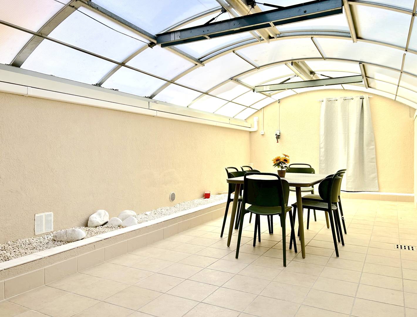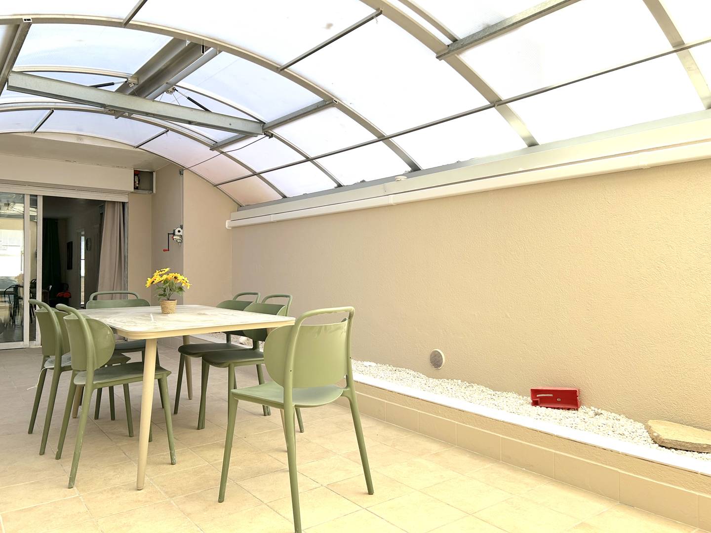 In the annex, at the end of the glass roof, there is a sleeping area with two 80cm beds, a shower room and WC.