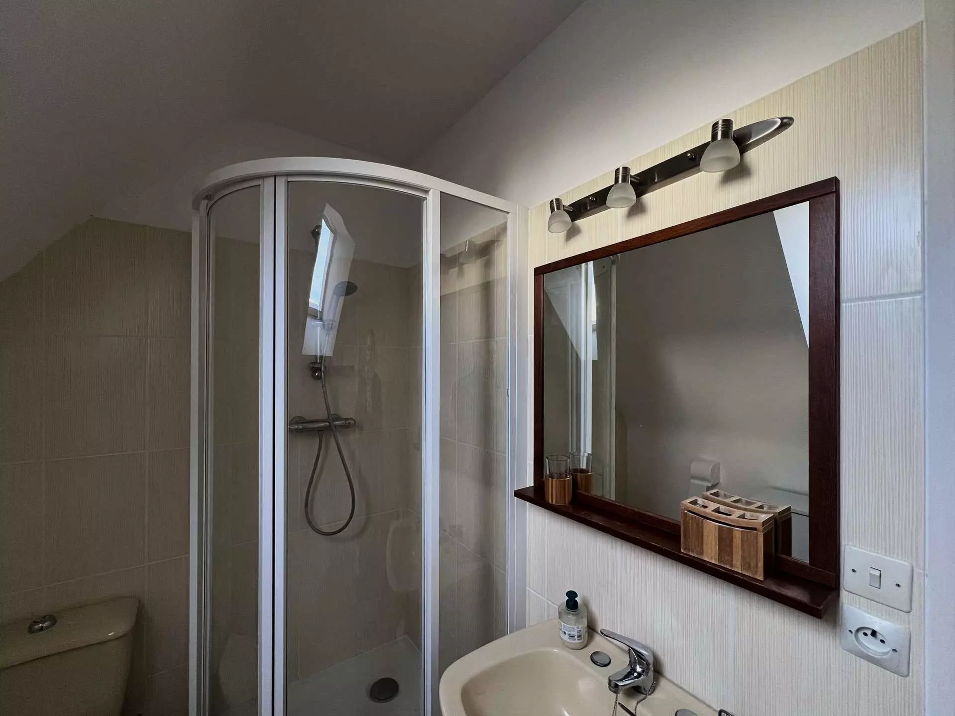 - Bathroom with shower and toilet.
