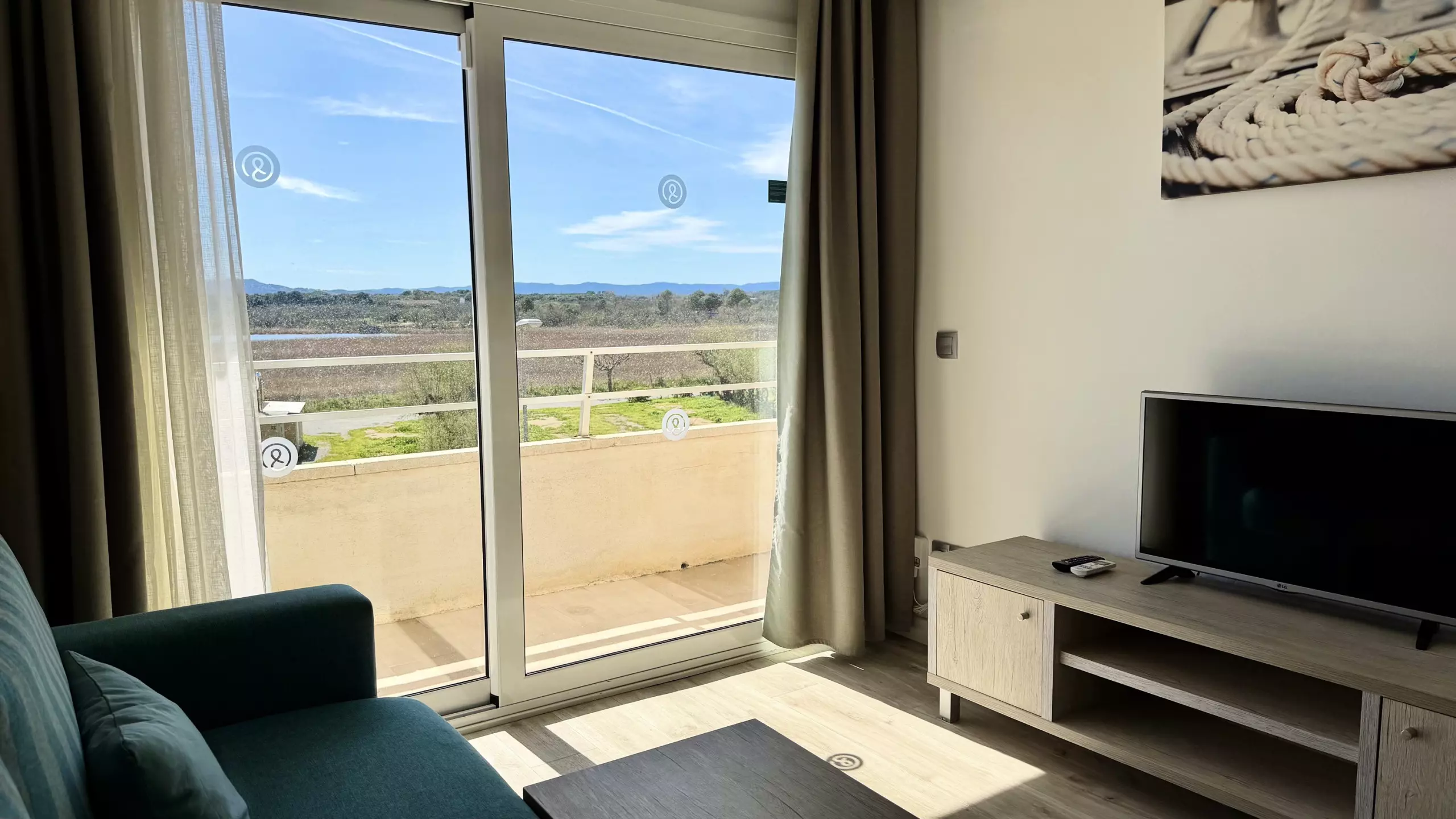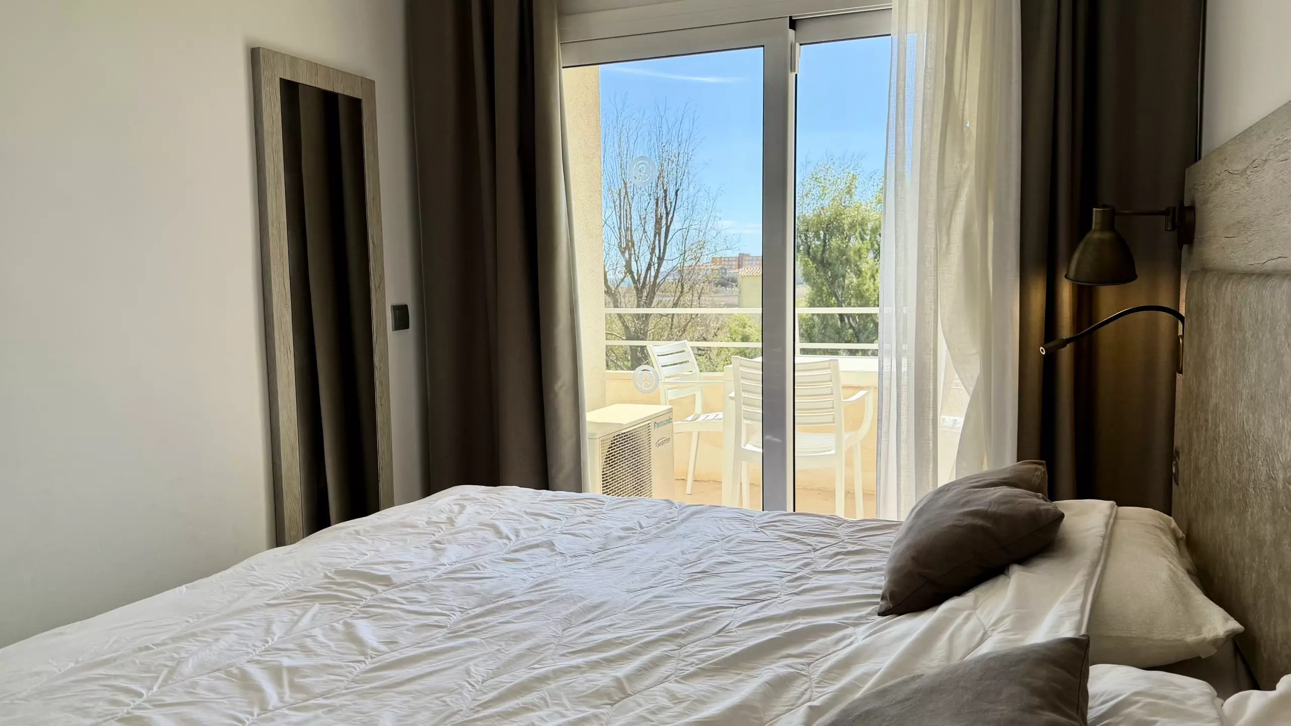 The apartment features a terrace ideal for enjoying the outdoors, perfect for a morning coffee or a drink at sunset. The living room is equipped with air conditioning and a heat pump to ensure your comfort year-round.