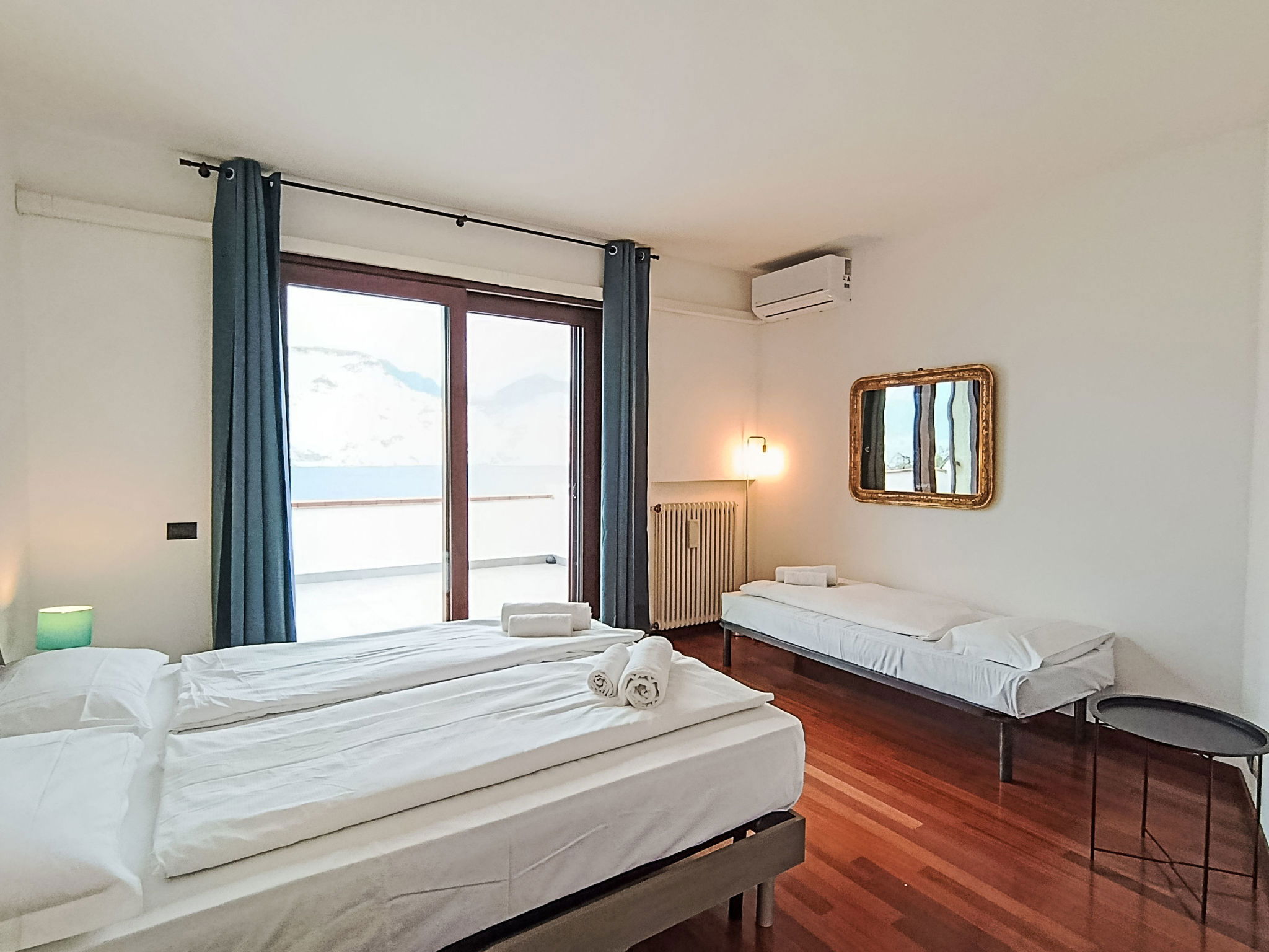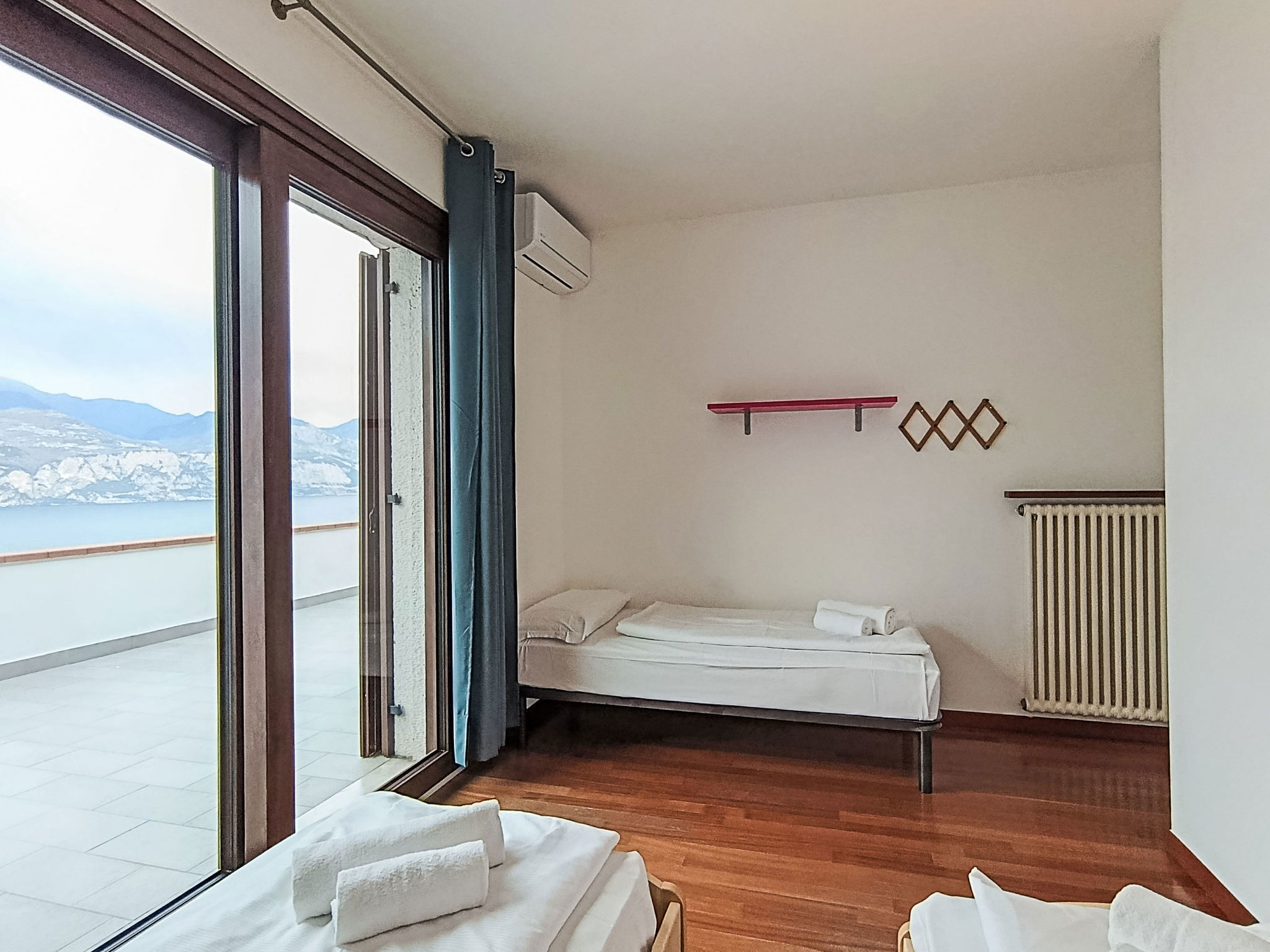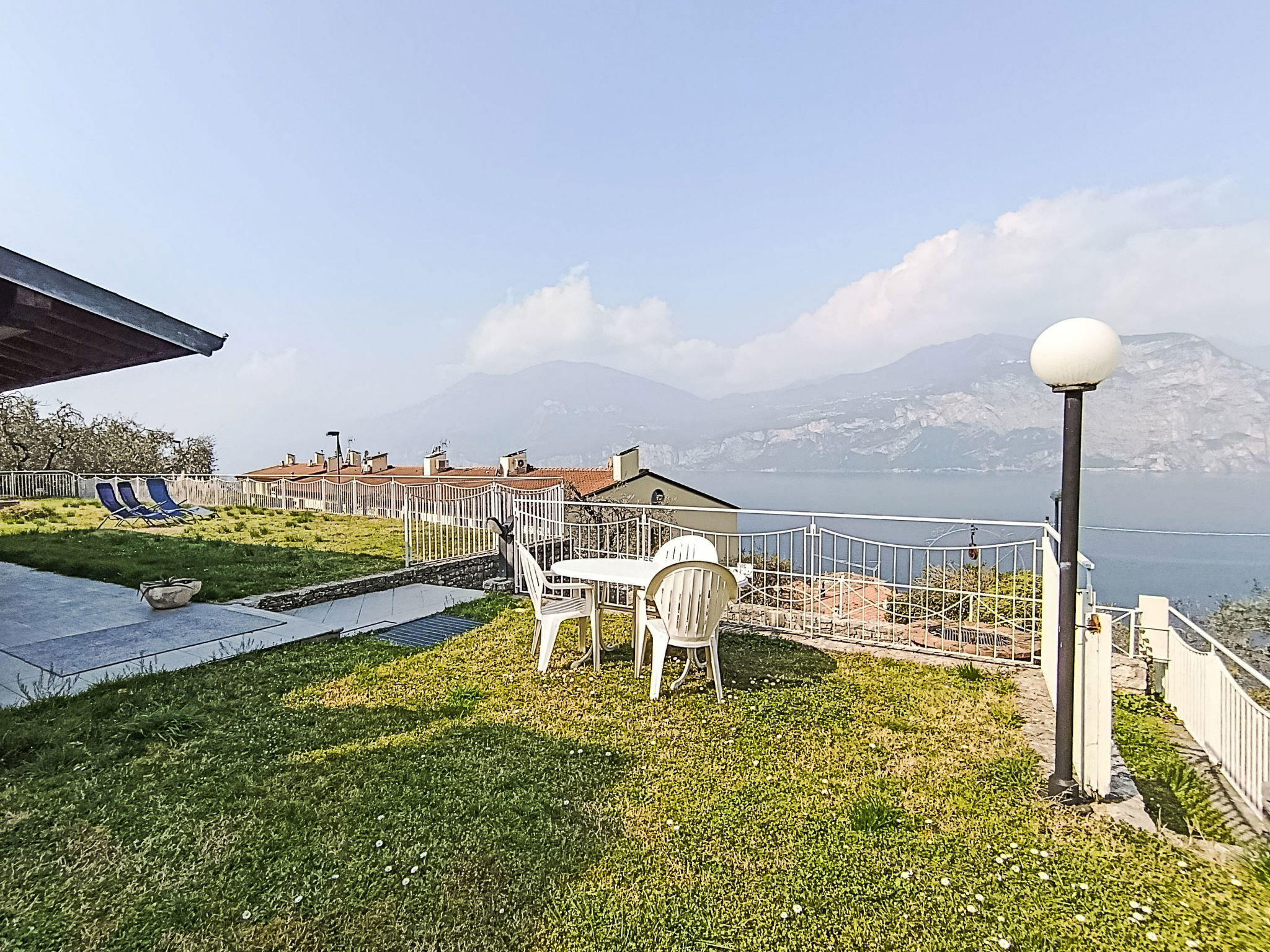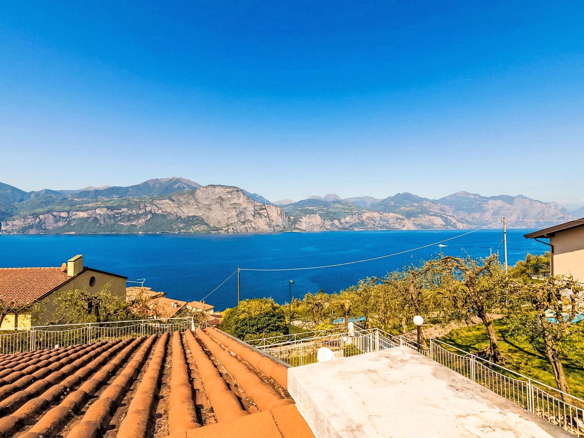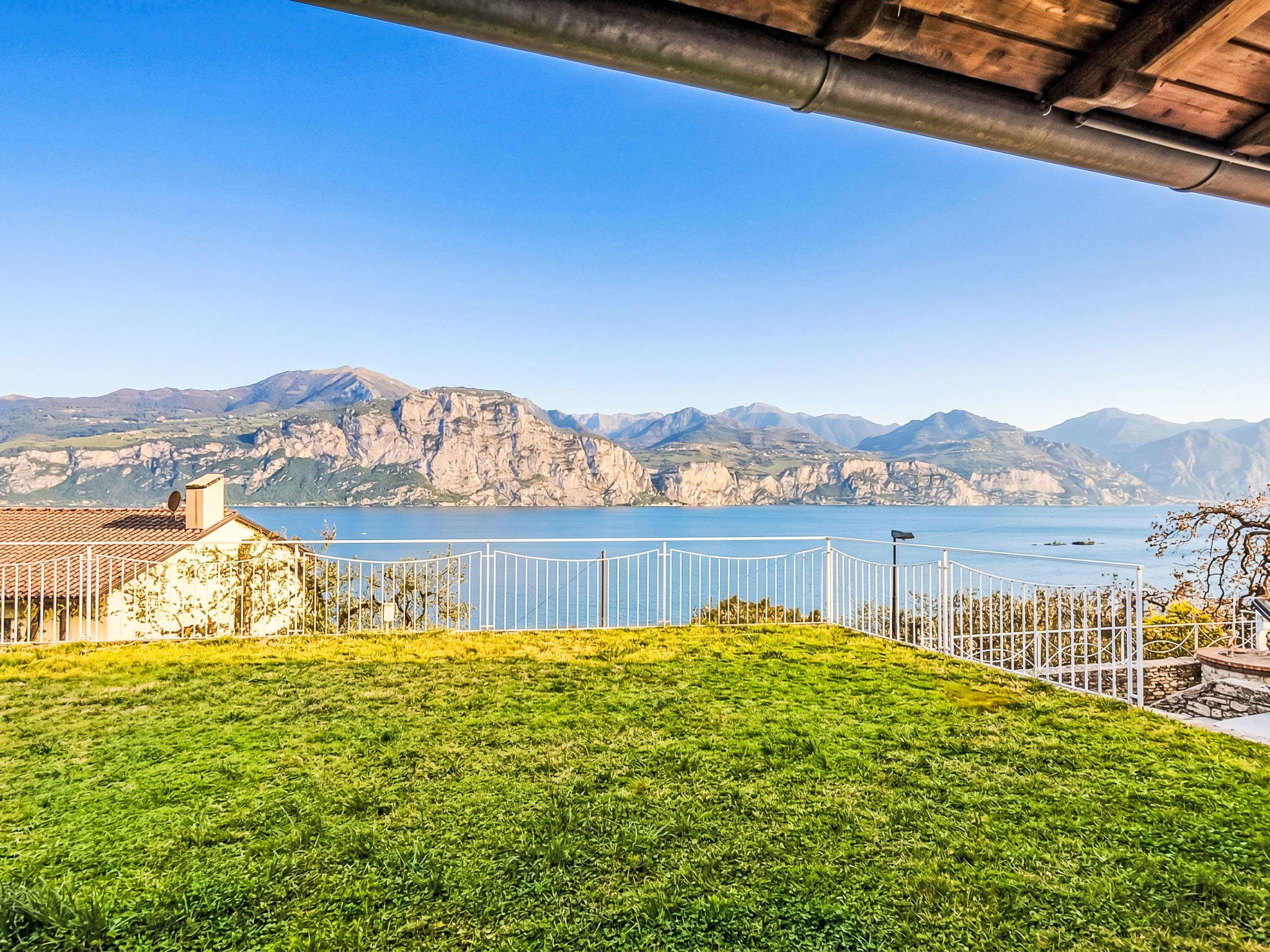 "Manuela", 4-room villa 200 m2 on 2 levels, on the ground floor, south-east facing position. Spacious and bright, comfortable and cosy furnishings: living room with Scandinavian wood stove (only for decoration), digital TV. Exit to the garden, to the patio, south facing position and east facing position. Alcove with 1 double sofabed. Exit to the garden, to the patio. Large kitchen (oven, dishwasher, Gas stove, 5 gas rings, kettle, microwave, freezer, electric coffee machine) with bar, dining table. Exit to the garden, to the patio. Shower/bidet/WC. Heating. Upper floor: 1 double bedroom with 1 bed and 1 double bed. Exit to the terrace. 1 double bedroom with 1 bed and 1 double bed. Exit to the terrace. Bath/shower/bidet/WC. Heating, air-conditioning. Wooden floors. Large terrace, roofed, large patio 60 m2, roofed, large garden 250 m2 and south-east facing position. Terrace furniture, barbecue, deck chairs (8), sitting area. Very beautiful panoramic view of the lake and the mountains. Facilities: washing machine, iron, hair dryer. Internet (WiFi, free). Parking (roofed, 1 car). Please note: maximum 1 pet/ dog allowed. Private entrance, smoke alarm, fire extinguisher, no lift. IT023014B4Q8LFUSS