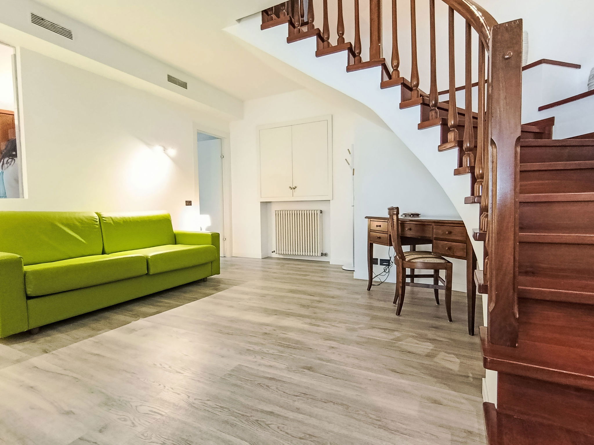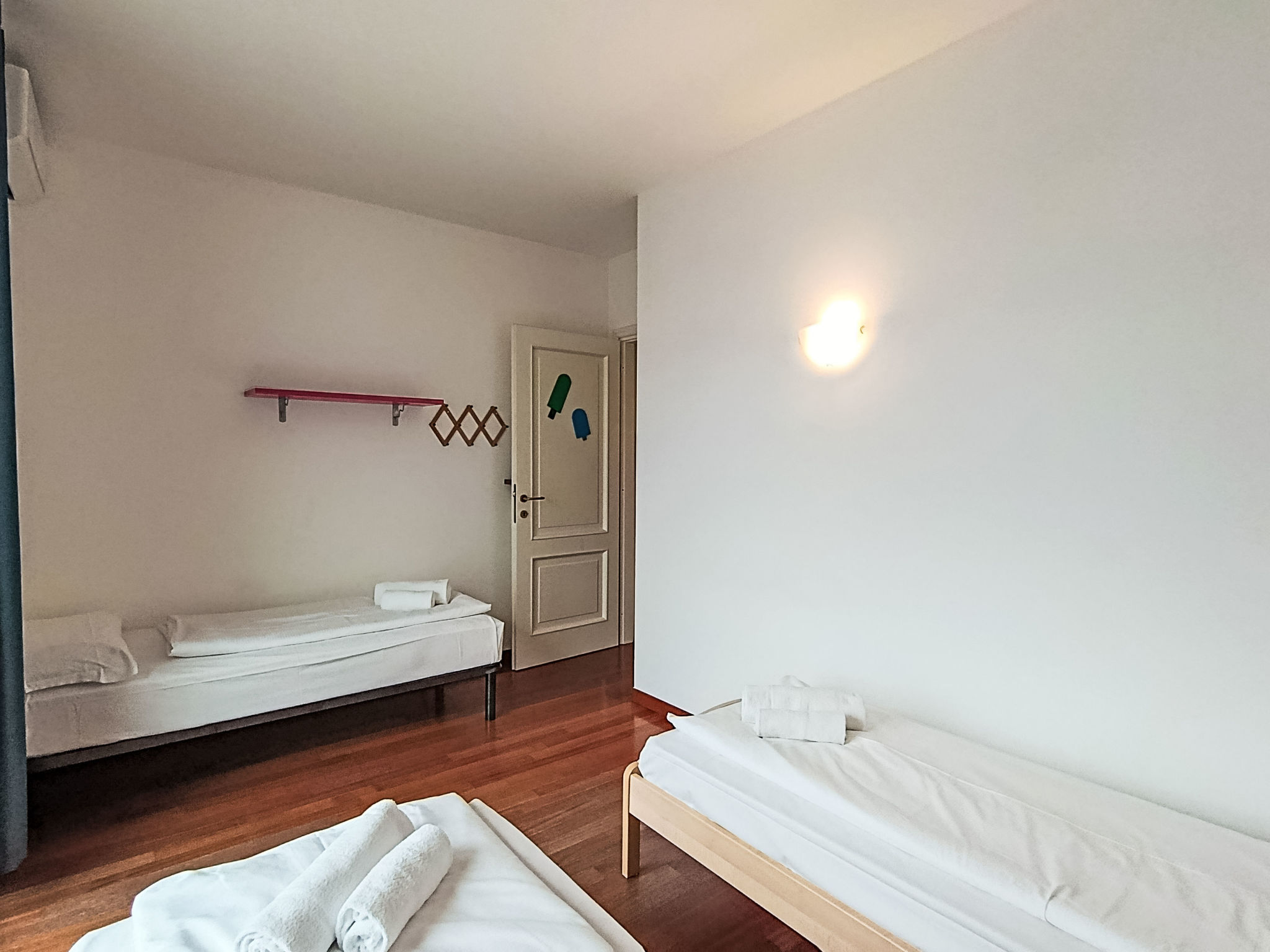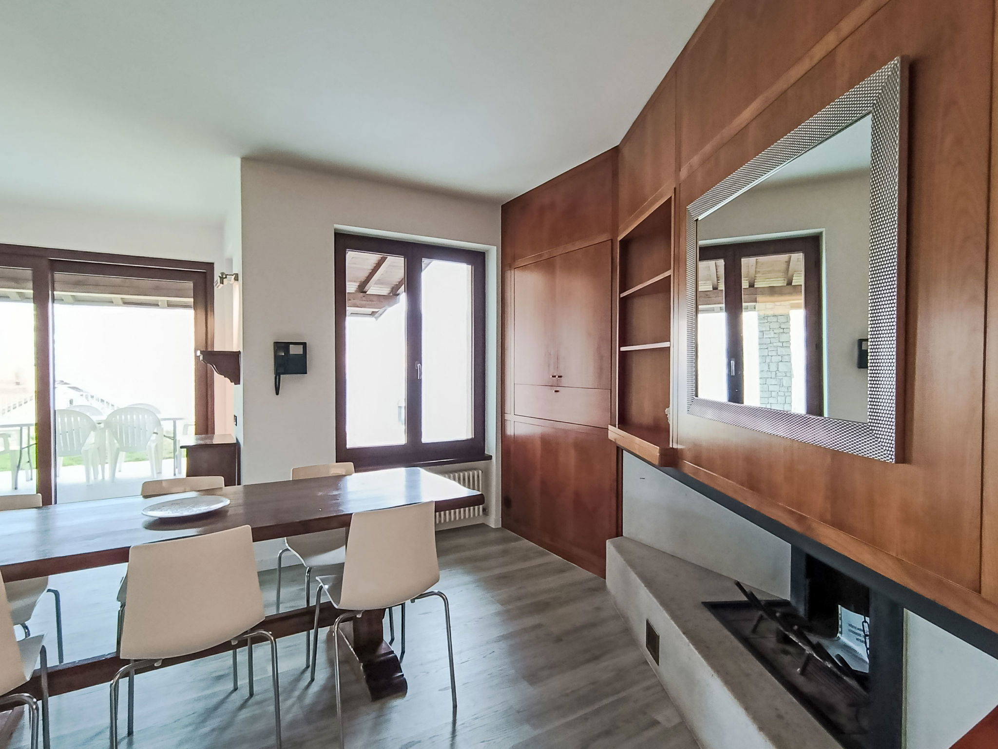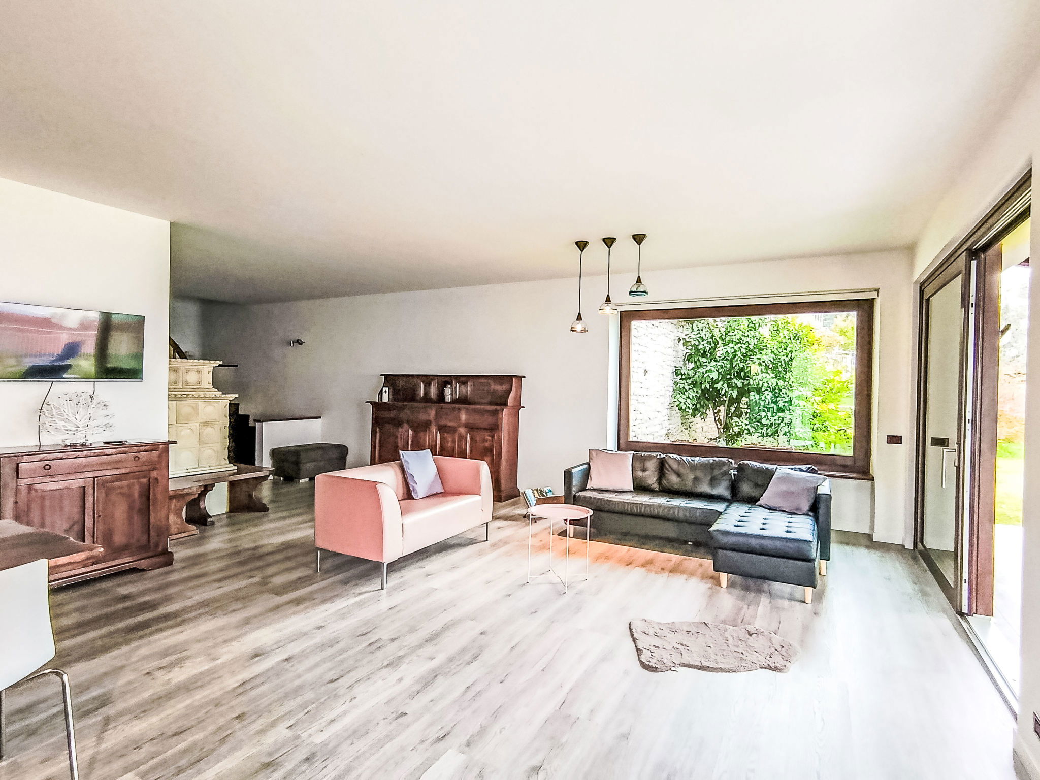 "Manuela", 4-room villa 200 m2 on 2 levels, on the ground floor, south-east facing position. Spacious and bright, comfortable and cosy furnishings: living room with Scandinavian wood stove (only for decoration), digital TV. Exit to the garden, to the patio, south facing position and east facing position. Alcove with 1 double sofabed. Exit to the garden, to the patio. Large kitchen (oven, dishwasher, Gas stove, 5 gas rings, kettle, microwave, freezer, electric coffee machine) with bar, dining table. Exit to the garden, to the patio. Shower/bidet/WC. Heating. Upper floor: 1 double bedroom with 1 bed and 1 double bed. Exit to the terrace. 1 double bedroom with 1 bed and 1 double bed. Exit to the terrace. Bath/shower/bidet/WC. Heating, air-conditioning. Wooden floors. Large terrace, roofed, large patio 60 m2, roofed, large garden 250 m2 and south-east facing position. Terrace furniture, barbecue, deck chairs (8), sitting area. Very beautiful panoramic view of the lake and the mountains. Facilities: washing machine, iron, hair dryer. Internet (WiFi, free). Parking (roofed, 1 car). Please note: maximum 1 pet/ dog allowed. Private entrance, smoke alarm, fire extinguisher, no lift. IT023014B4Q8LFUSS