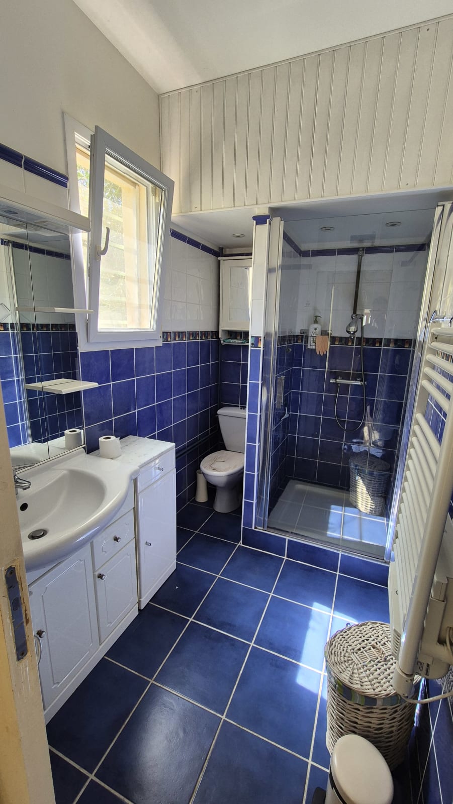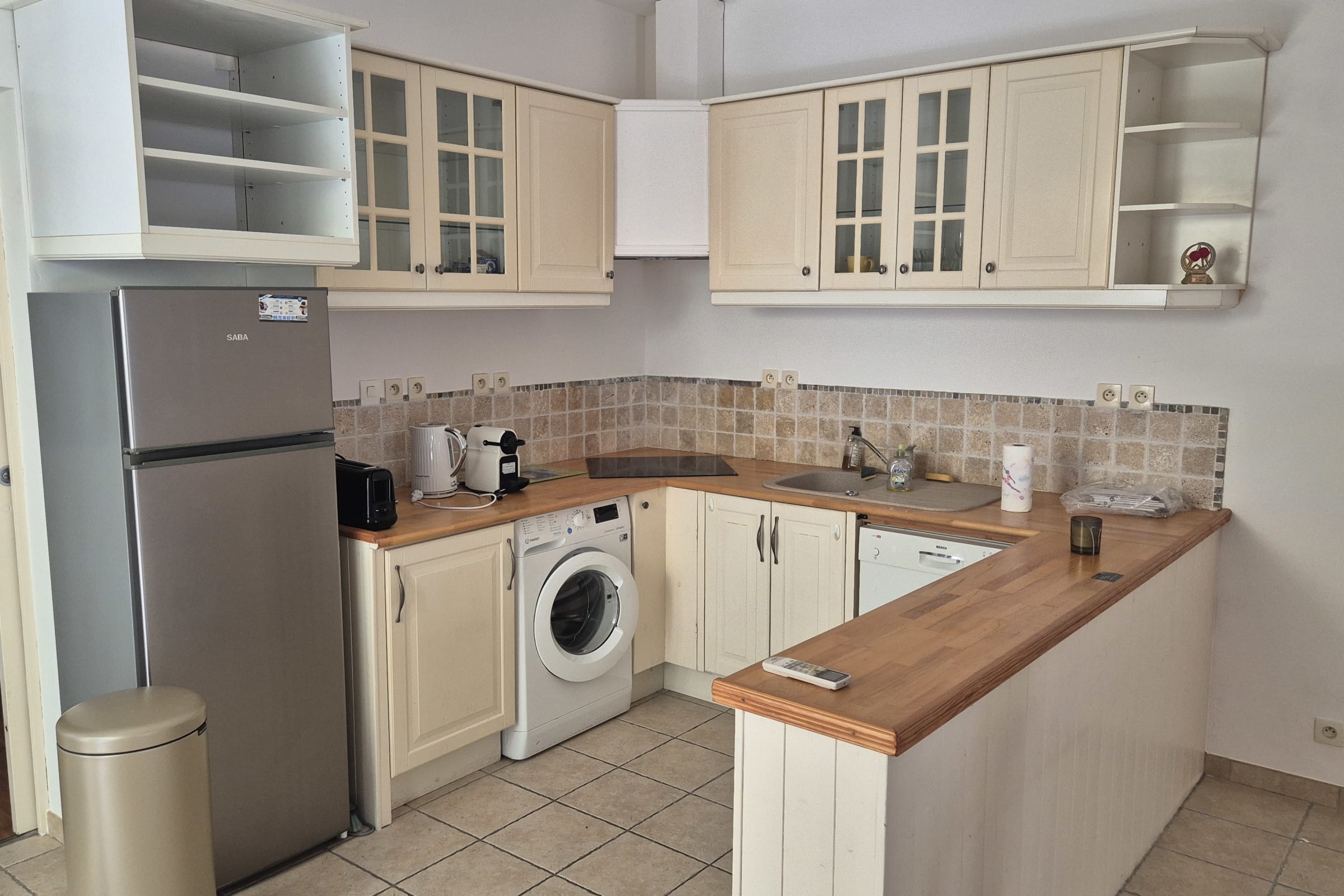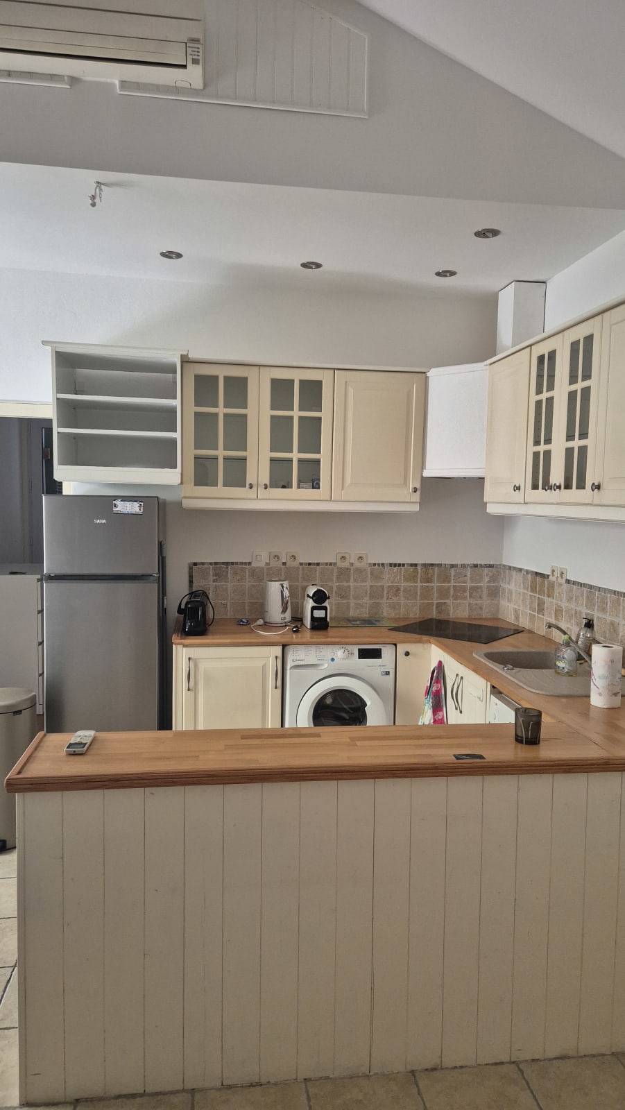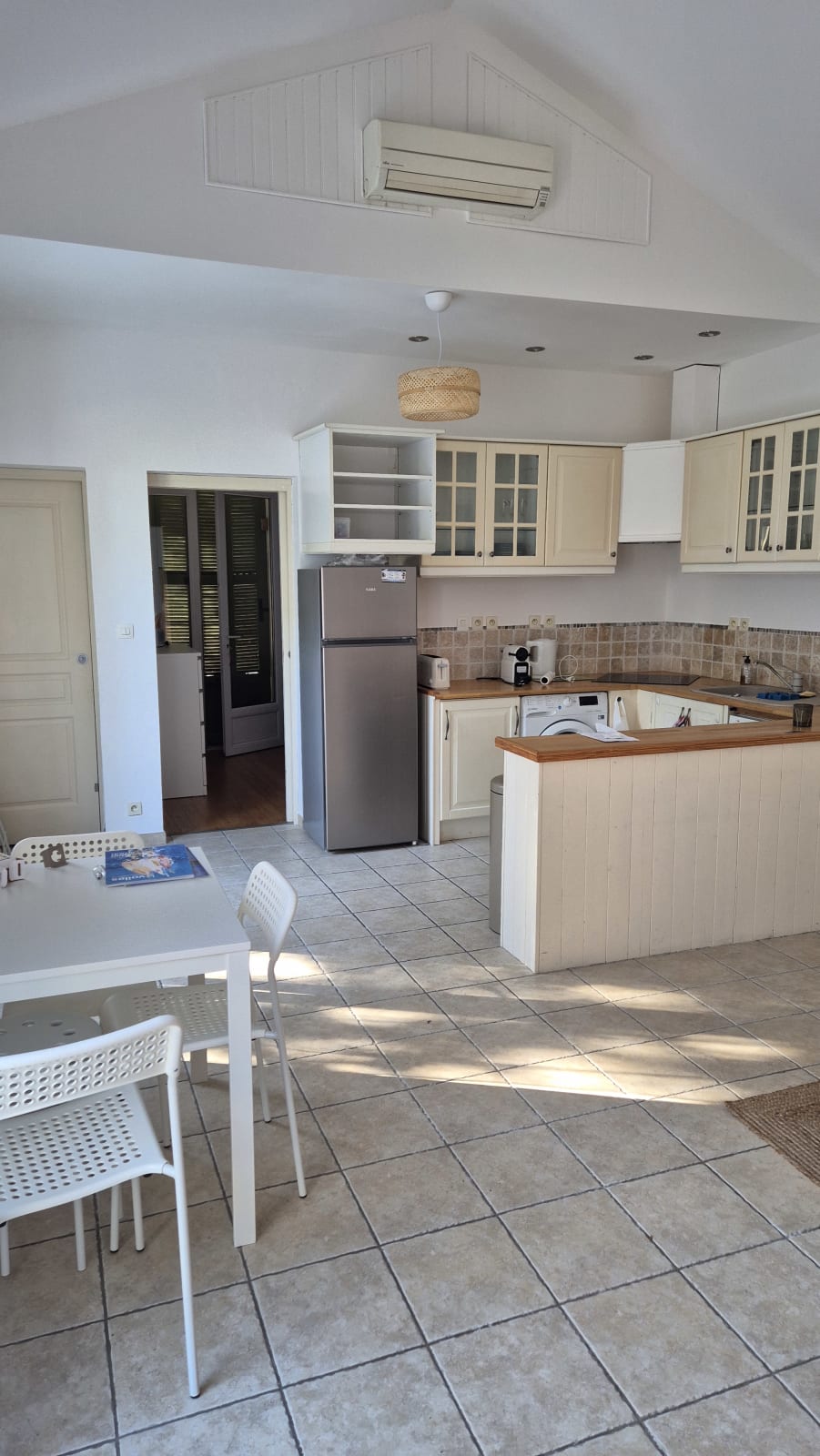 Elle se compose de 3 chambres, d'un grand salon avec climatisation et avec cuisine américaine toute équipée avec lave-vaisselle et lave-linge, d'une salle d'eau avec douche et WC.