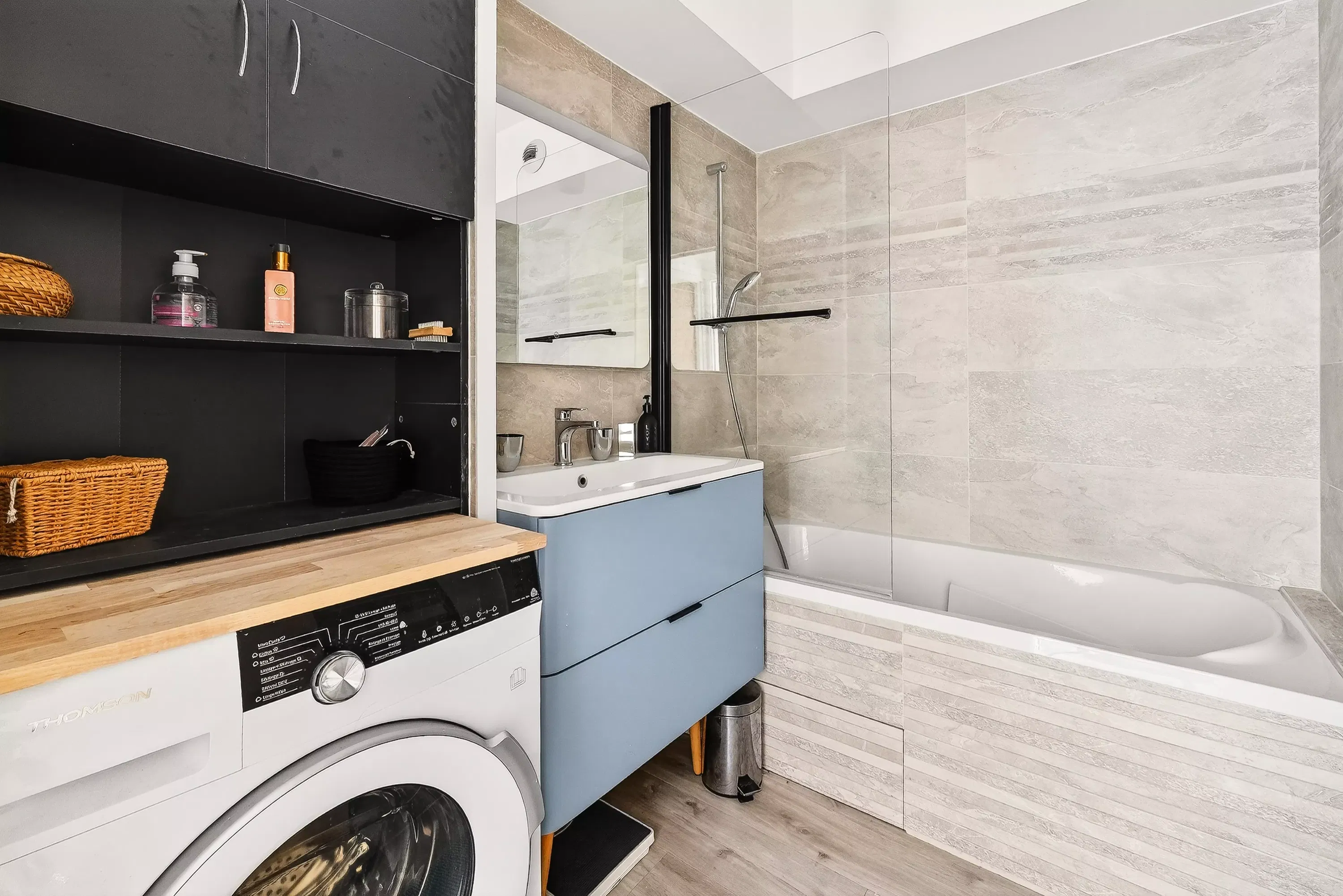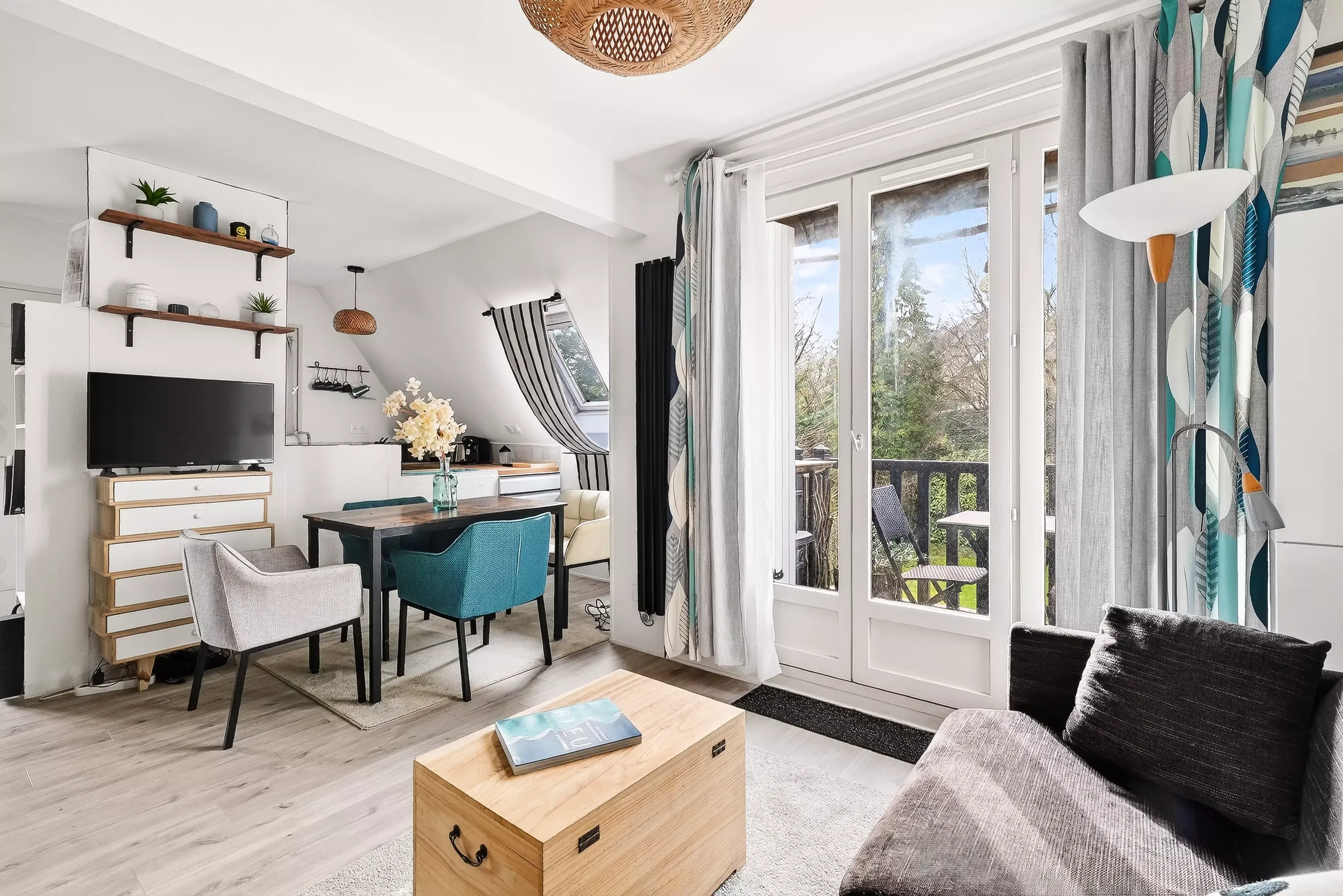 The apartment boasts three key advantages: a residence with popular leisure facilities, dedicated covered parking, and two outdoor spaces. The west-facing balcony off the living room is perfect for relaxing at the end of the day, while the east-facing terrace off the master bedroom offers a second outdoor space with village views and complete privacy. The entire apartment is bright and equipped with all the comforts of home, including internet access and a washing machine.