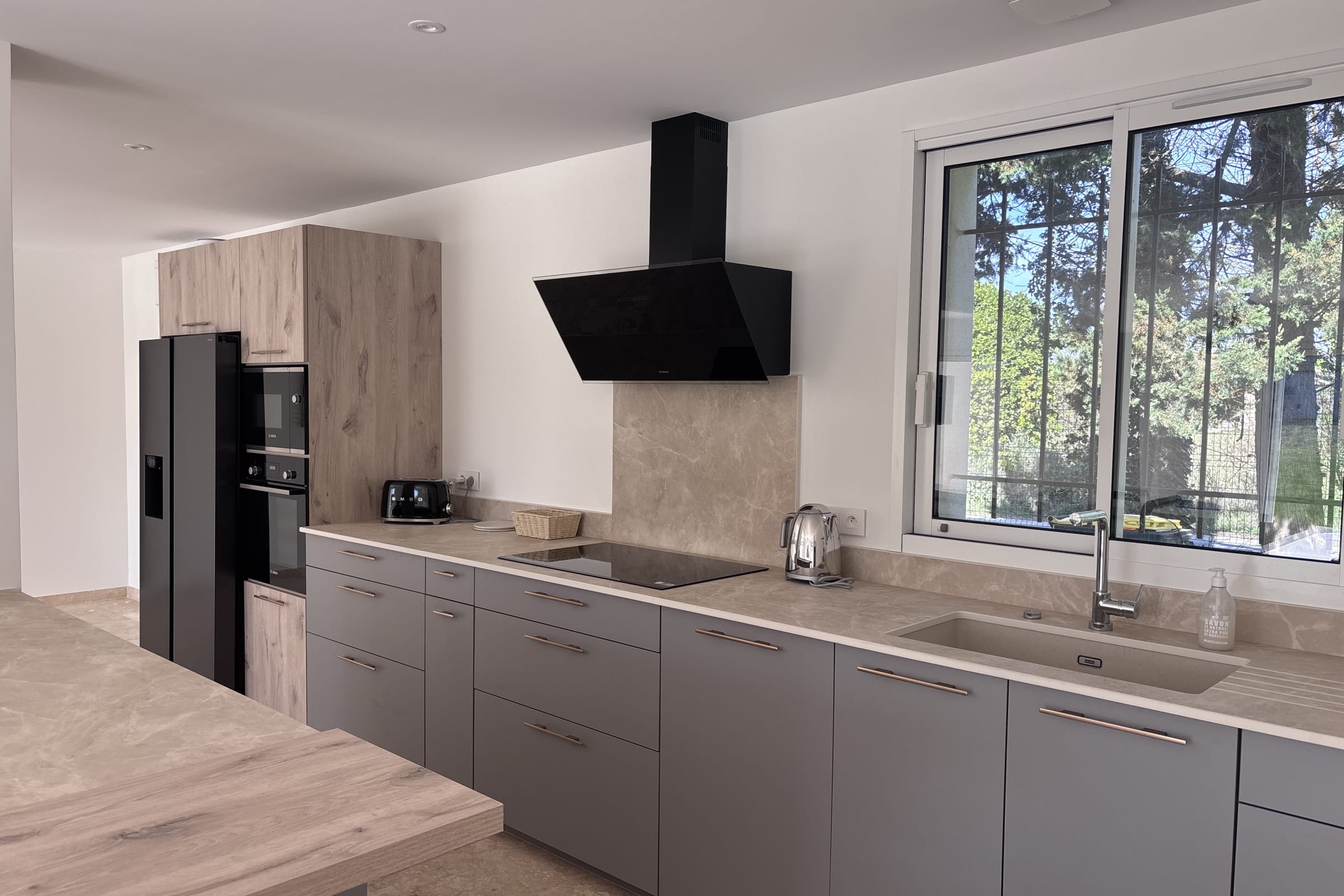 Outside, the Provençal lifestyle truly comes to life. Two lovely terraces allow you to enjoy every moment of the day, from sunny breakfasts to relaxed outdoor dinners.