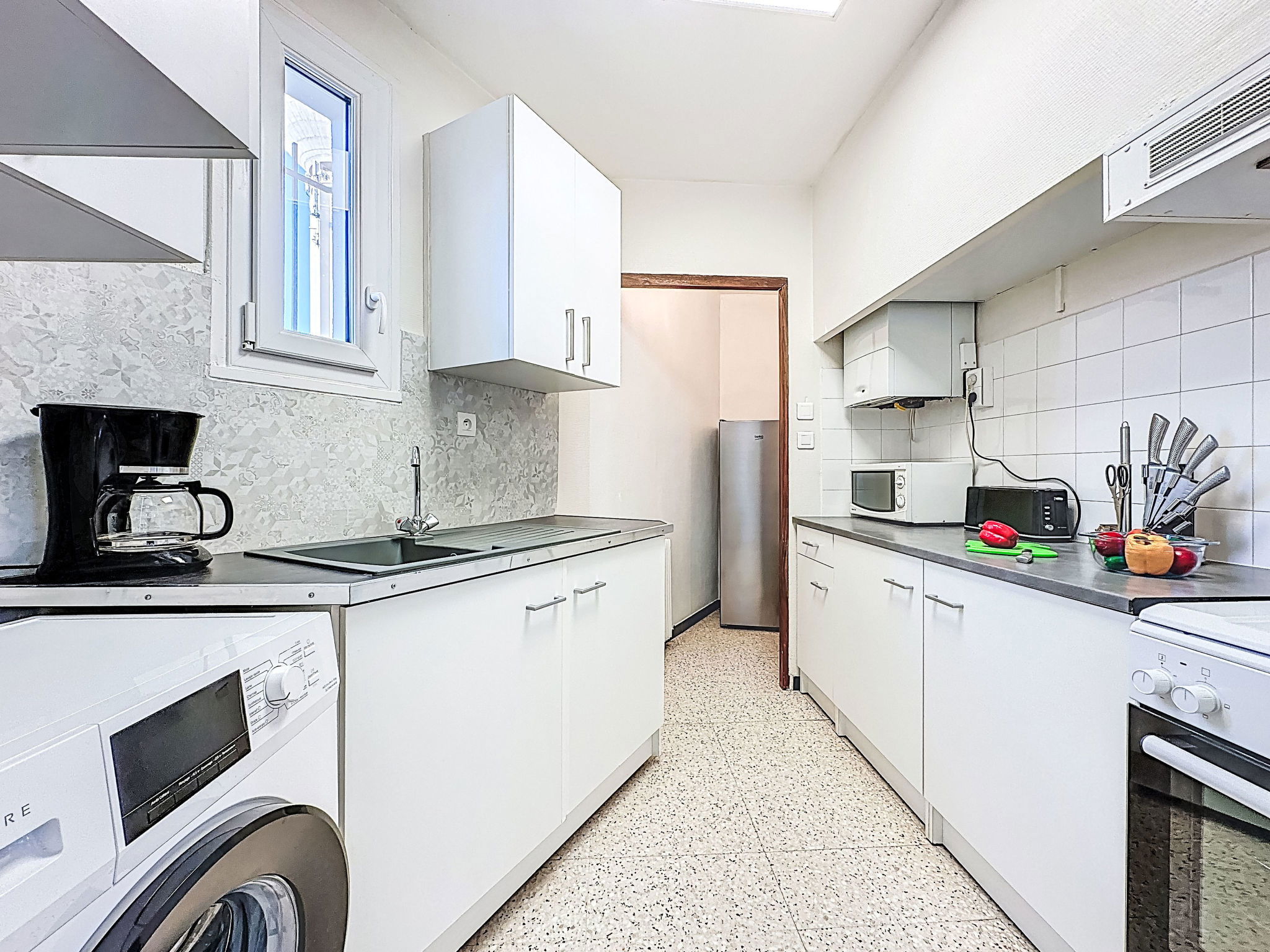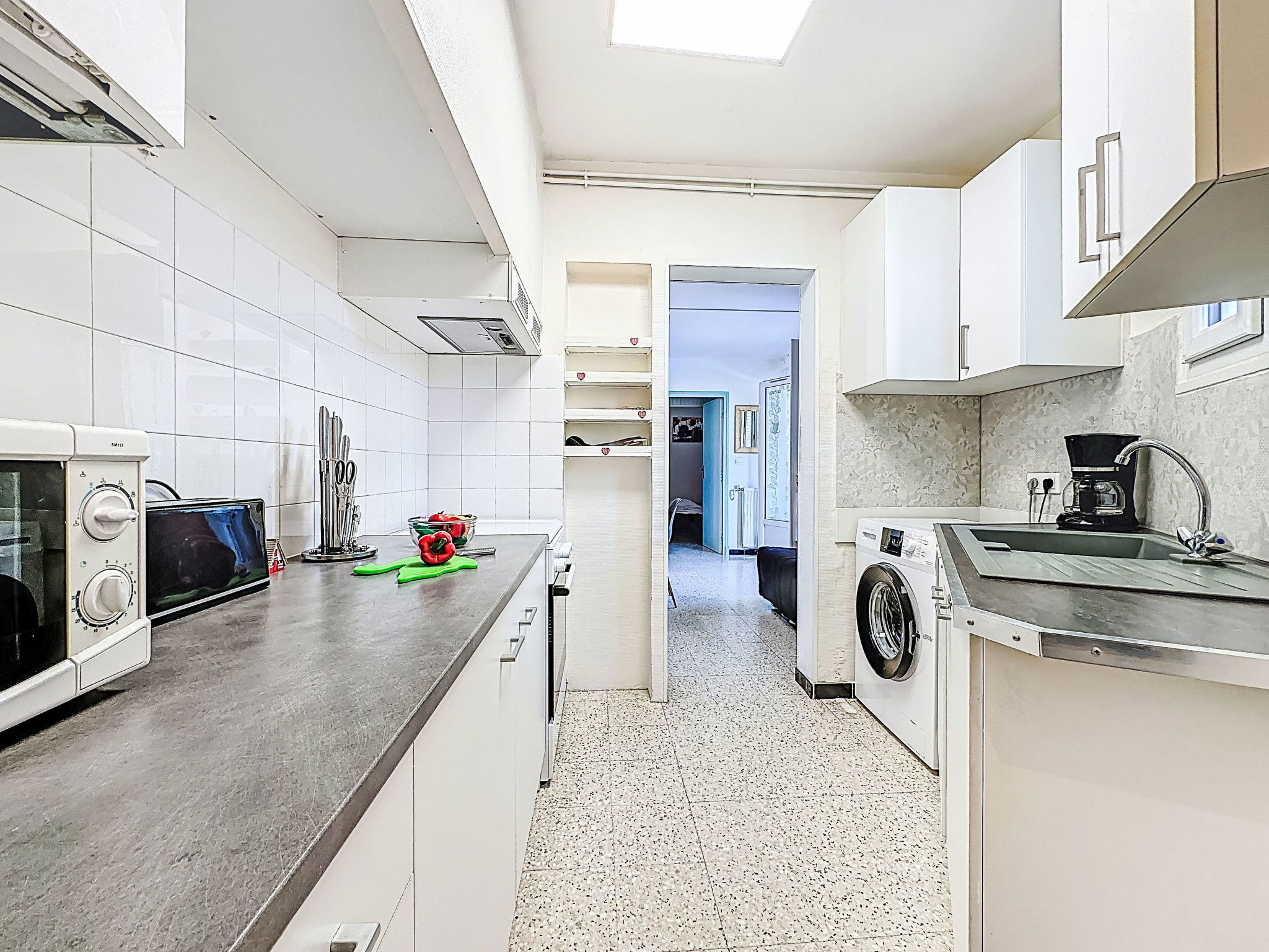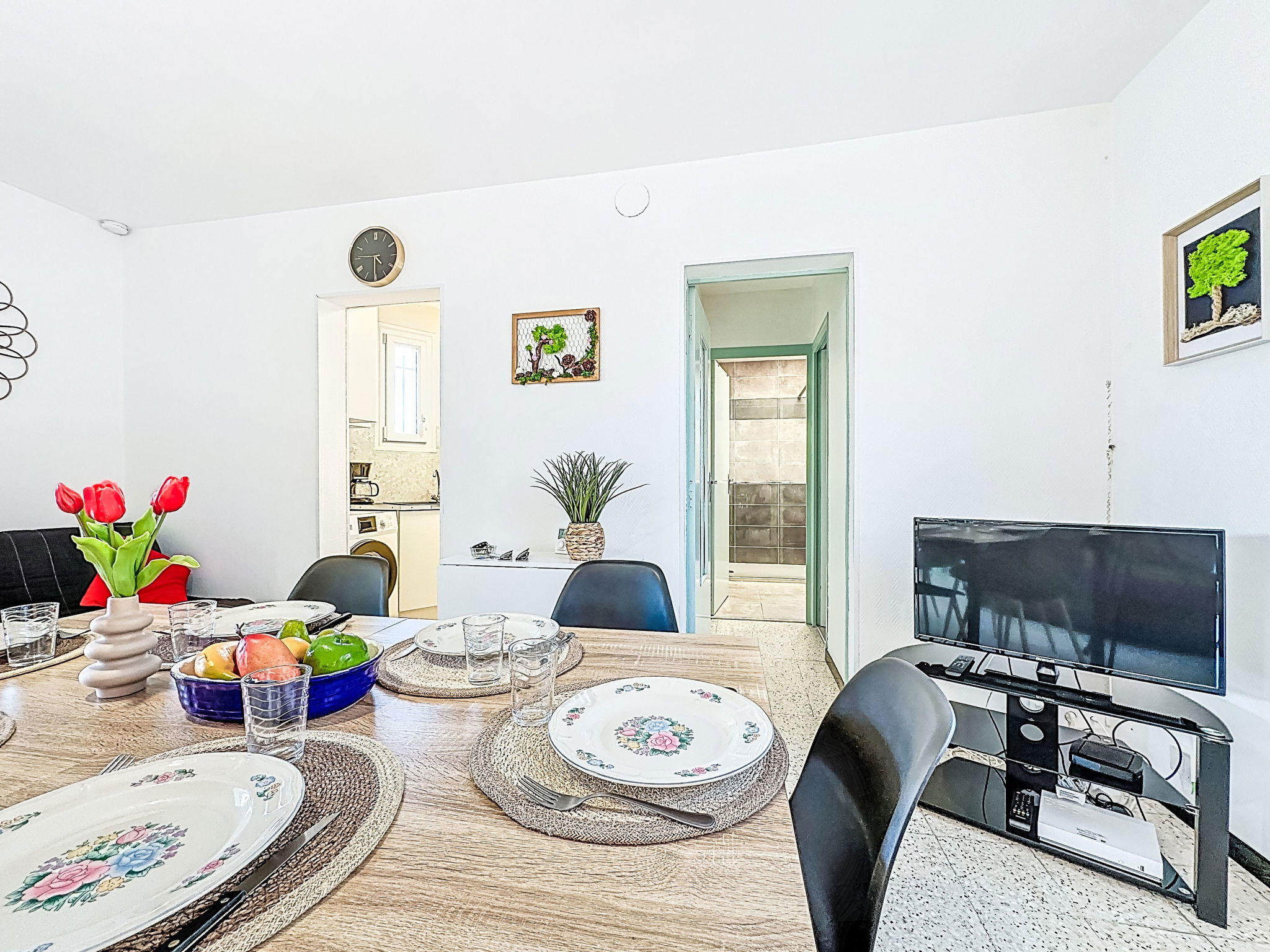 3-room apartment 56 m2, on the ground floor. Living/dining room with 1 sofabed (140 cm, length 190 cm), TV (flat screen). 1 room with 1 french bed (160 cm, length 190 cm). 1 room with 2 beds (90 cm, length 190 cm). Kitchen (oven, dishwasher, Gas stove, 3 gas rings, toaster, kettle, microwave, electric coffee machine). Shower, sep. WC. Gas heating, air-conditioning. Small terrace 4 m2 partly. Facilities: washing machine, children's high chair, baby cot. Internet (WiFi, free). Parking space n 4. Please note: non-smokers only. Maximum 1 pet/ dog allowed. Smoke alarm. Offer by a commercial proprietor according to Art. 155, IV, CGI 30133001605ES