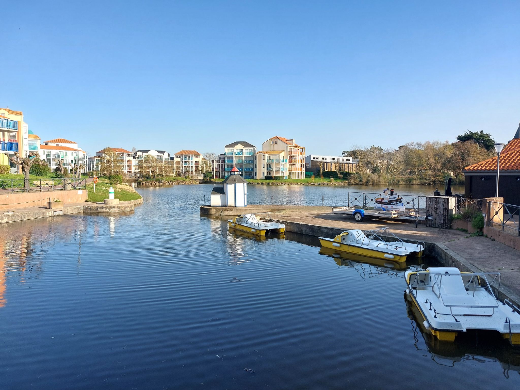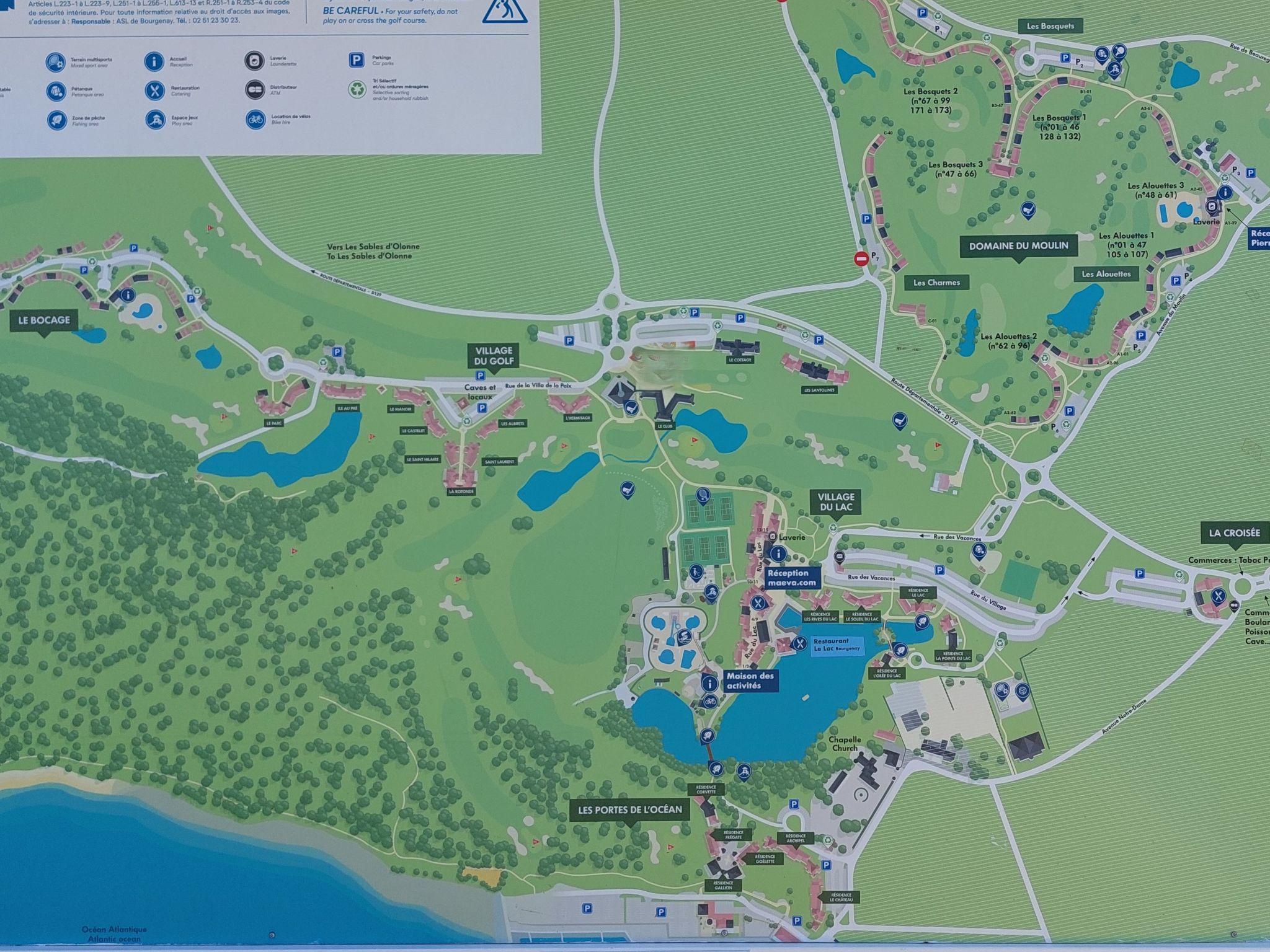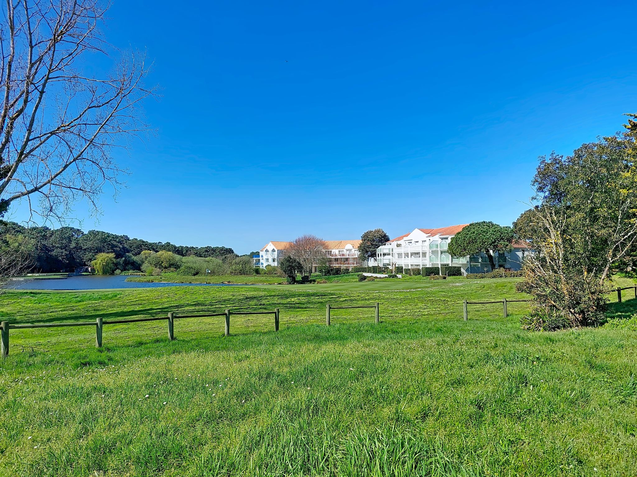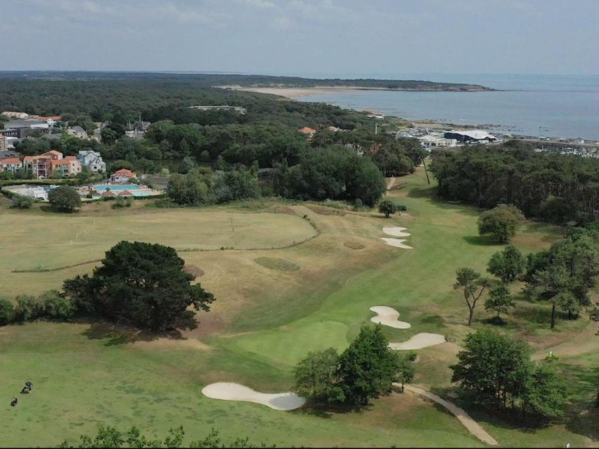 Resort "Les résidences de Port Bourgenay". In the district of Port Bourgenay 6 km from the centre of Talmont Saint Hilaire, excellent location: right in the centre but still quiet, 1.1 km from the sea, 2.6 km from the beach, in a cul-de-sac, in the countryside, on the golf course. For shared use: property 6 ha with lawn and plants, 2 swimming pools heated (seasonal availability: 25.Apr. - 13.Sep.). Shower/WC in the pool area, tennis, children's playground. In the complex: restaurant, bar. Parking. E-charging station. Shop, bicycle rental 900 m, bus stop 500 m, sandy beach "du Veillon" 2.6 km. Sports harbour 1.1 km, golf course (18 hole) 150 m, tennis, minigolf 500 m, walking paths from the house 10 m, cycle lane 100 m. Nearby attractions: Aquarium de Vendée 2 km, La Guittière (Zone naturelle protégée) 10 km, Les Sables d'Olonne 12 km, Zoo 12 km, Ile de Noirmoutier, Puy du Fou 85 km, La Rochelle-Ile de Ré 90 km. Hiking paths: GR8 (sentier côtier balisé) 1 km. Please note: suitable for families.