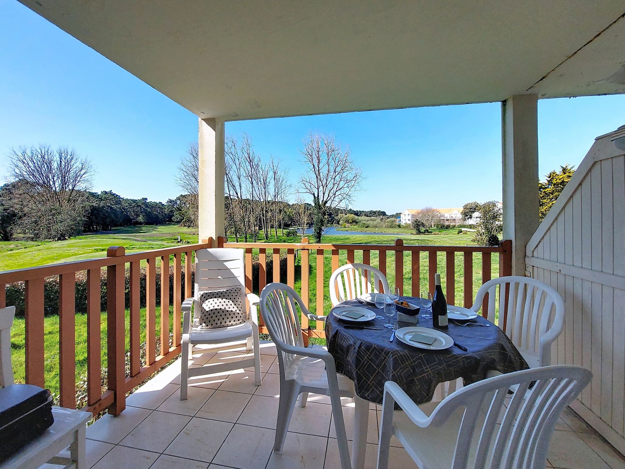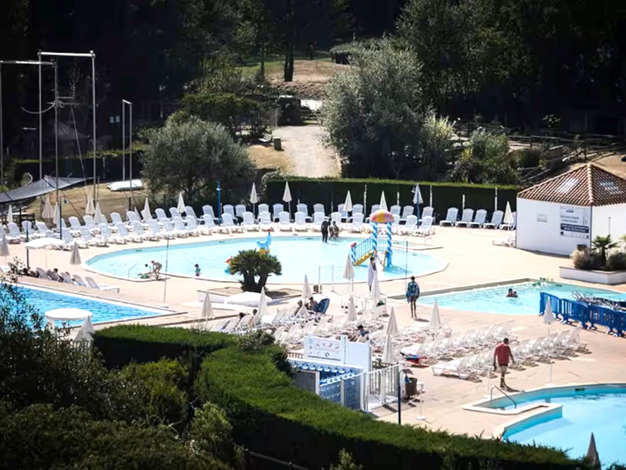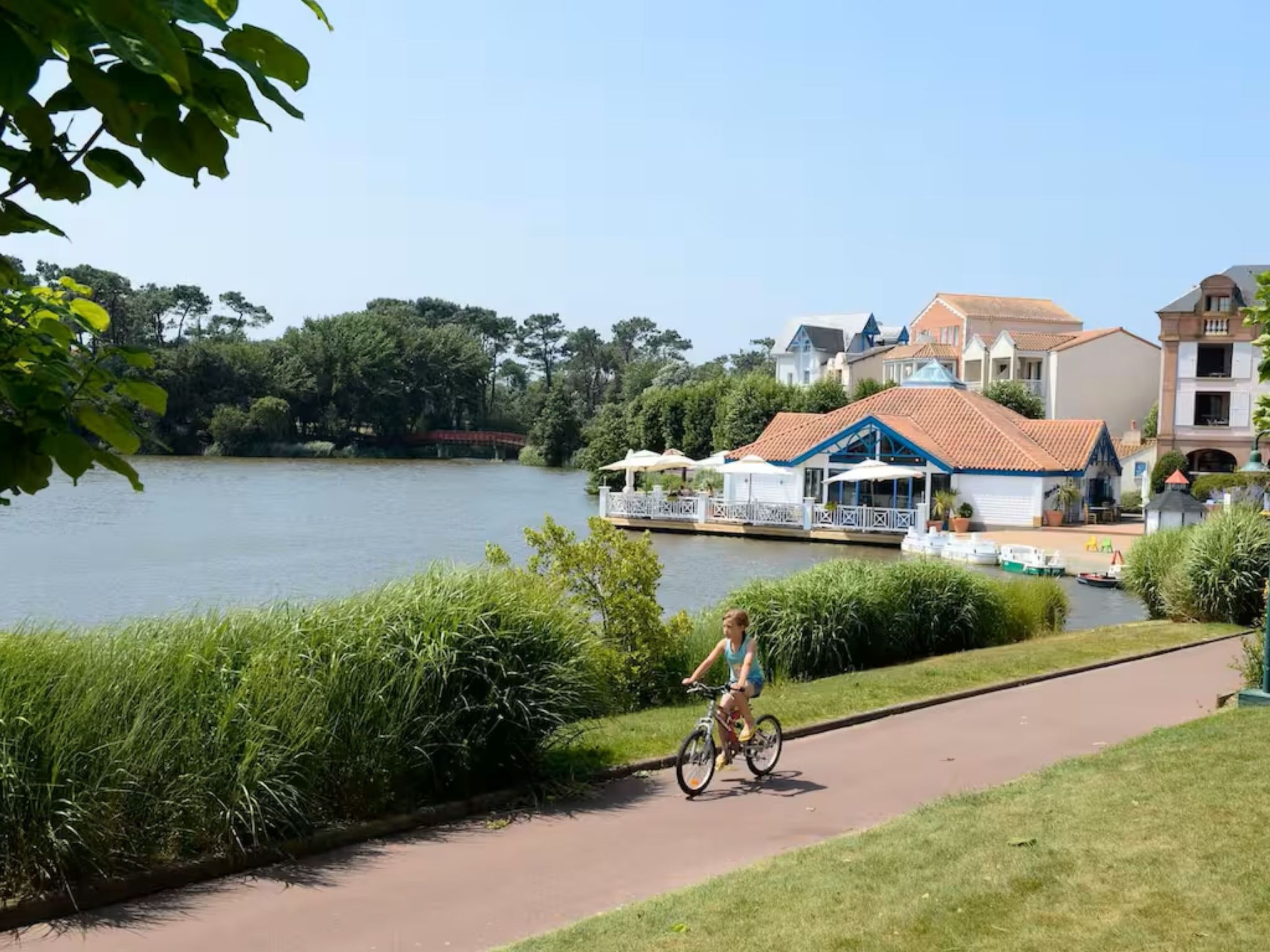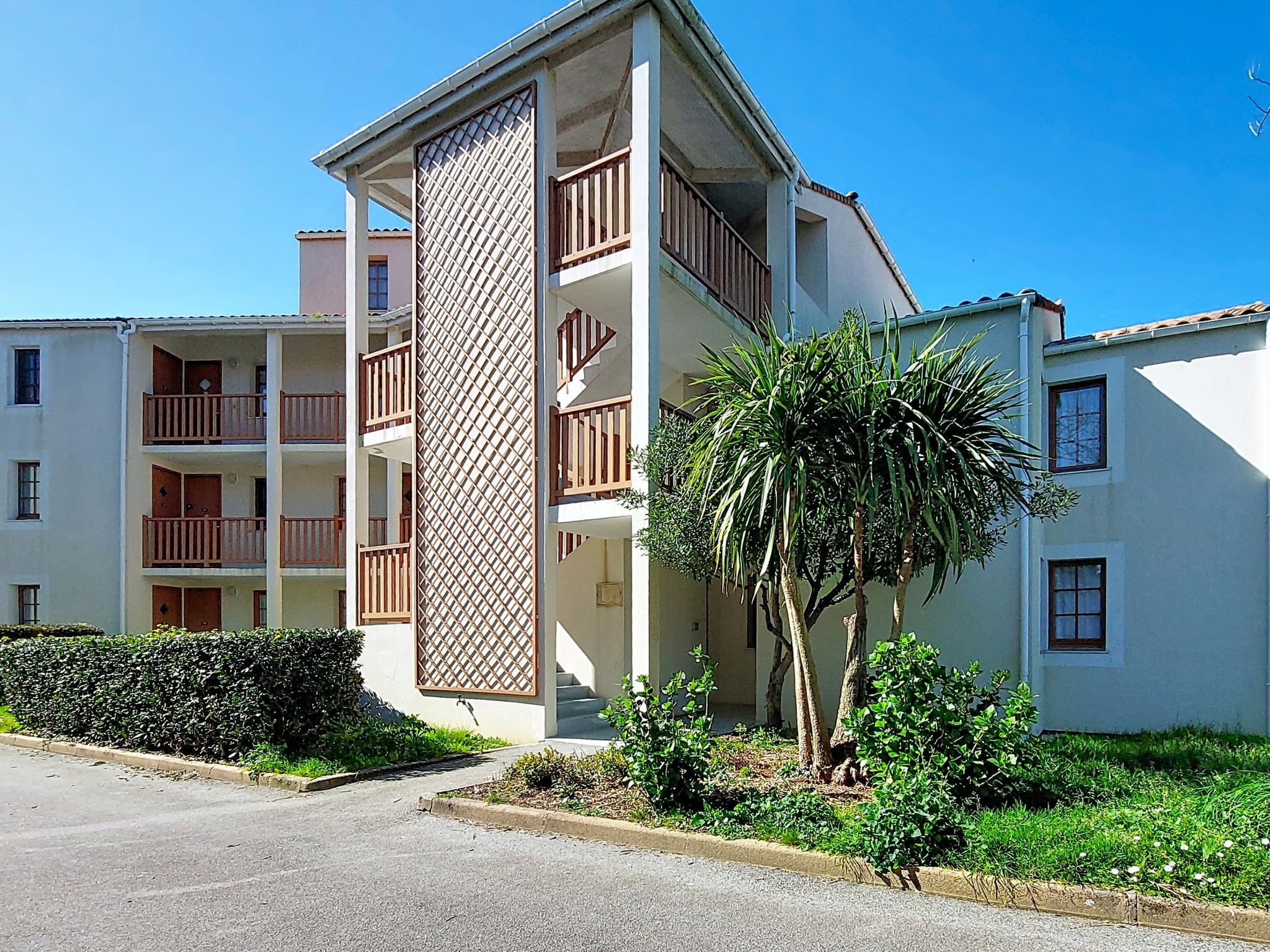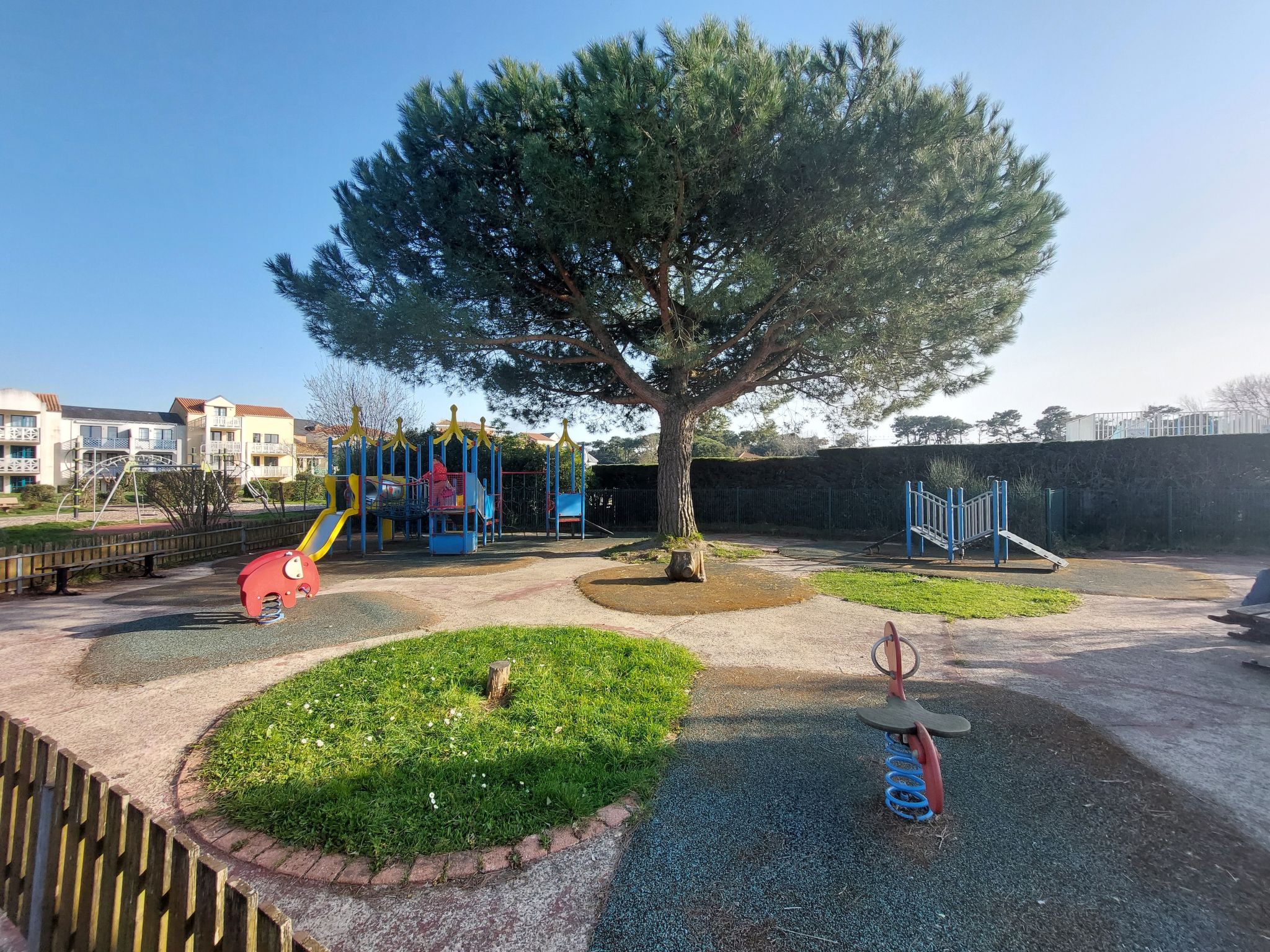Resort "Les résidences de Port Bourgenay". In the district of Port Bourgenay 6 km from the centre of Talmont Saint Hilaire, excellent location: right in the centre but still quiet, 1.1 km from the sea, 2.6 km from the beach, in a cul-de-sac, in the countryside, on the golf course. For shared use: property 6 ha with lawn and plants, 2 swimming pools heated (seasonal availability: 25.Apr. - 13.Sep.). Shower/WC in the pool area, tennis, children's playground. In the complex: restaurant, bar. Parking. E-charging station. Shop, bicycle rental 900 m, bus stop 500 m, sandy beach "du Veillon" 2.6 km. Sports harbour 1.1 km, golf course (18 hole) 150 m, tennis, minigolf 500 m, walking paths from the house 10 m, cycle lane 100 m. Nearby attractions: Aquarium de Vendée 2 km, La Guittière (Zone naturelle protégée) 10 km, Les Sables d'Olonne 12 km, Zoo 12 km, Ile de Noirmoutier, Puy du Fou 85 km, La Rochelle-Ile de Ré 90 km. Hiking paths: GR8 (sentier côtier balisé) 1 km. Please note: suitable for families.