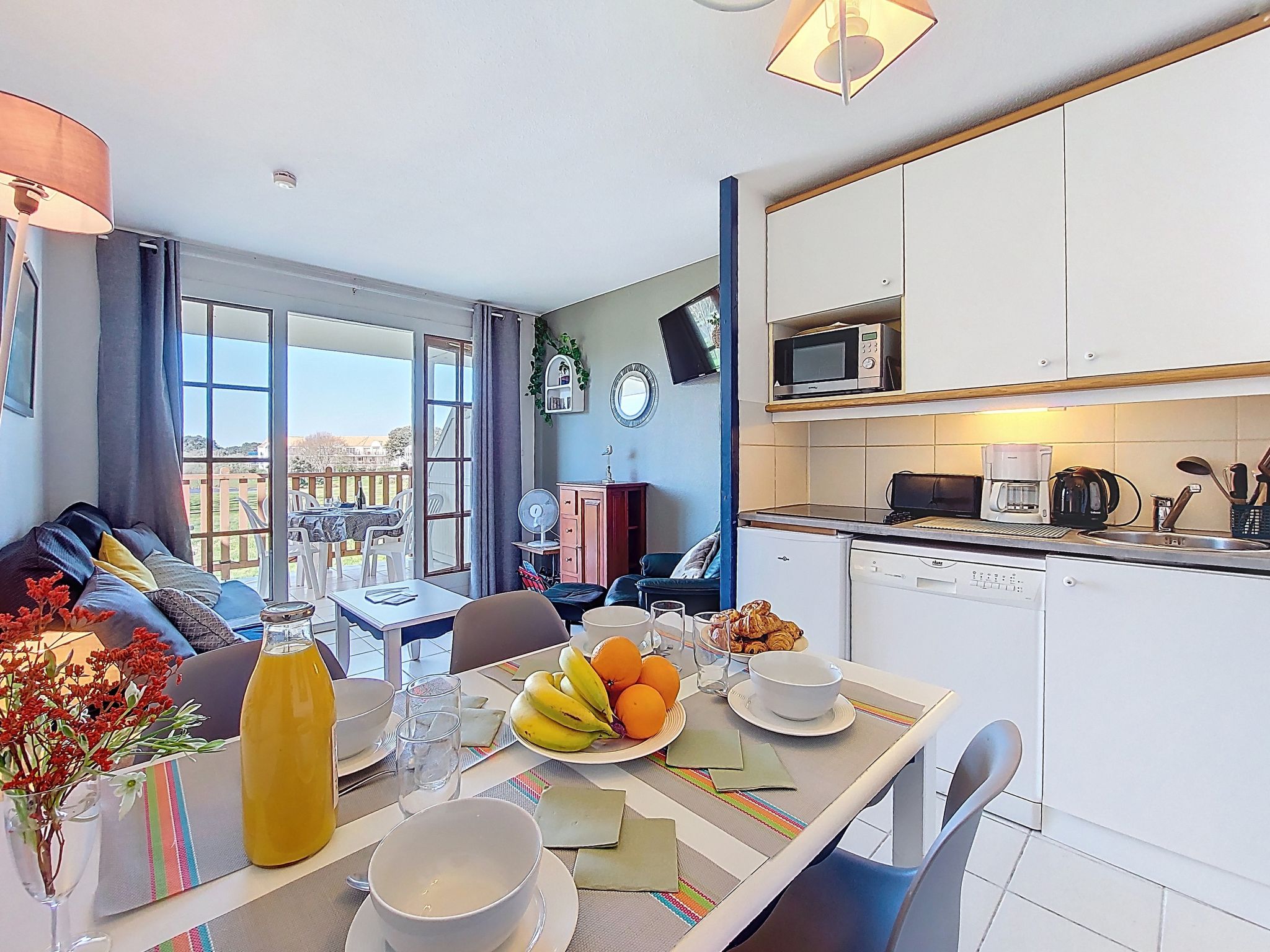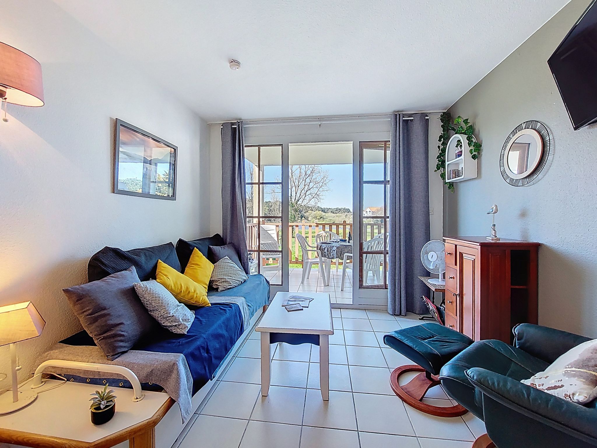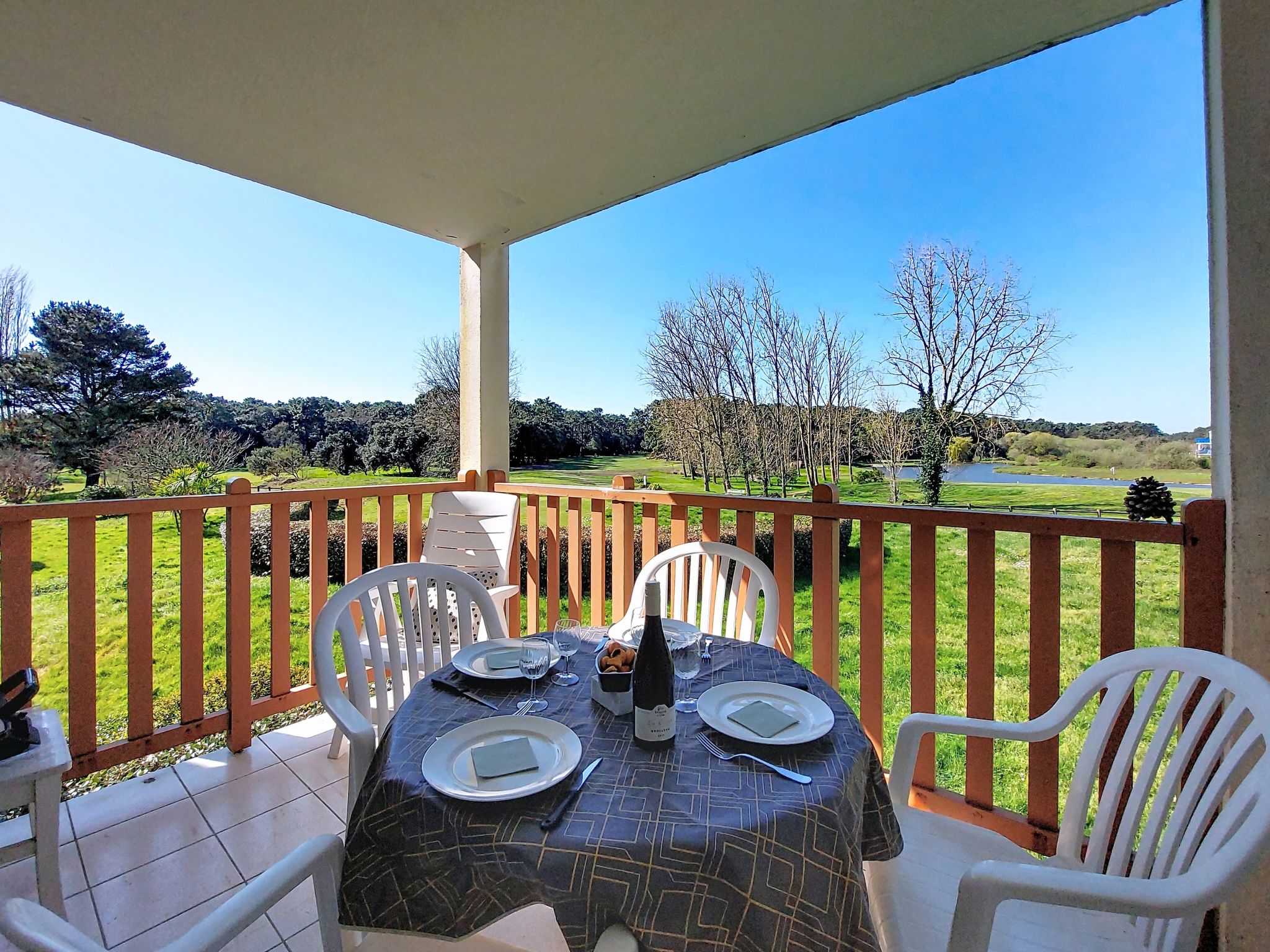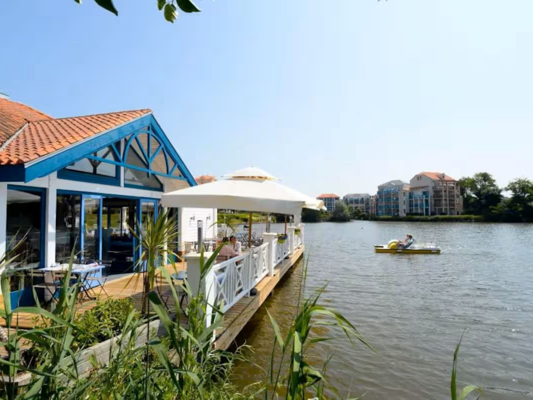 Resort "Les résidences de Port Bourgenay". In the district of Port Bourgenay 6 km from the centre of Talmont Saint Hilaire, excellent location: right in the centre but still quiet, 1.1 km from the sea, 2.6 km from the beach, in a cul-de-sac, in the countryside, on the golf course. For shared use: property 6 ha with lawn and plants, 2 swimming pools heated (seasonal availability: 25.Apr. - 13.Sep.). Shower/WC in the pool area, tennis, children's playground. In the complex: restaurant, bar. Parking. E-charging station. Shop, bicycle rental 900 m, bus stop 500 m, sandy beach "du Veillon" 2.6 km. Sports harbour 1.1 km, golf course (18 hole) 150 m, tennis, minigolf 500 m, walking paths from the house 10 m, cycle lane 100 m. Nearby attractions: Aquarium de Vendée 2 km, La Guittière (Zone naturelle protégée) 10 km, Les Sables d'Olonne 12 km, Zoo 12 km, Ile de Noirmoutier, Puy du Fou 85 km, La Rochelle-Ile de Ré 90 km. Hiking paths: GR8 (sentier côtier balisé) 1 km. Please note: suitable for families.