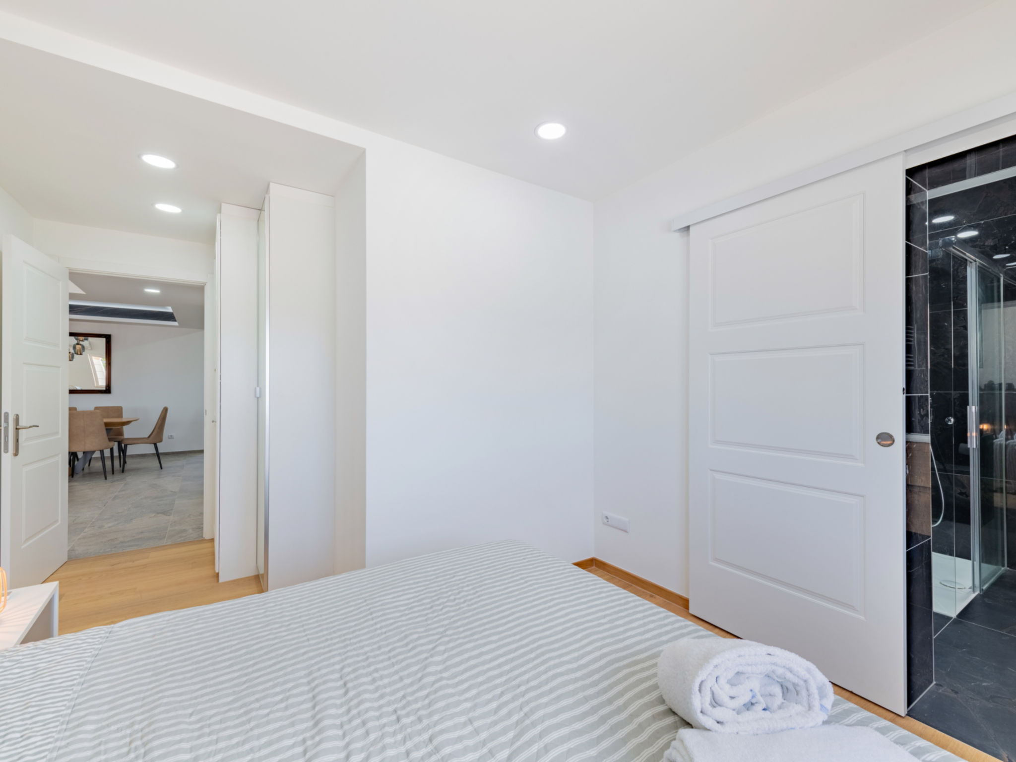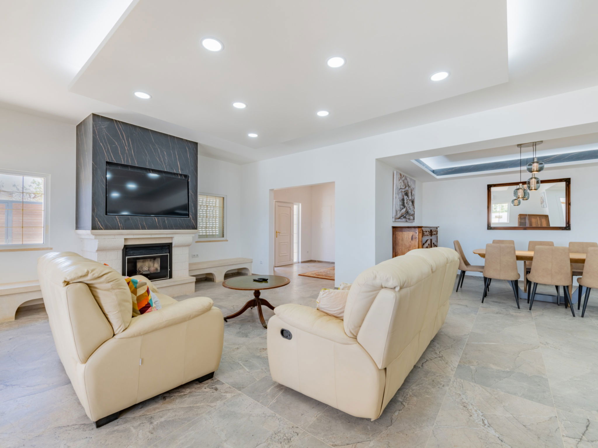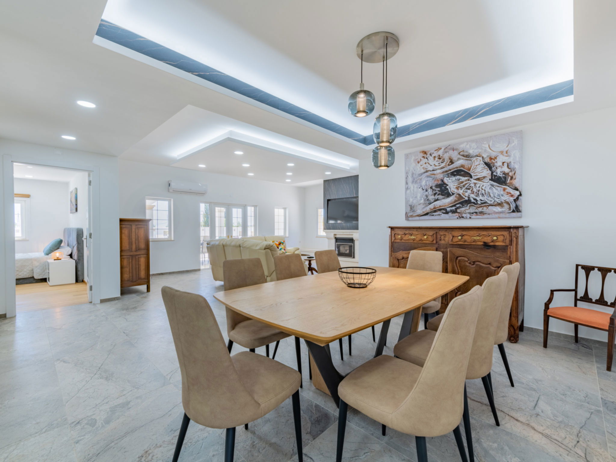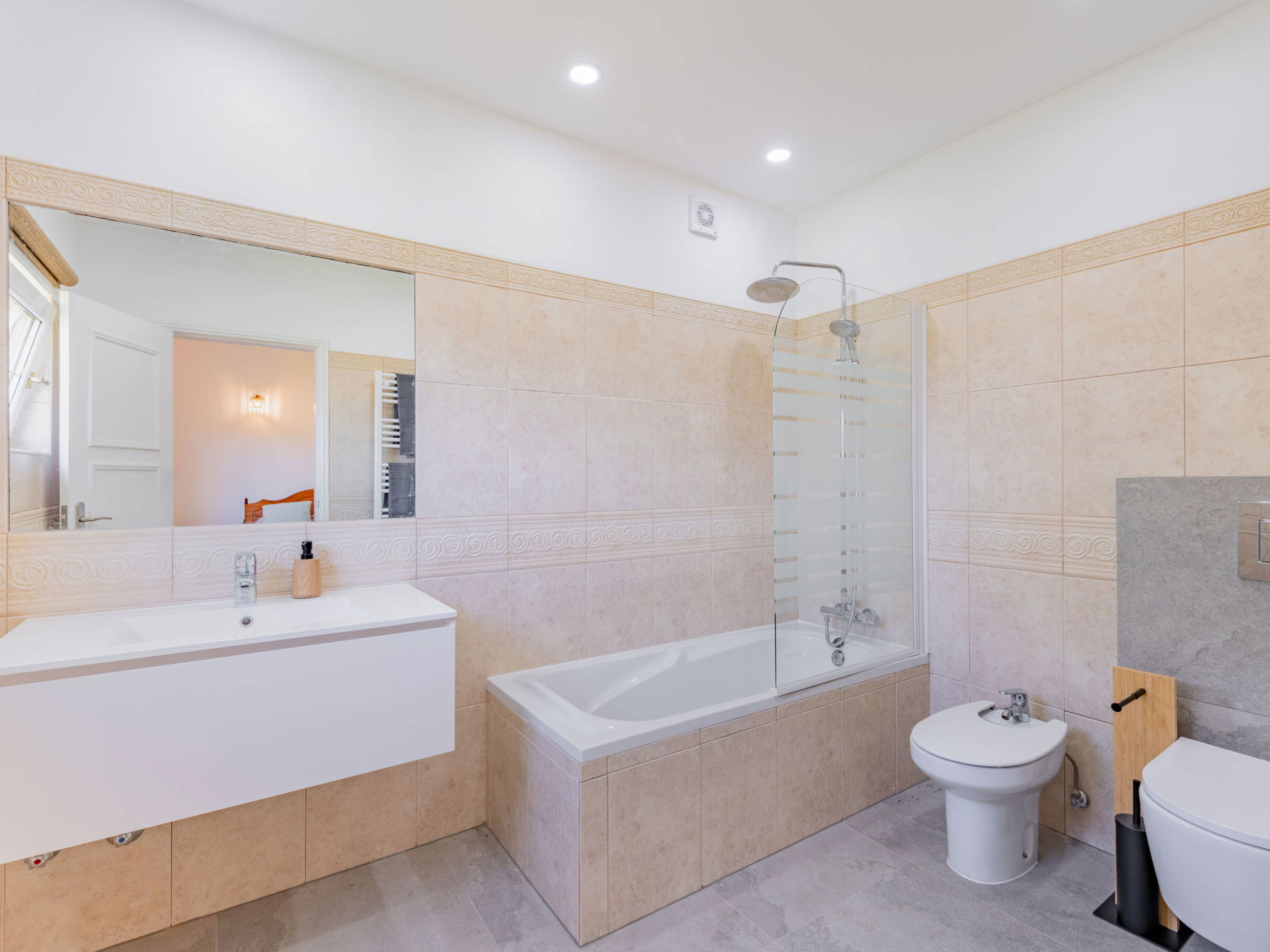 "V4 Águia Vermelha", 5-room villa 120 m2, on the ground floor. Very comfortable and cosy furnishings: living/dining room with dining table, cable TV, flat screen, air conditioning and forced-air heating. Exit to the terrace, to the swimming pool. 1 room with 1 french bed (160 cm, length 200 cm), air conditioning and forced-air heating. 1 room with 1 french bed (160 cm, length 200 cm), air conditioning and forced-air heating. 1 room with 1 french bed (160 cm, length 200 cm), air conditioning and forced-air heating. 1 room with 1 french bed (160 cm, length 200 cm), air conditioning and forced-air heating. Open kitchen (oven, dishwasher, 4 ceramic glass hob hotplates, toaster, kettle, microwave, freezer, electric coffee machine, Capsules for coffee machine (Dolce gusto not incl)). 4 showers/WC. Terrace furniture, barbecue, deck chairs. Beautiful view of the swimming pool and the garden. Facilities: washing machine, iron, children's high chair, baby cot for up to 2 year olds, hair dryer. Internet (WiFi, free). Please note: fire extinguisher. 158182/AL