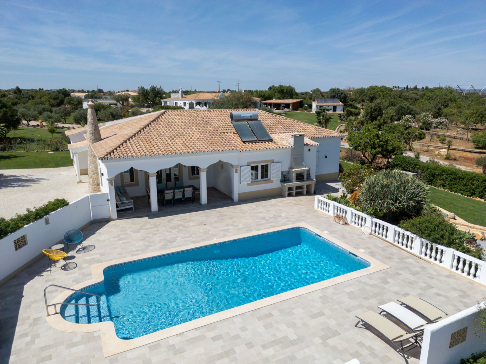 Very cosy, comfortable villa "V4 Águia Vermelha", detached. In the district Paderne, residential area (villas), 8.6 km from the sea. Private: wildlife garden and flowers, beautiful garden to relax, swimming pool angular (4 x 9 m, depth 90 - 150 cm, seasonal availability: 01.Jan. - 31.Dec.). In the house: WiFi, air conditioning, washing machine. Parking at the house. Grocery 700 m, supermarket 4.6 km, shopping centre 8.7 km, restaurant 700 m, bakery 950 m, café 6.2 km, bicycle rental 7.5 km, bus stop 450 m, sandy beach "Praia do Peneco" 8.6 km. Marina 10.1 km, golf course (18 hole) 10.5 km, surf school 14.4 km, tennis 9.4 km, minigolf 9 km, riding stable 15.7 km, children's playground 8.8 km. Nearby attractions: Krazy World 10.1 km, Casa do Acordeão 4.5 km, Castelo de Paderne 7.4 km, Donkey Tours 7.5 km, Aqualand Algarve 17.7 km, Zoomarine Algarve 11.1 km. Please note: car recommended. Groups of teenagers on request only. Loading and unloading of baggage is possible at the holiday house.