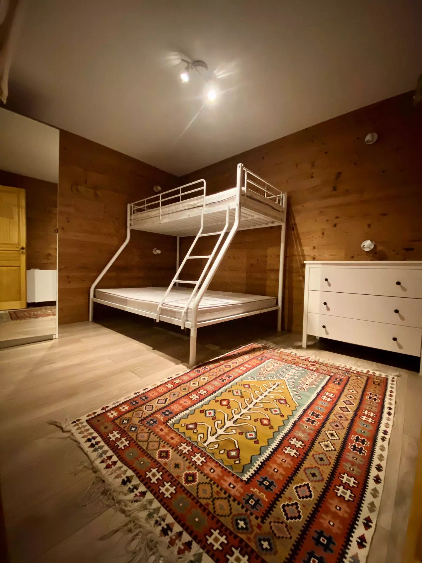 - Sleeping arrangements: one double bedroom (140cm bed), one bedroom with bunk beds (1x90 & 1x140). Bedding equipped with duvets.