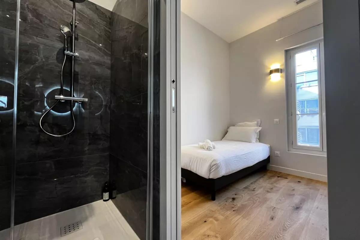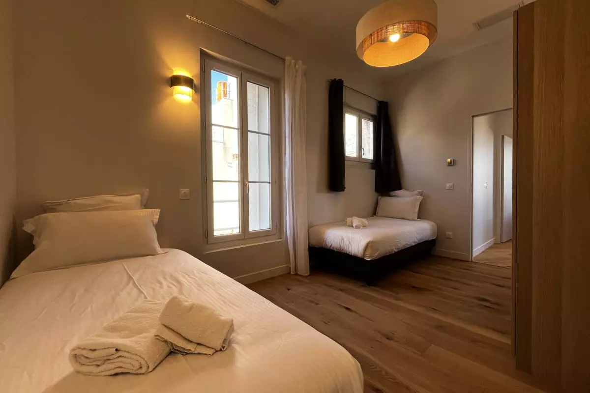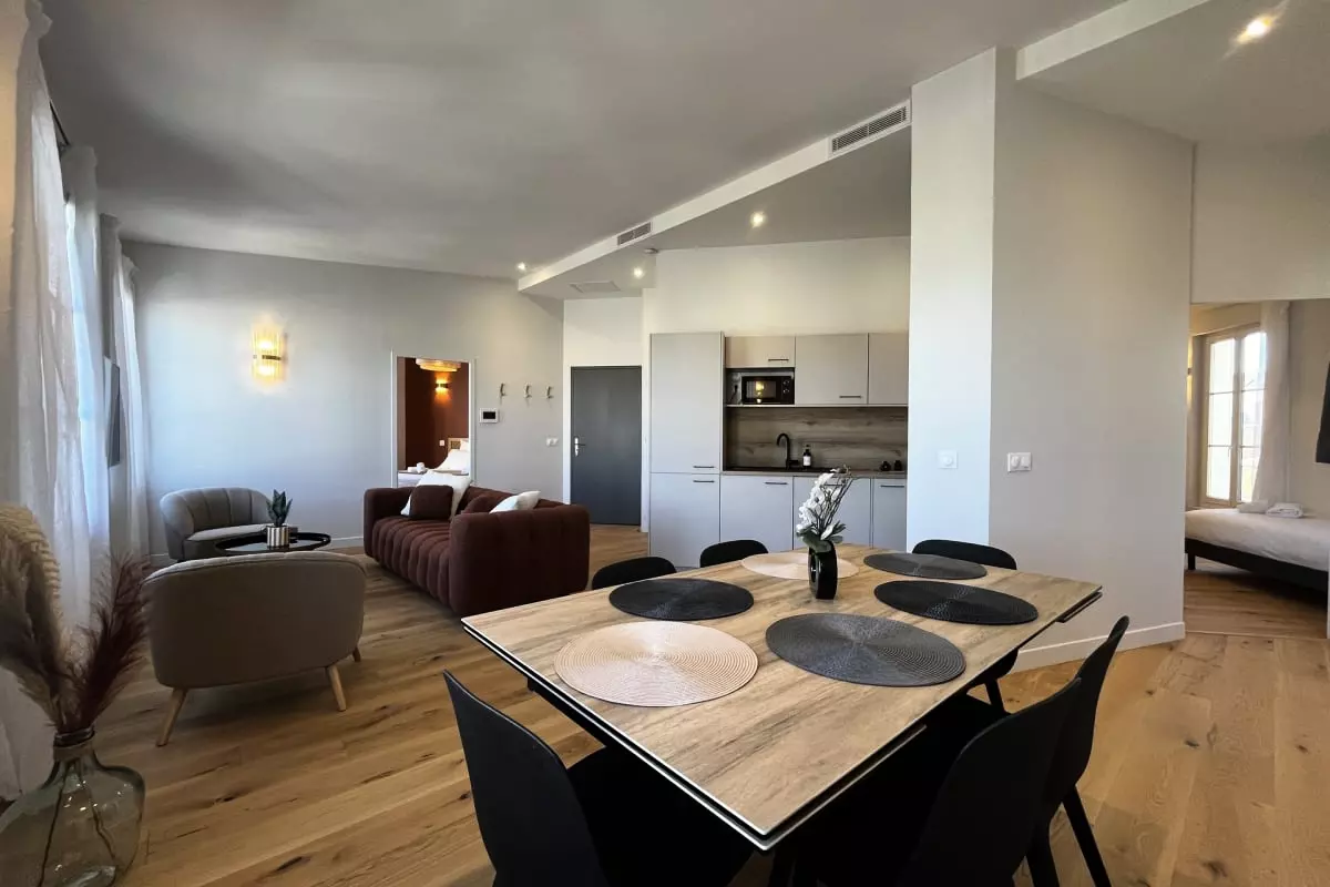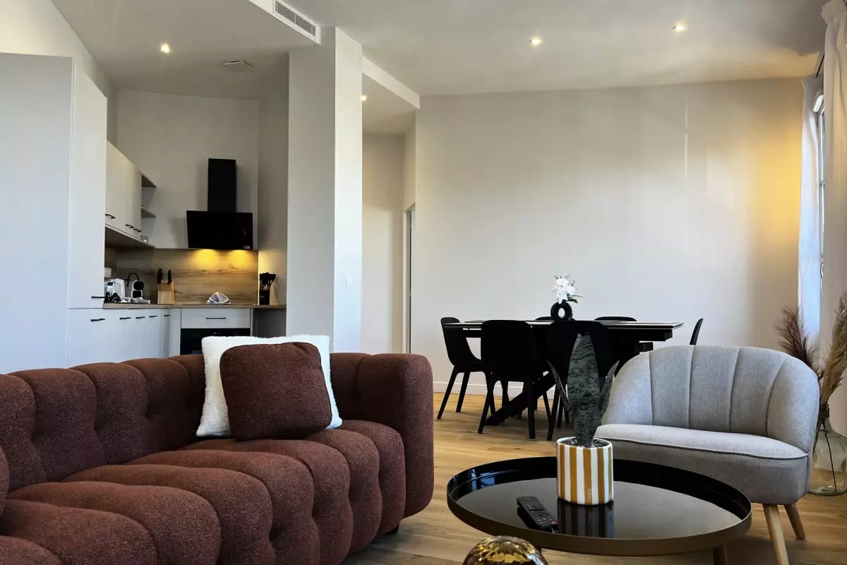 Modern 3-bedroom apartment accommodating up to 6 people, located opposite Saint-Jean train station. Air conditioning, private bathrooms, Wi-Fi, and a fully equipped kitchen. Comfortable, secure, and ideal for exploring the city.