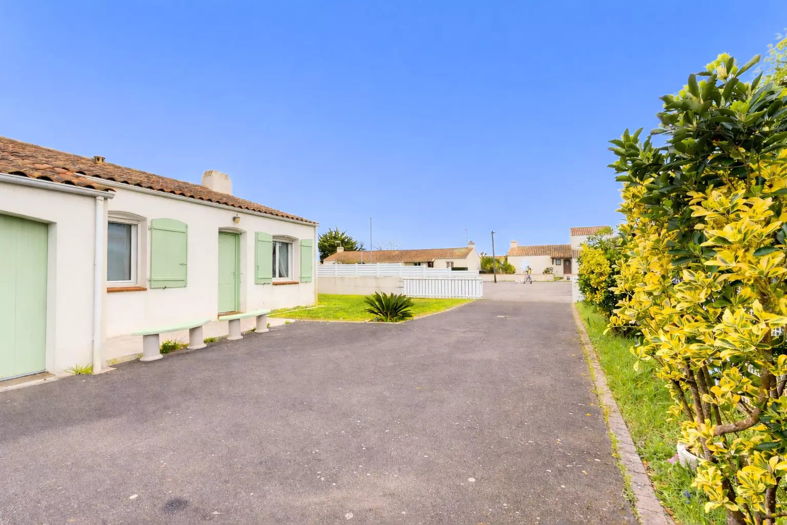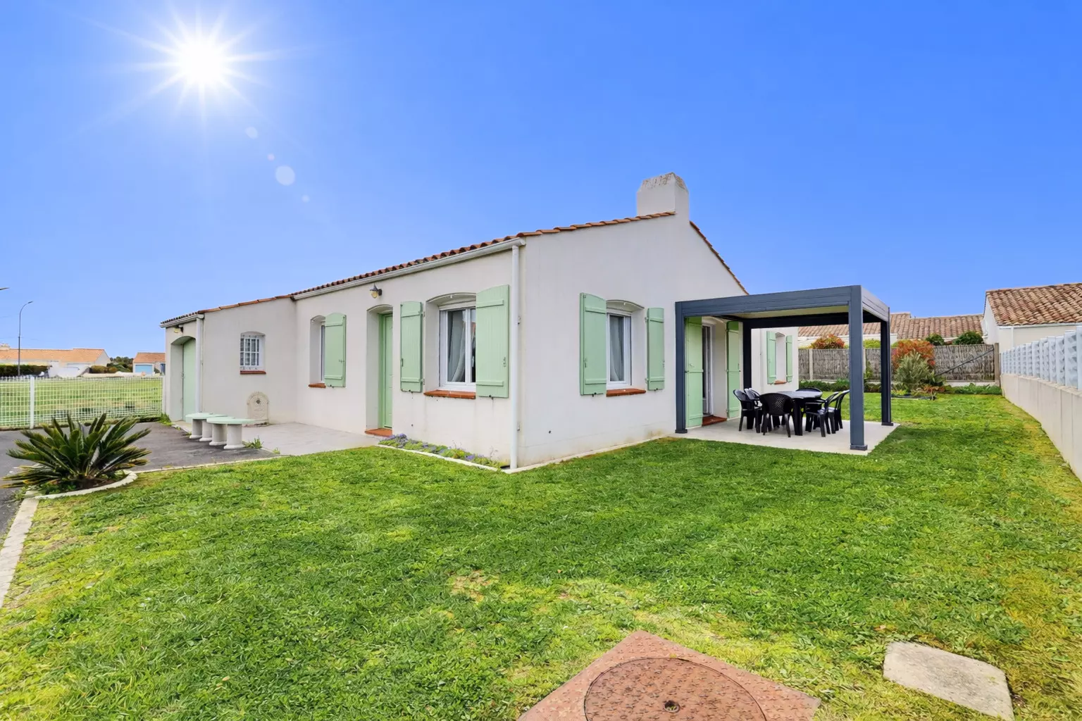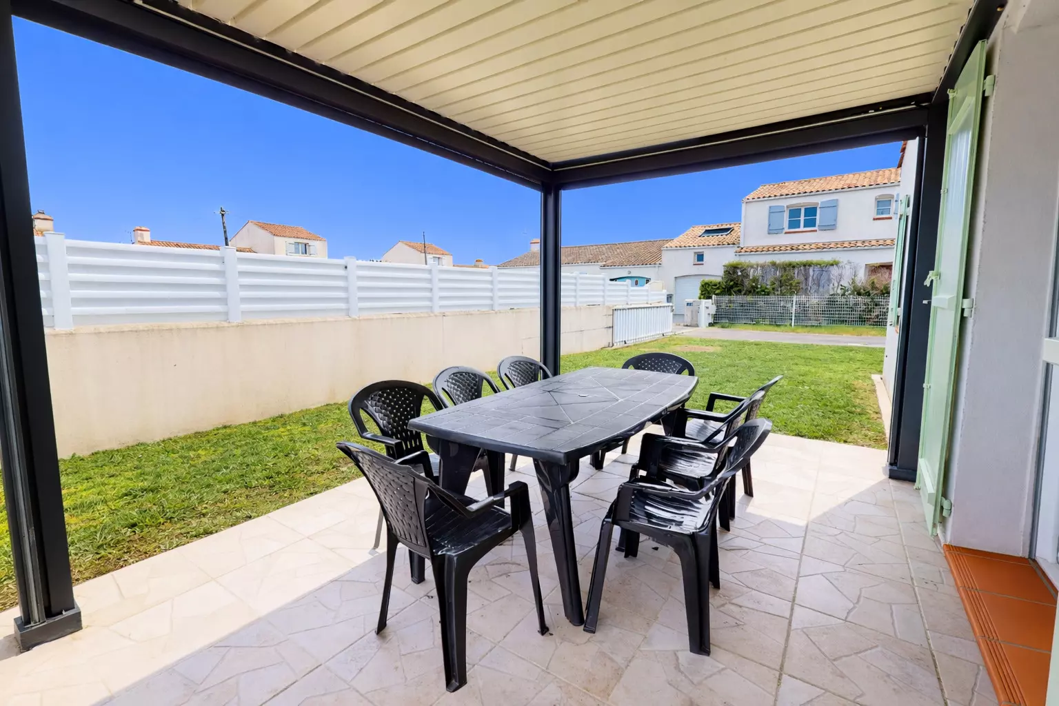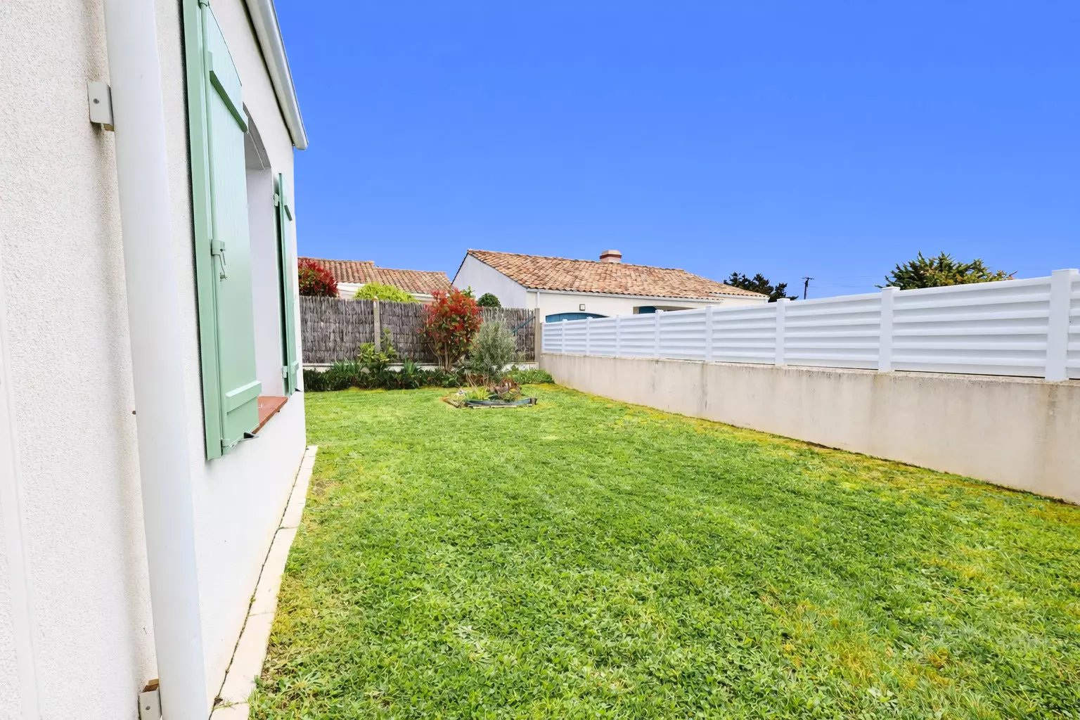 Enjoy the mild Vendée climate to the fullest thanks to an enclosed garden and a lovely terrace furnished with garden furniture. It's the perfect spot for sunny breakfasts or summer evenings. For your peace of mind, private parking is provided for at least two cars directly in front of the house, inside the property beyond the gate.