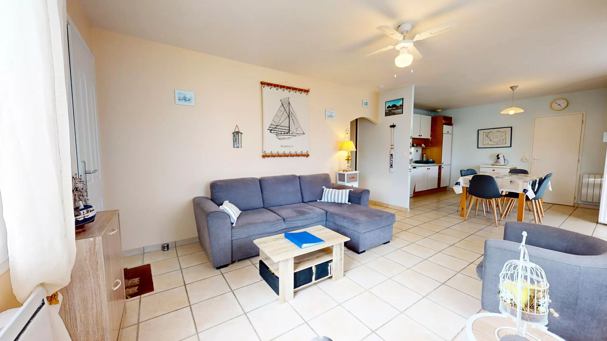 Upon arrival, you'll be captivated by the fluid layout and refined design of the living area. This welcoming space is divided into several comfortable zones:
