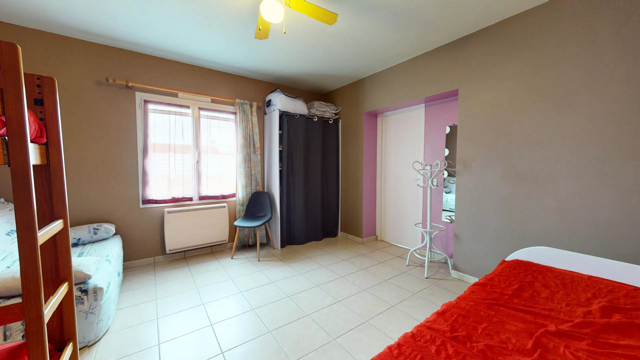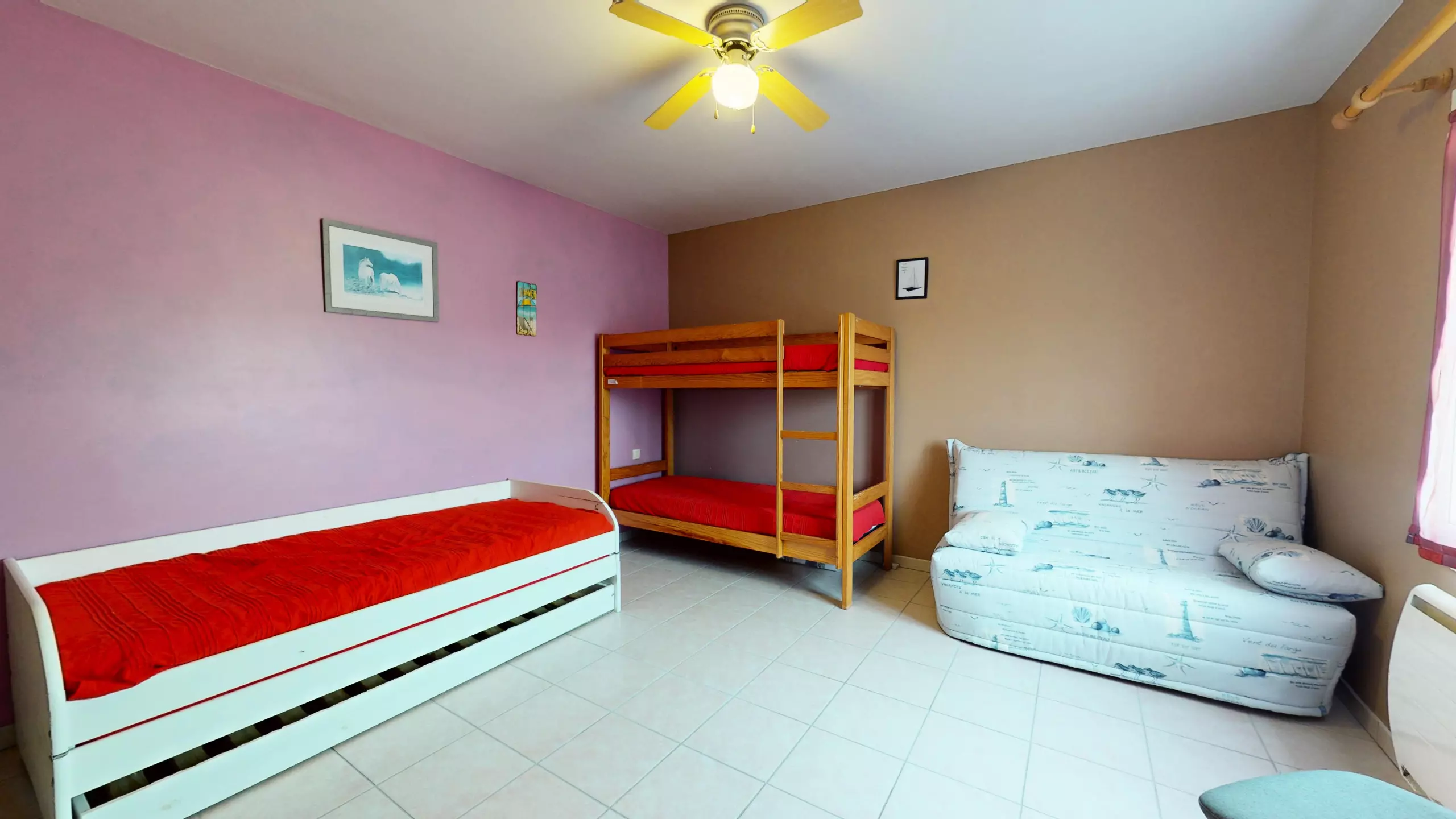 Bedroom 1: A multi-purpose space including a bunk bed (2 single beds 90x190), an additional single bed and a sofa bed.