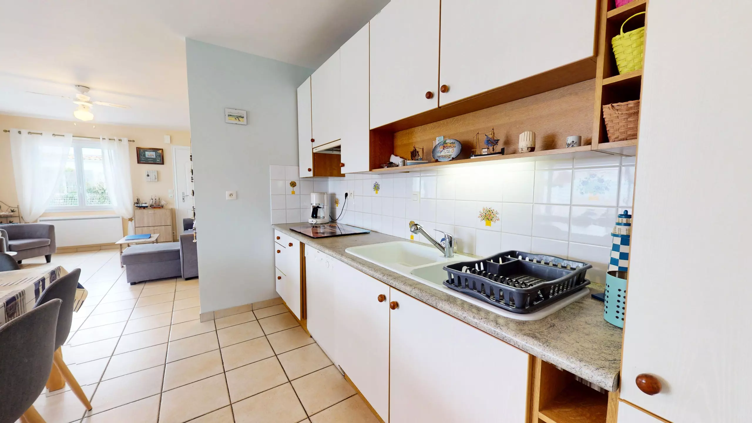 An exceptional open kitchen: Just behind, discover a magnificent, fully equipped kitchen (including induction hobs) to prepare your meals with ease.