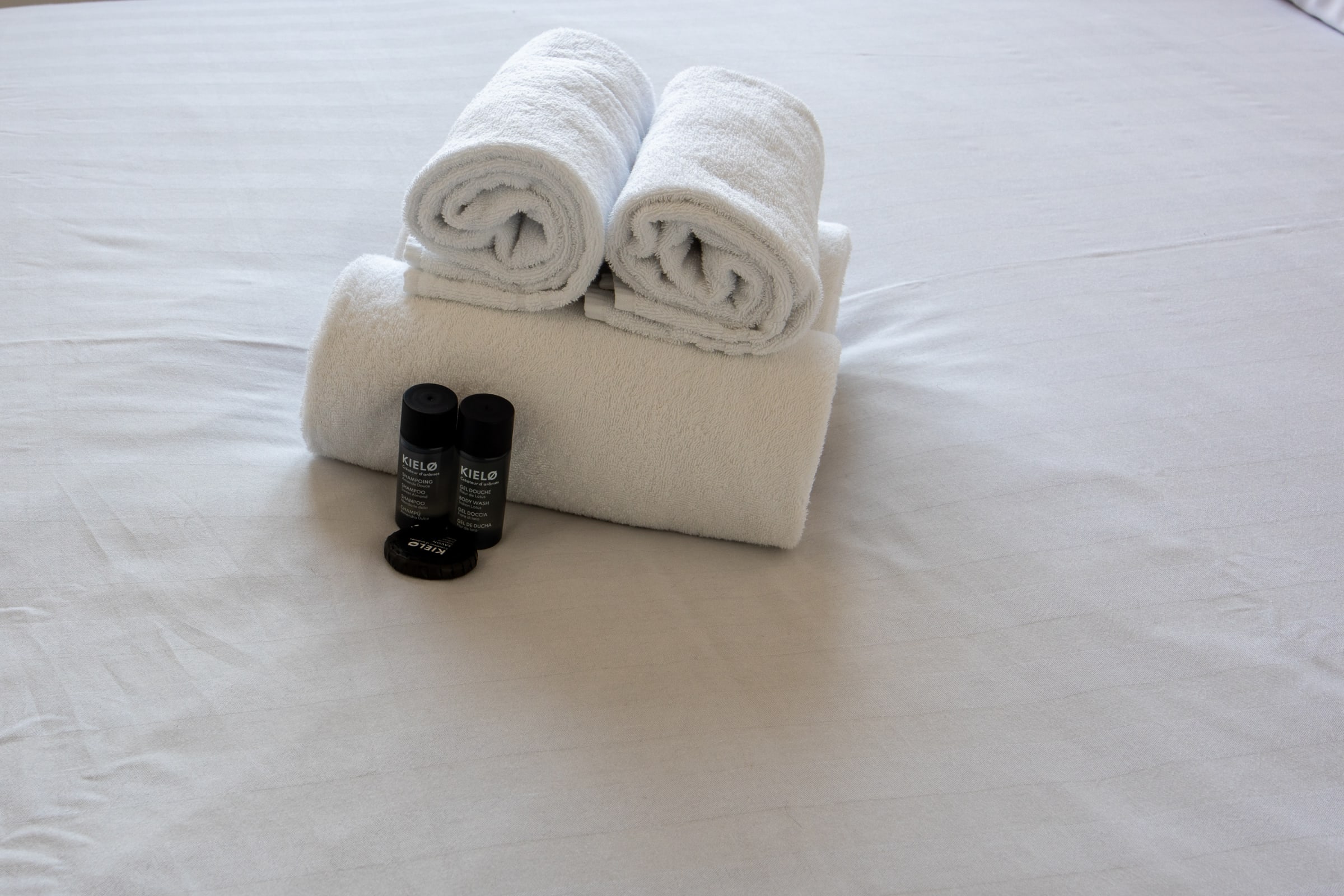 → Before your arrival and after your departure, our team performs a hotel-quality cleaning and provides you with bath towels, hotel-quality linens, and a line of natural skincare products.