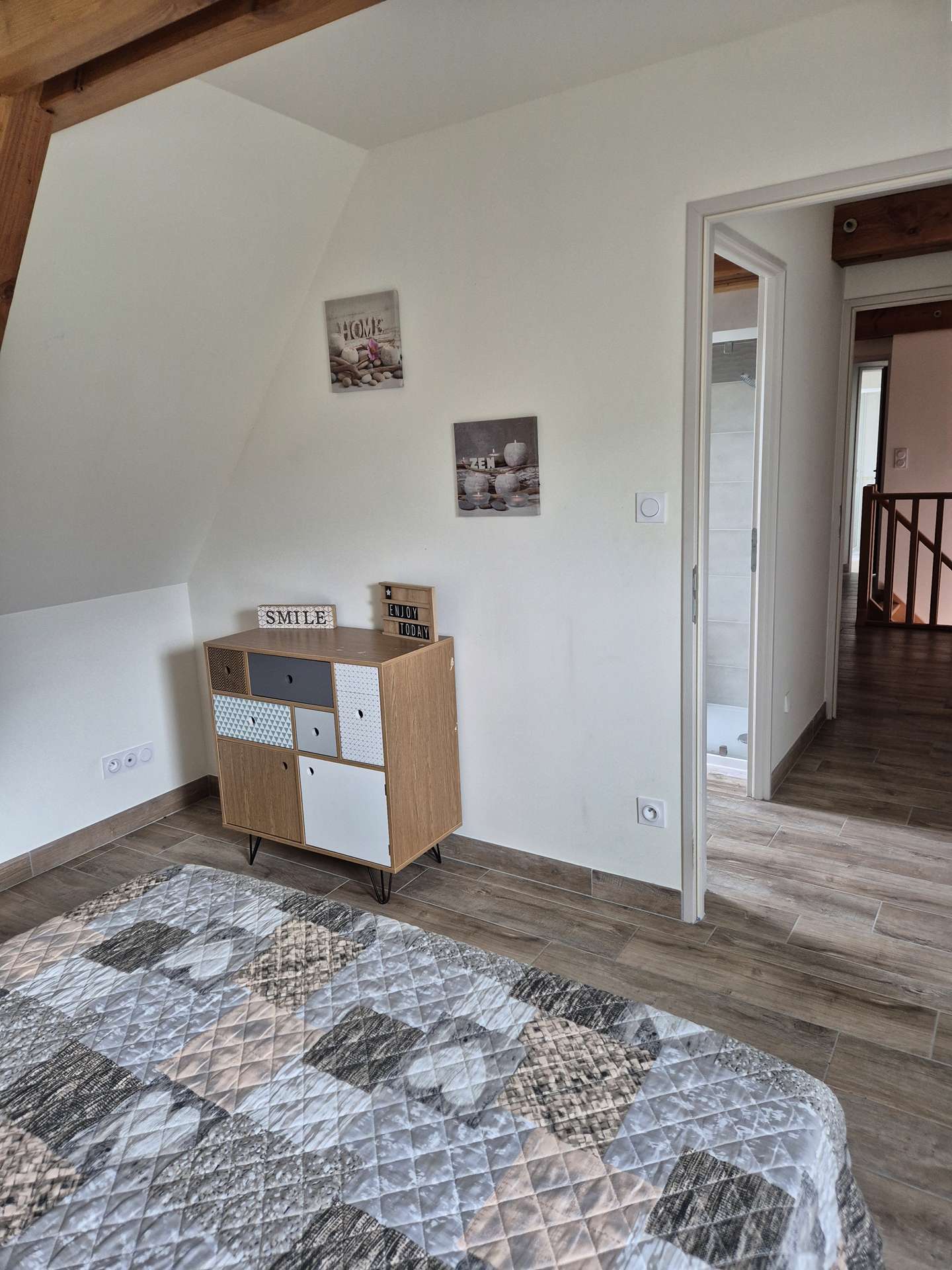 Fully renovated and thoughtfully equipped, the house combines the charm of stone with modern comforts. On the ground floor, a double bedroom has its own en-suite bathroom with toilet.