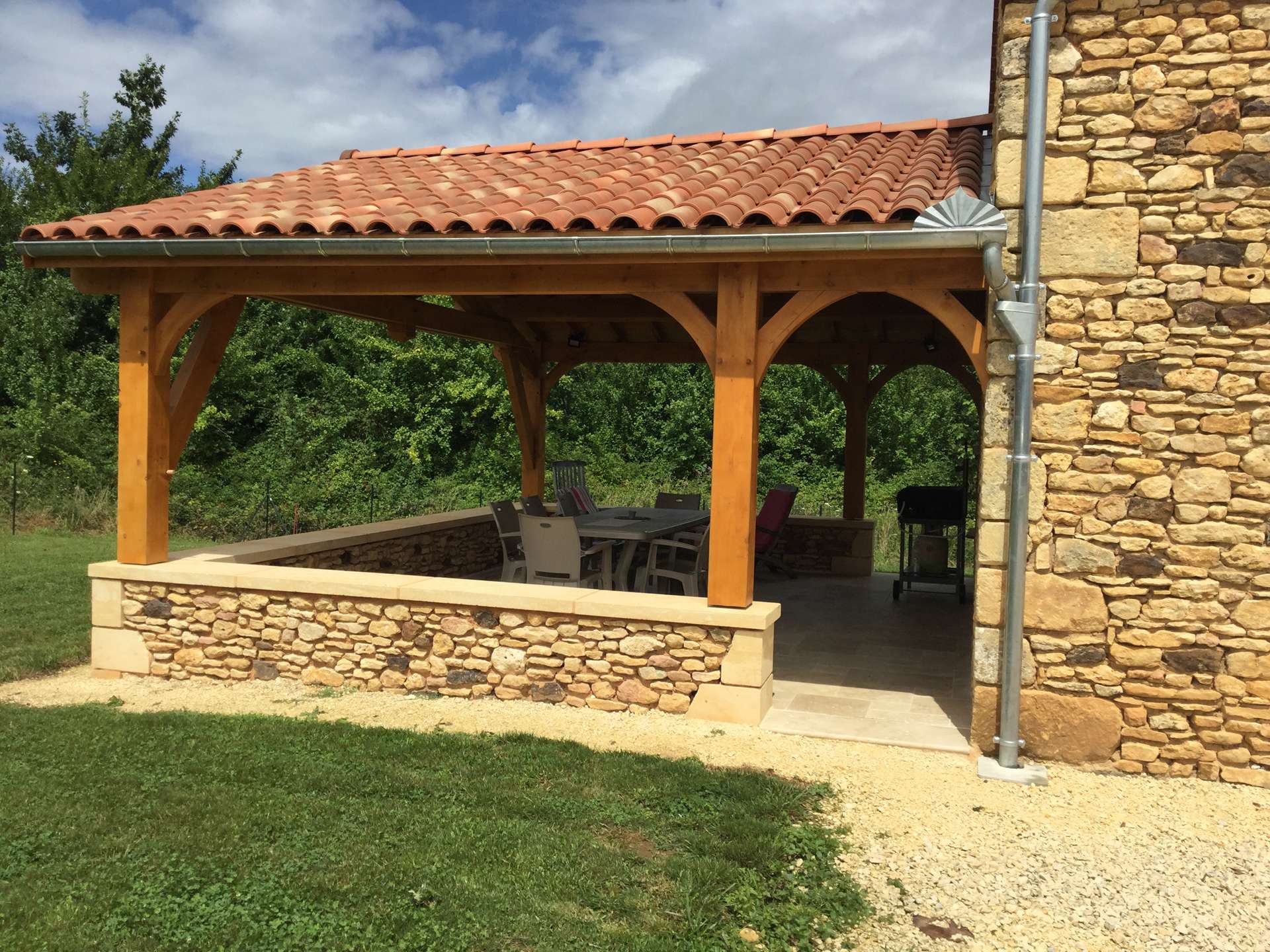 The covered terrace, equipped with a gas plancha is ideal for al fresco dining. The spacious, fenced-in one-hectare plot offers a rare sense of freedom, complete with a private, secure swimming pool open from mid-May to September.