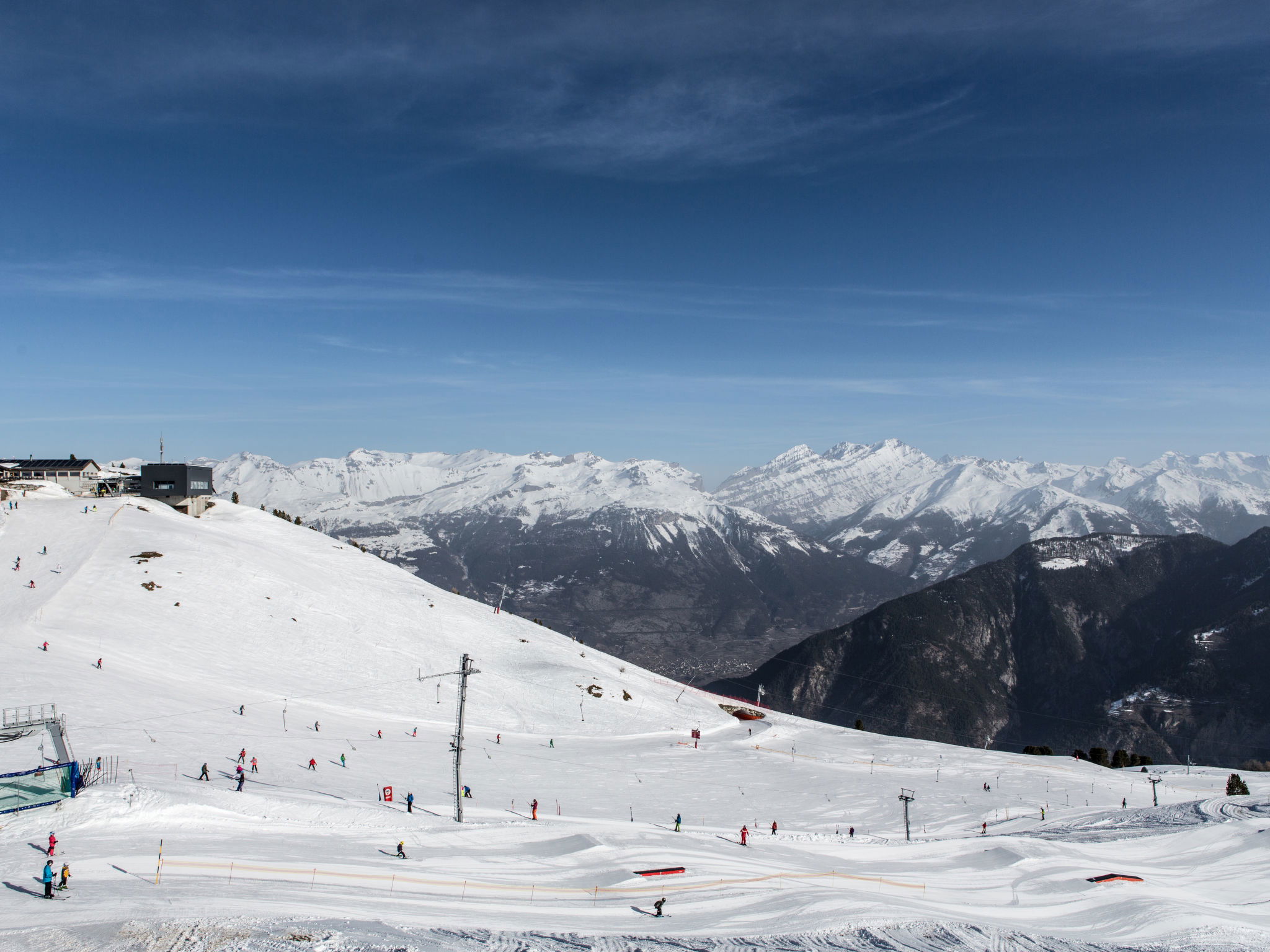 Child friendly, modern, beautiful resort "SWISSPEAK Resorts Vercorin", 1'330 m a.s.l., 6 storeys, built in 2017. 90 apartments in the residence. In the centre of Vercorin, in a quiet position on a slope, 11 km from the lake, 80 m from the skiing area. For shared use: boccia. In the complex: reception, bar, lounge, bistro, WiFi, sauna, steam room, hot tub, playroom, lift, storage room for bicycles, storage room for skis, central heating system, washing machine (extra), tumble dryer (extra). Linen change (suppl. charge extra). Storeroom available. Motor access to the house. In Winter: please take snow chains. Parking, communal covered parking (extra). Dimension: height 225 cm. E-charging station. Grocery 150 m, restaurant 180 m, bar 10 m, bicycle rental 550 m, bus stop "Vercorin, Poste" 400 m, outdoor swimming pool 11 km, indoor swimming pool 13 km, bathing lake "Lac de Géronde, Sierre" 11 km. Golf course (18 hole) 11 km, tennis 650 m, minigolf 700 m, walking paths from the house 100 m, cable car 750 m, gondola lift 80 m, skisport facilities 10 m, slopes 80 m, ski rental, ski bus stop, ski school, children's ski school 20 m, sled run 650 m, ice rink 550 m, children's playground 650 m. Nearby attractions: Fôret aventures Vercorin 1.5 km, Les moulines de St-Luc 17 km, Trottinette tout terrain St-Luc 17 km, Observatoire François-Xavier Bagnoud 20 km, Château de Tourbillon 20 km, Barrage de Moiry 24 km. Well-known ski regions can easily be reached: Grimentz Zinal 15 km, St-Luc Chandolin 17 km, Crans Montana 27 km. Hiking paths: Vallon de Réchy 500 m, Grimentz 14 km, Zinal 19 km. Please note: car recommended. Suitable for families. Groups of teenagers on request only. Ski bus (free of charge). In case of good snow conditions, the house is accessible on skis. Loading and unloading of baggage is possible at the holiday house. The photo is just an example. Additional equipment available: ATM, Gaming Room, après-ski bar: 20m. SPA for guests 16 years and over, towels can be rented for CHF 2.- each.