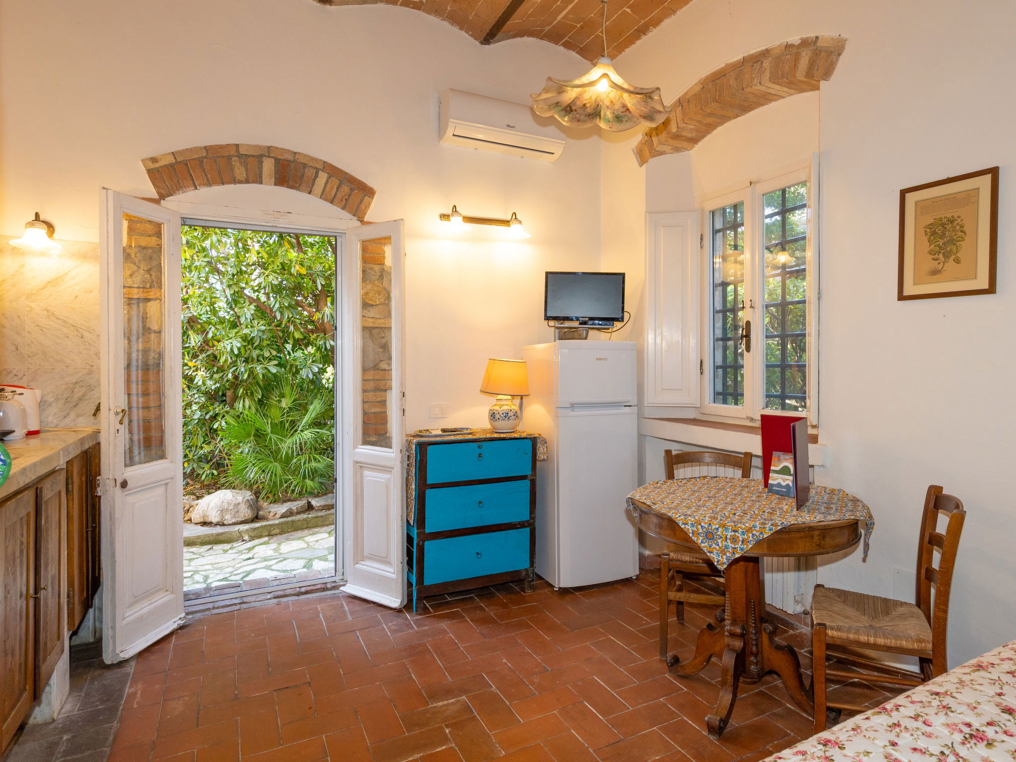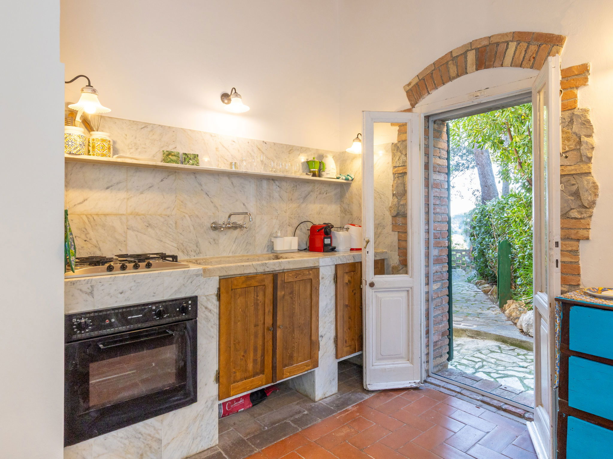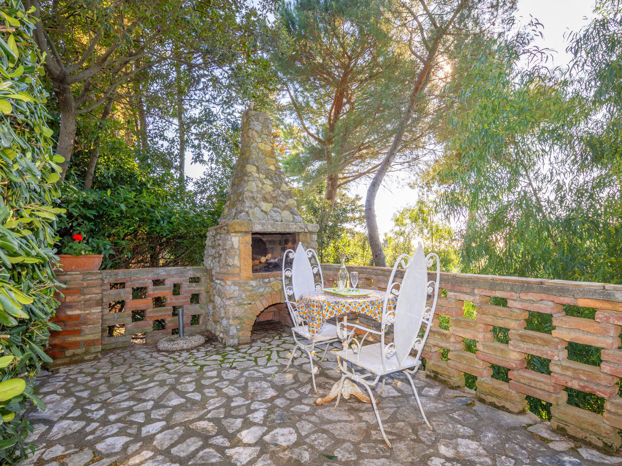 "Terrazzina", 1-room apartment 30 m2, on the ground floor. Simple and practical furnishings: living/sleeping room with 1 double bed, dining table and kitchen corner. Kitchenette (oven, Gas stove, 4 gas rings, toaster, kettle, electric coffee machine, Capsules for coffee machine (Nespresso)). Exit to the patio. Shower/bidet/WC. Electric heating, gas heating, air-conditioning. Patio. Barbecue. Beautiful distant view of the sea and the countryside. Facilities: washing machine, dryer, mosquito net, children's high chair, baby cot for up to 2 year olds, hair dryer. Internet (WiFi, free). Please note: maximum 2 pets/ dogs allowed. Private entrance, smoke alarm, fire extinguisher. IT049017C2TIX5QFAJ
