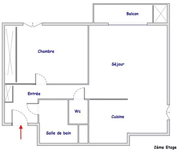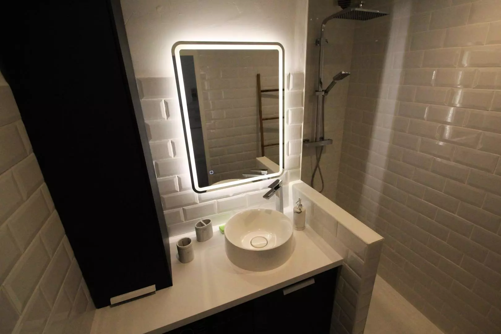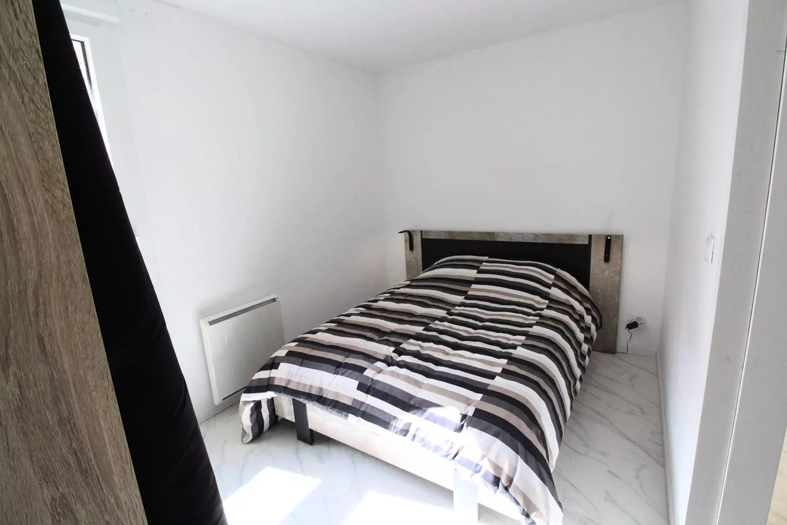 Entrance with storage, shower room with shower and washing machine, separate toilet. One bedroom with a double bed (140cm), wardrobe.
