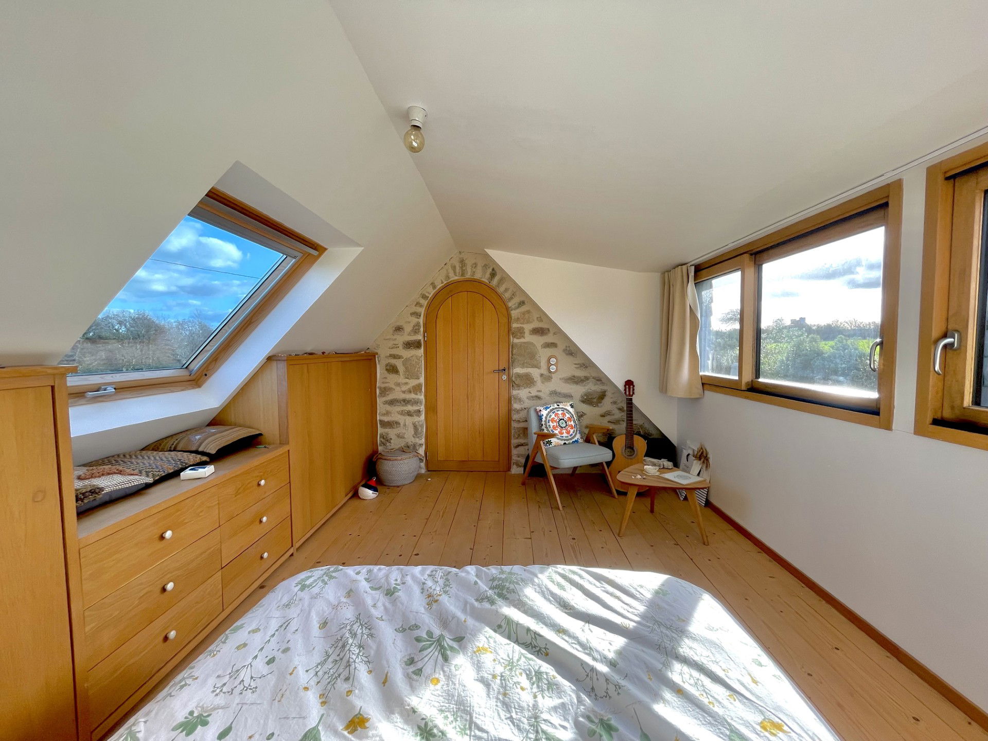 Our characterful house combines the authenticity of a Breton cottage with a modern atmosphere. A house with timeless colors, which has 3 bedrooms, 1 bathroom, 1 outdoor heated shower, a large 45m2 living room, a beautiful terrace with a bread oven, surrounded by a large enclosed garden of 600m2.