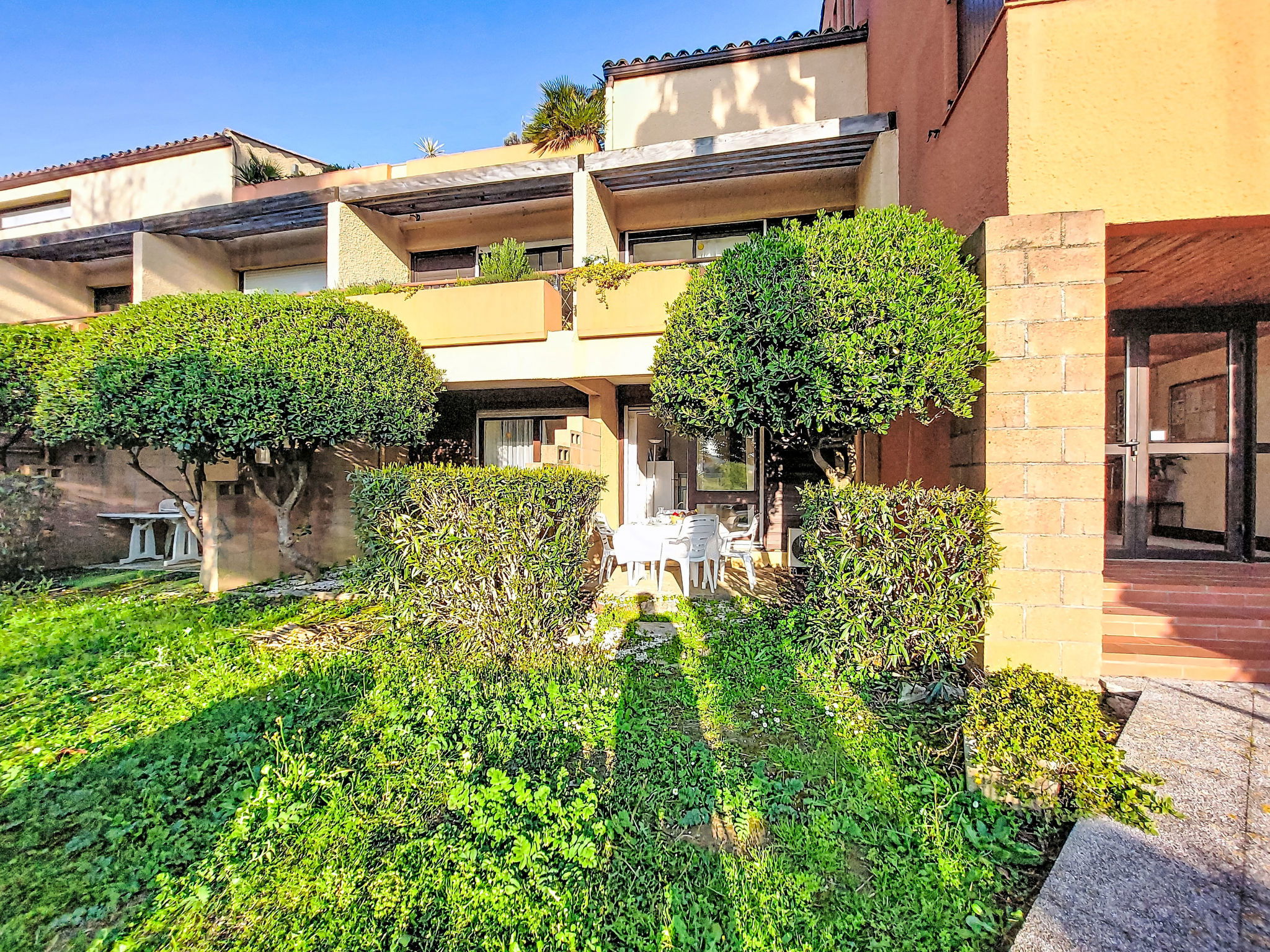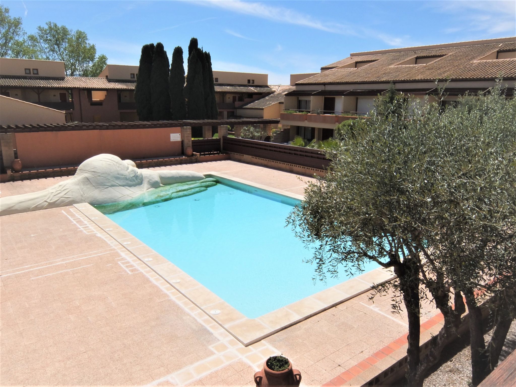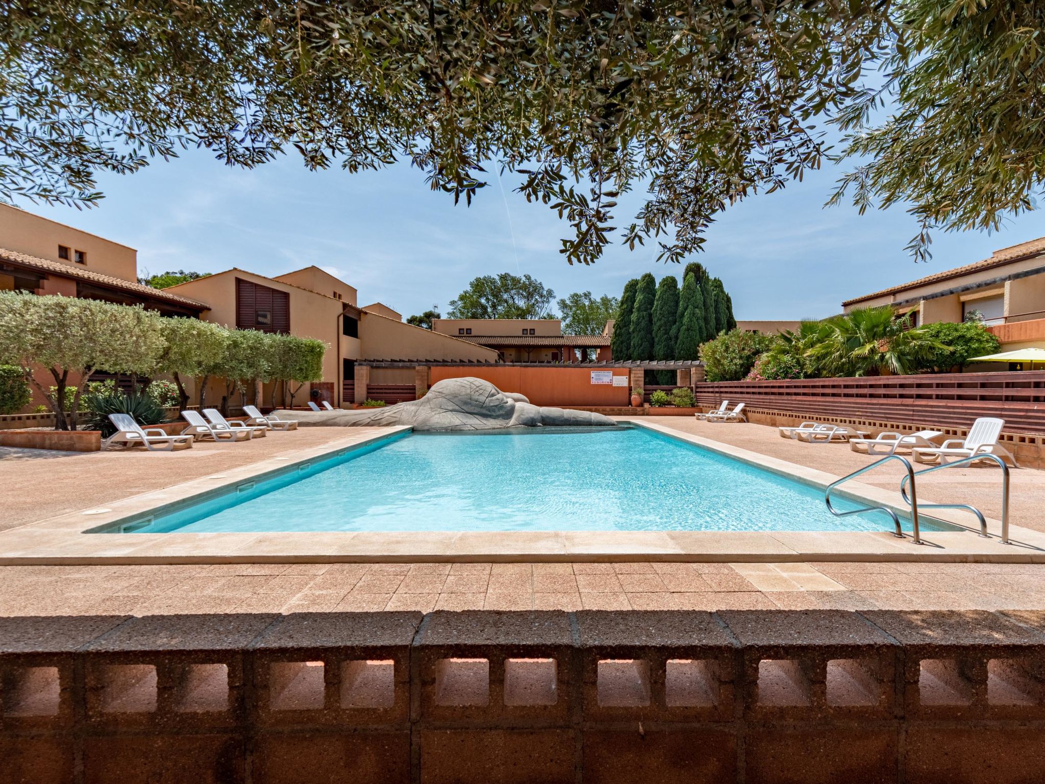 Residence "du Golf", 2 storeys. 92 apartments in the residence. In the district of Golf, 1.5 km from the sea, 1.5 km from the beach, on the golf course. For shared use: garden, swimming pool angular (14 x 8 m, seasonal availability: 15.Jun. - 30.Sep.). In the complex: lift, washing machine (extra), tumble dryer (extra). Parking on the premises. Shop 2 km, supermarket 2.4 km, restaurant 300 m, bus stop 1.7 km, railway station "Elne" 8.7 km, sandy beach "Plage Nord" 1.5 km. Sports harbour 3 km, golf course (27 hole) 300 m, sailing school 5.3 km, minigolf 1.4 km, riding stable 4.5 km, sports centre 6 km. Nearby attractions: Saint Cyprien Golf Resort 300 m, Aqualand 7 km.