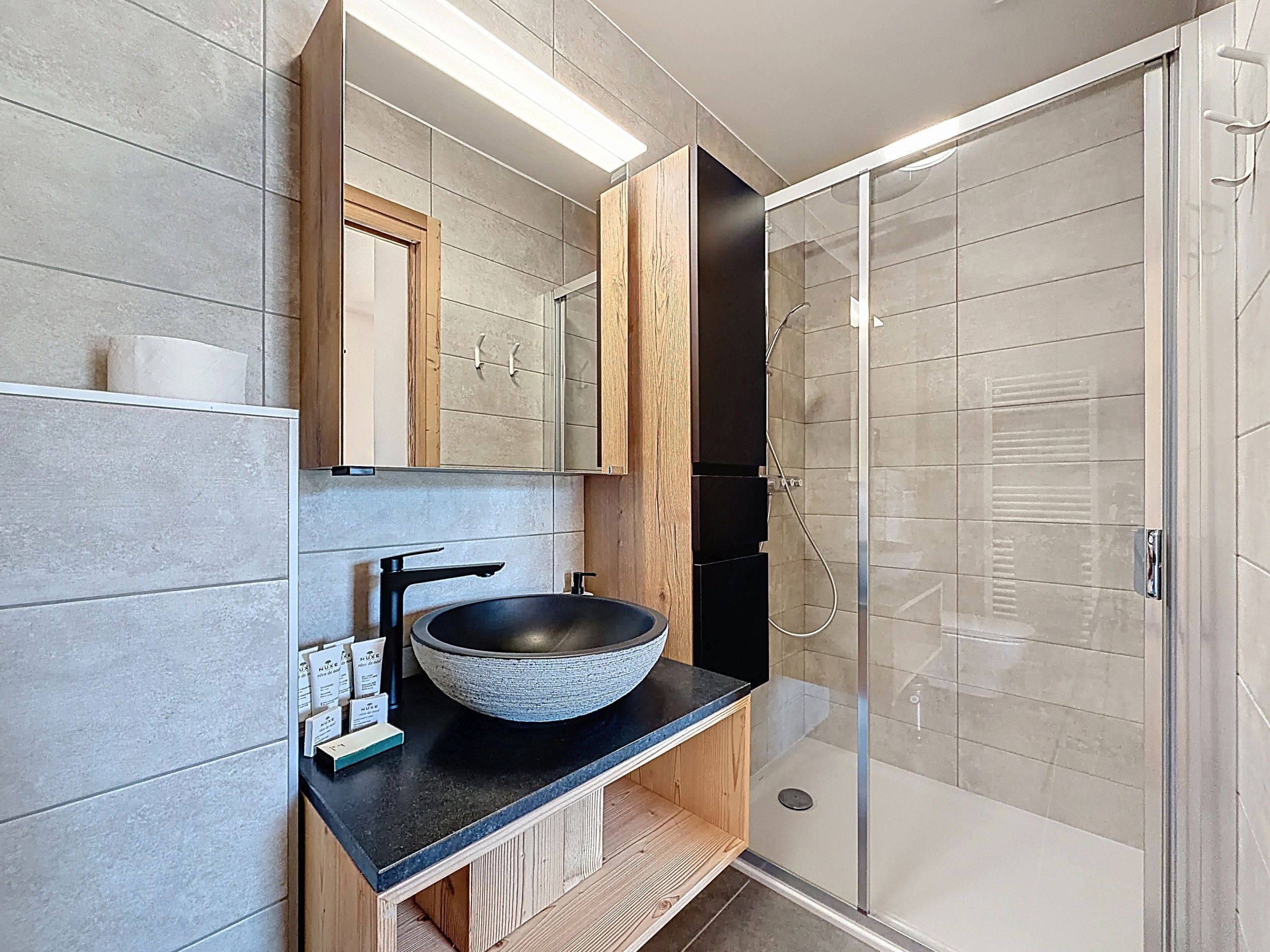 Parking is provided with a private and covered parking space in the same building as well as an outdoor parking space. The apartment also has a balcony offering an unobstructed view of the station. Two shower rooms will provide optimal comfort for all occupants.