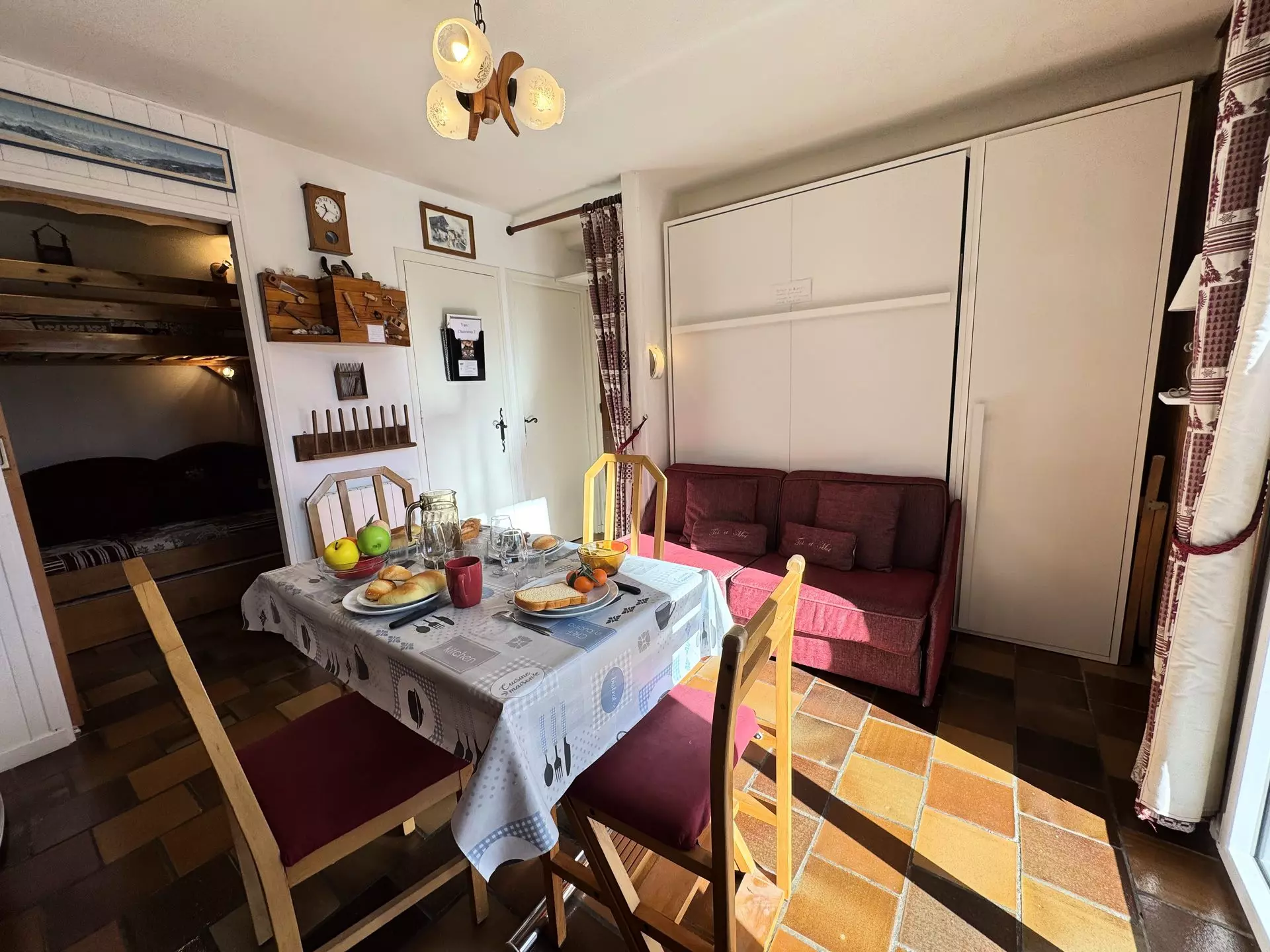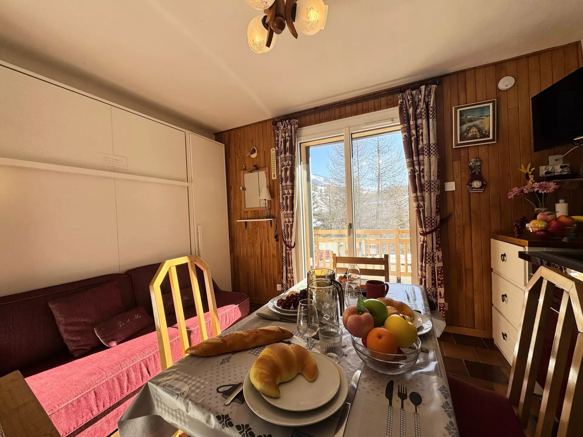 The Agence de la Forêt Blanche offers a pleasant 21 m² apartment located in a family-friendly residence, very close to the slopes and shops. It comprises a sleeping alcove with a bunk bed and a fold-down double bed that pulls out from the wall (please handle with care due to its weight). There is a bathroom with a shower, toilet, and washing machine. The kitchen is fully equipped and includes a kettle and a filter coffee machine. The apartment is located on the ground floor and has a private terrace. It is approximately 150 meters from the slopes and 200 meters from the shops. The apartment does not have a private parking space, but there is a parking area reserved for residents.