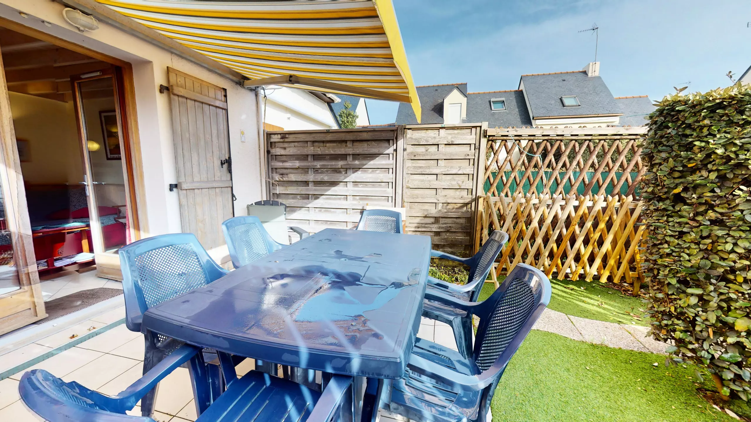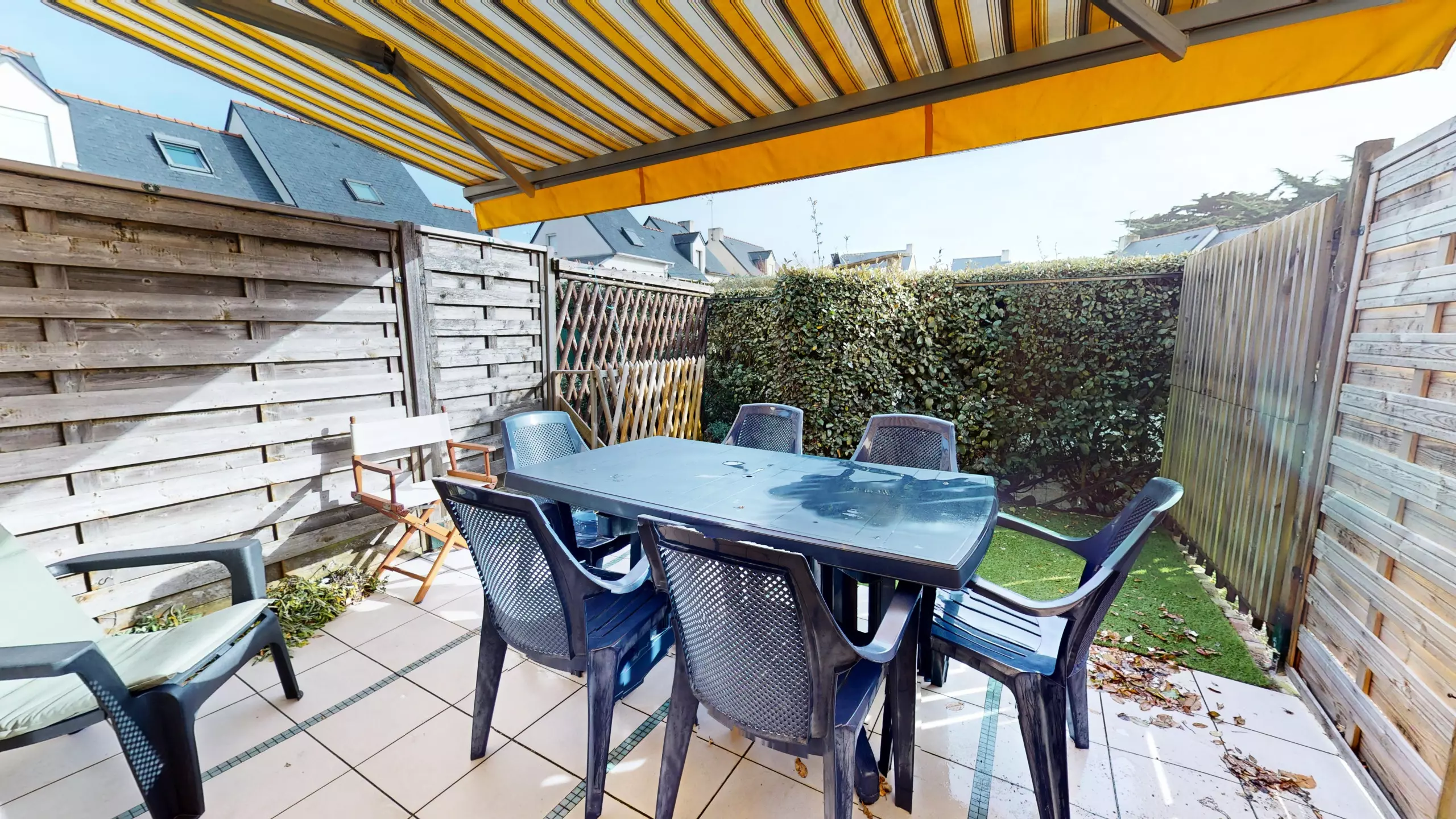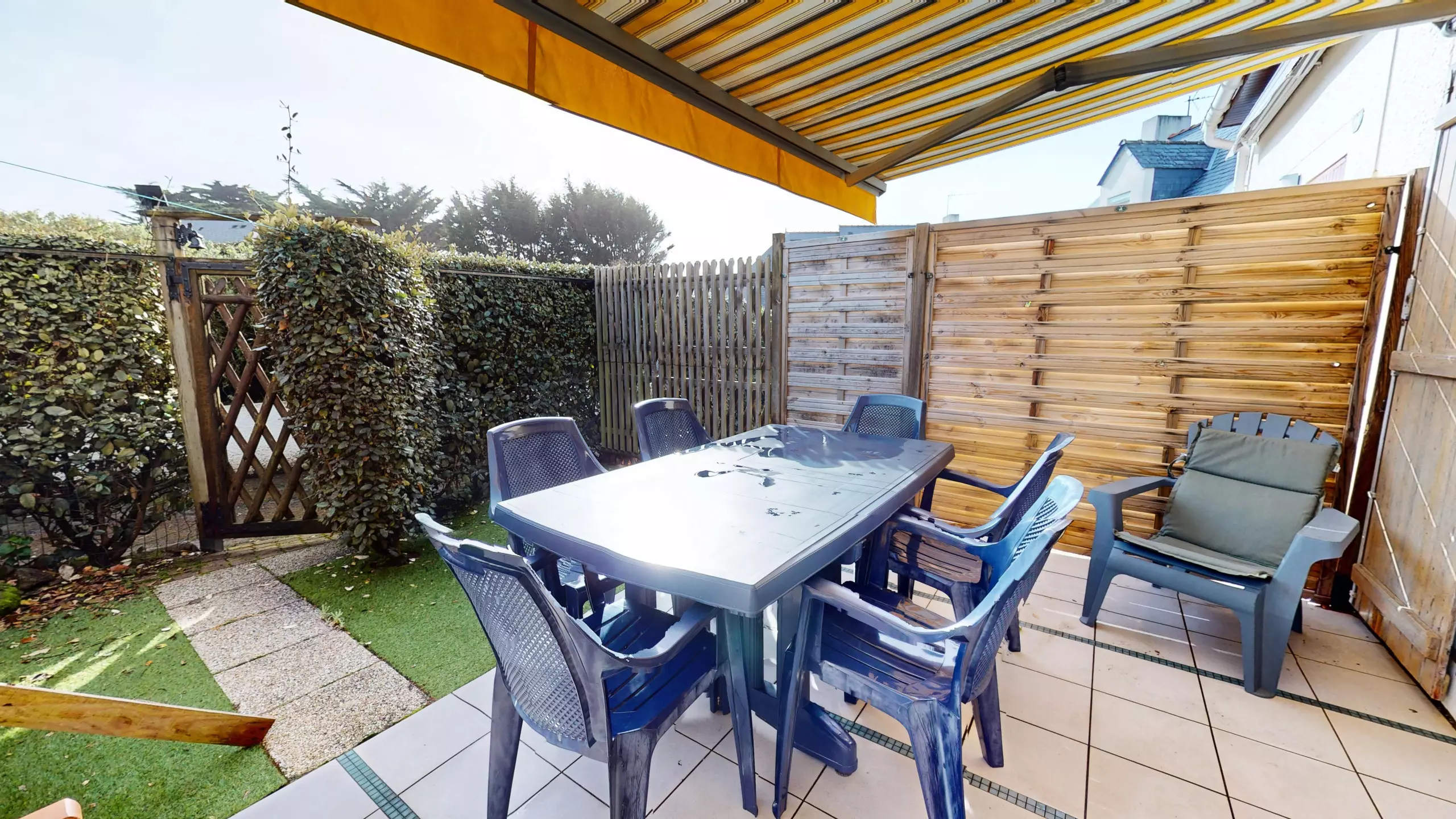 Privileged outdoor space: Enjoy a lovely, fairly spacious terrace equipped with garden furniture and an awning, ideal for your breakfasts in the open air.