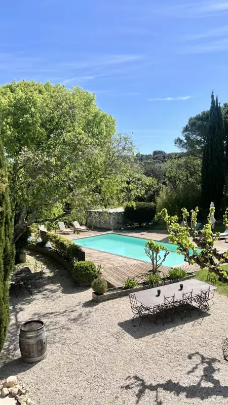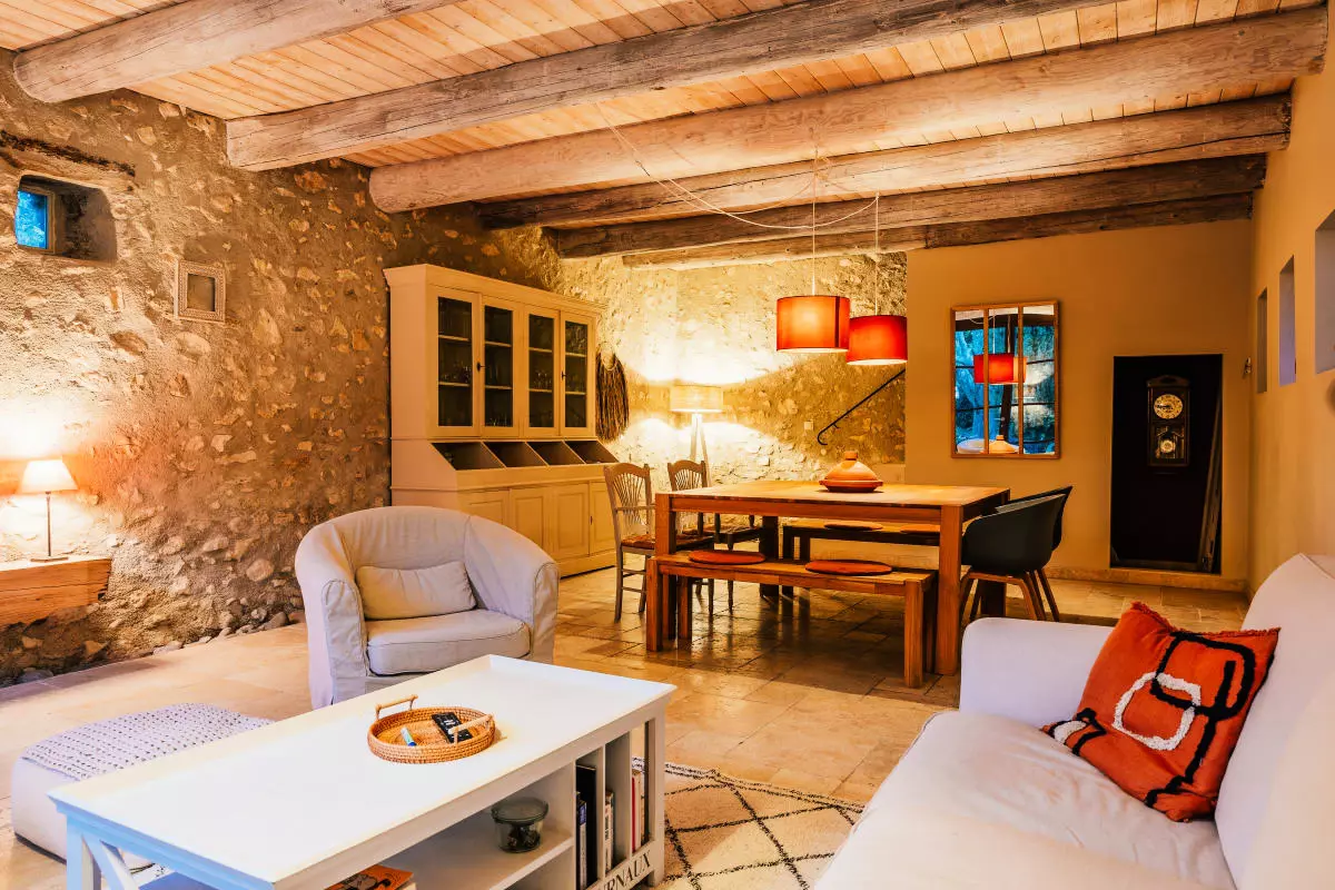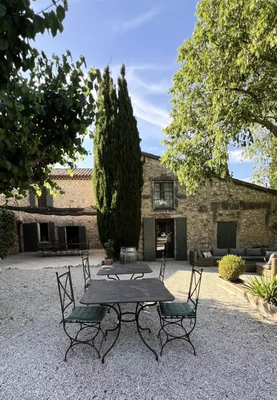Nestled in a verdant setting just minutes from the center of Eygalières, the jewel of the Alpilles, this traditional stone farmhouse welcomes you for an unforgettable Provençal stay. Combining authenticity, comfort, and a cool, inviting atmosphere, this large family home accommodates up to 14 people, making it ideal for holidays with friends or family.