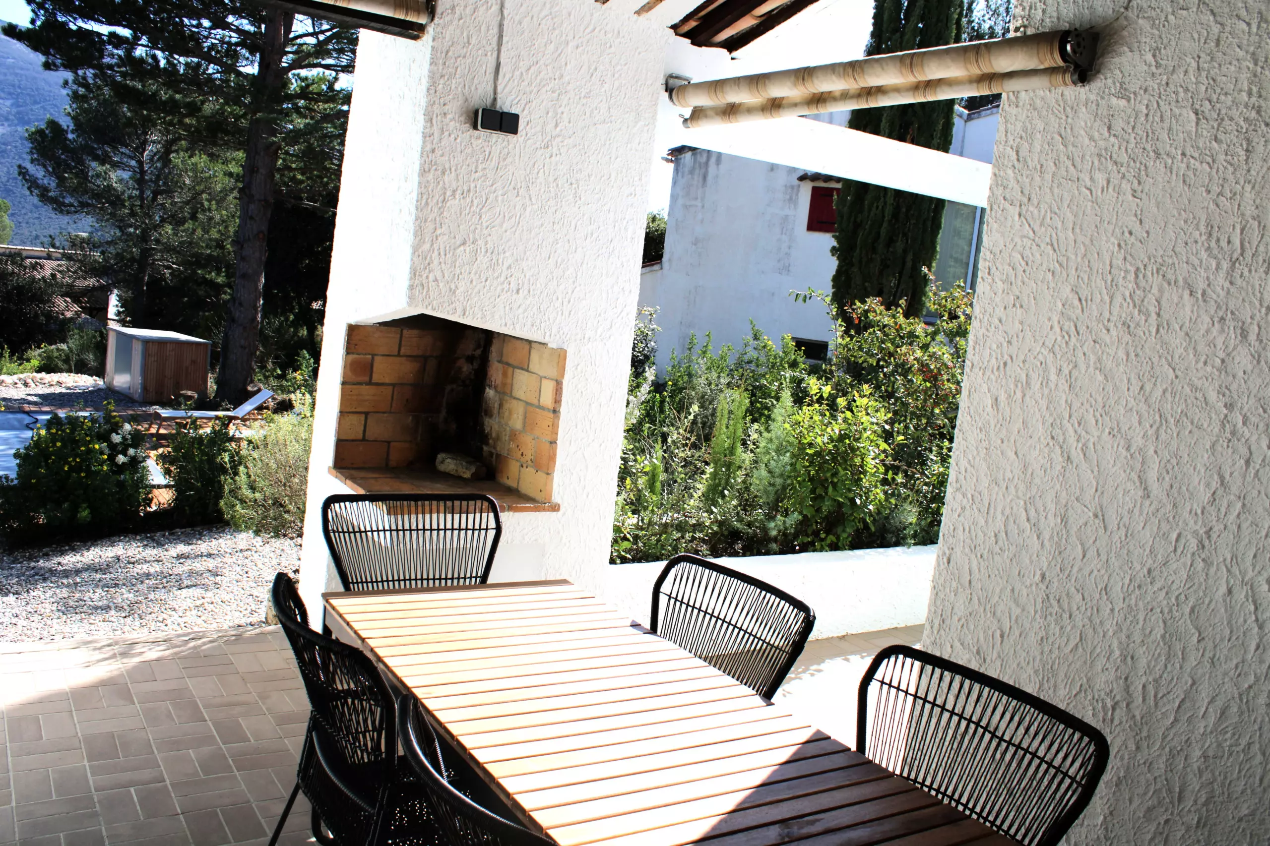 Nestled in a quiet residential neighborhood, this newly renovated 90m² house welcomes you with its breathtaking views of Mont Ventoux and the surrounding garrigue. It comprises a spacious and bright living room, a fully equipped separate kitchen, two bedrooms with double beds, and a mezzanine offering two additional sleeping spaces. Enjoy the private swimming pool and covered terrace for a truly relaxing Provençal holiday. A secure bicycle garage and two parking spaces are also available.