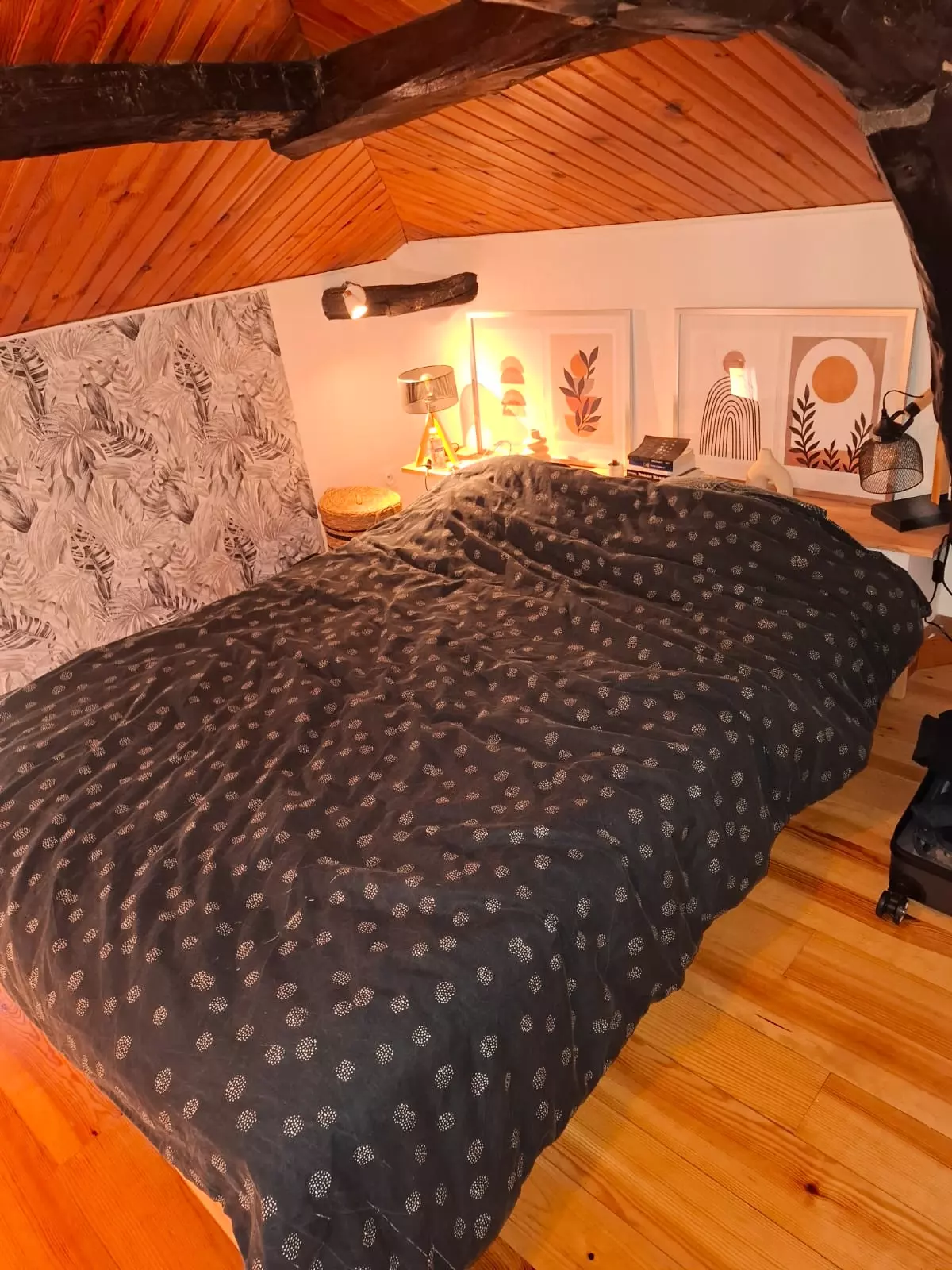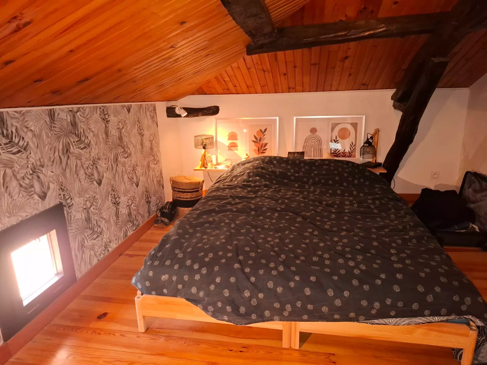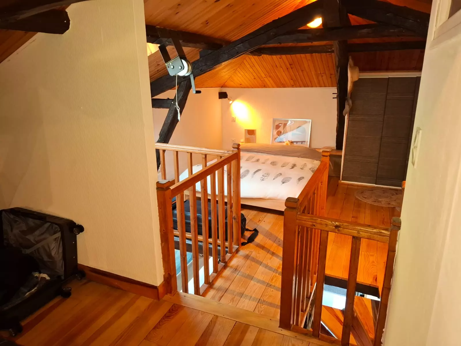 The house is arranged over two levels. Upstairs, you'll find two comfortable bedrooms, each furnished with a 160x200 cm double bed, offering a true haven of rest. A luggage lift makes it easy to bring your suitcases upstairs, a welcome feature for added convenience. The bathroom has a modern shower and toilet, designed to meet all your needs during your stay.