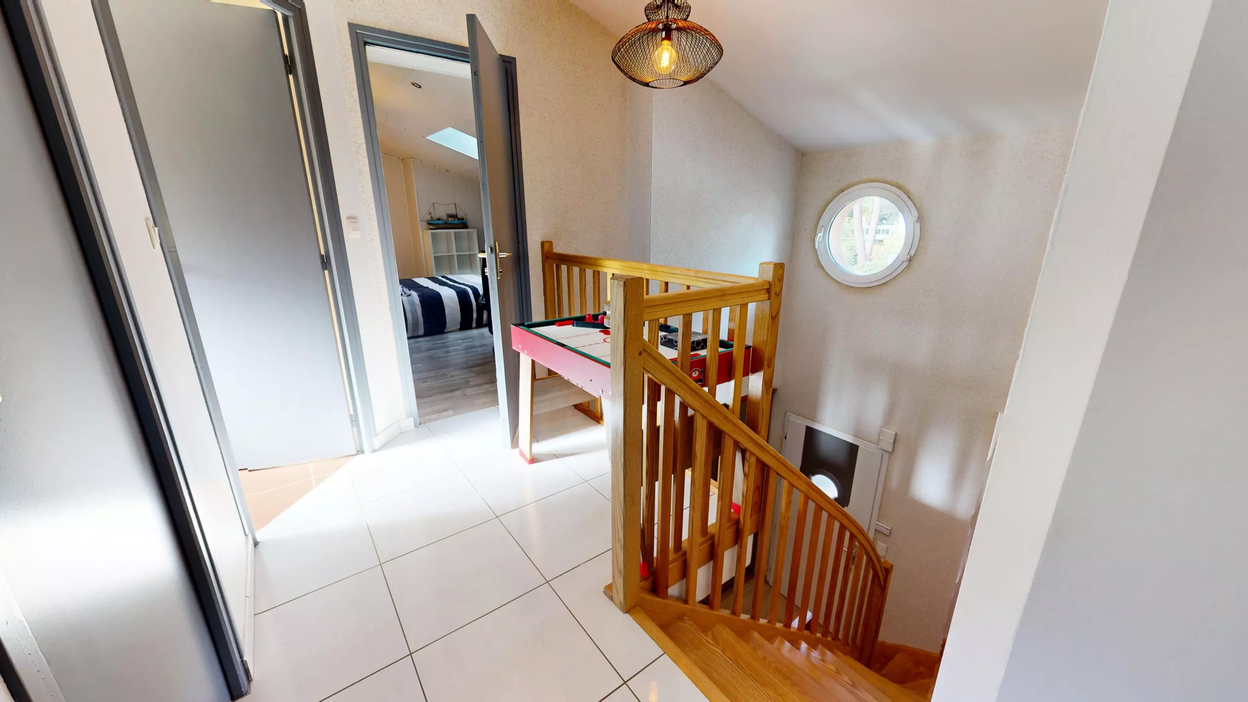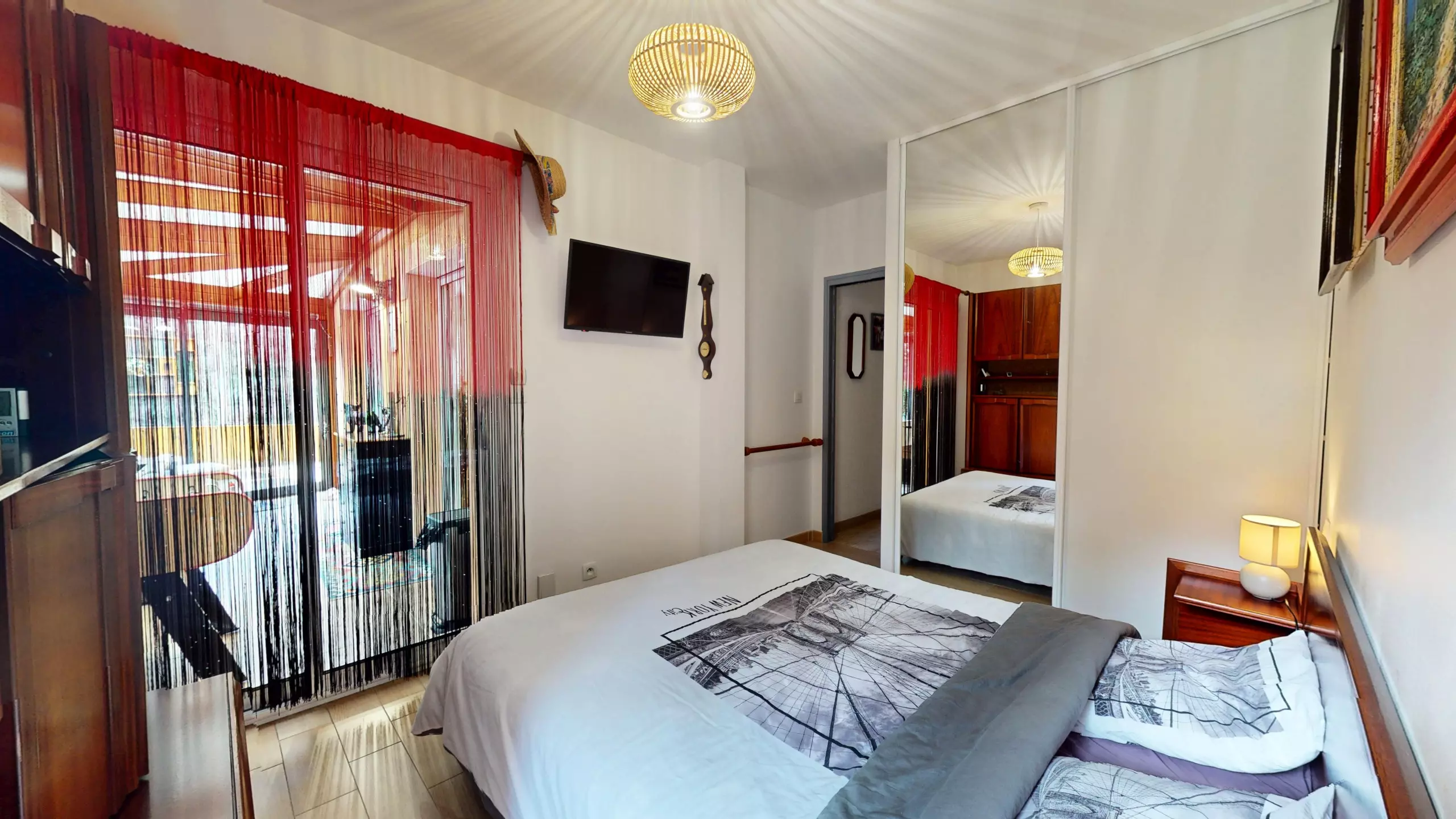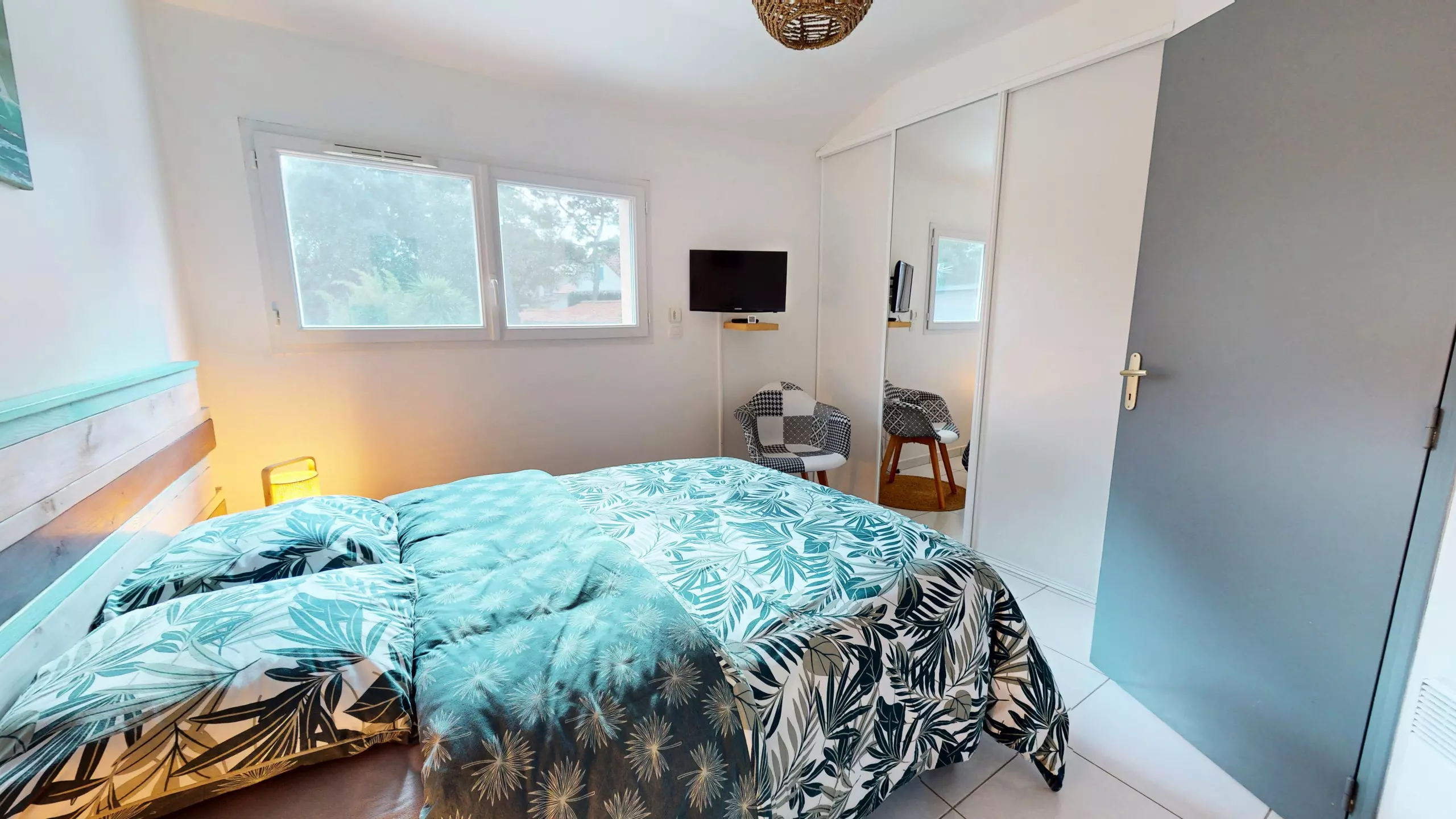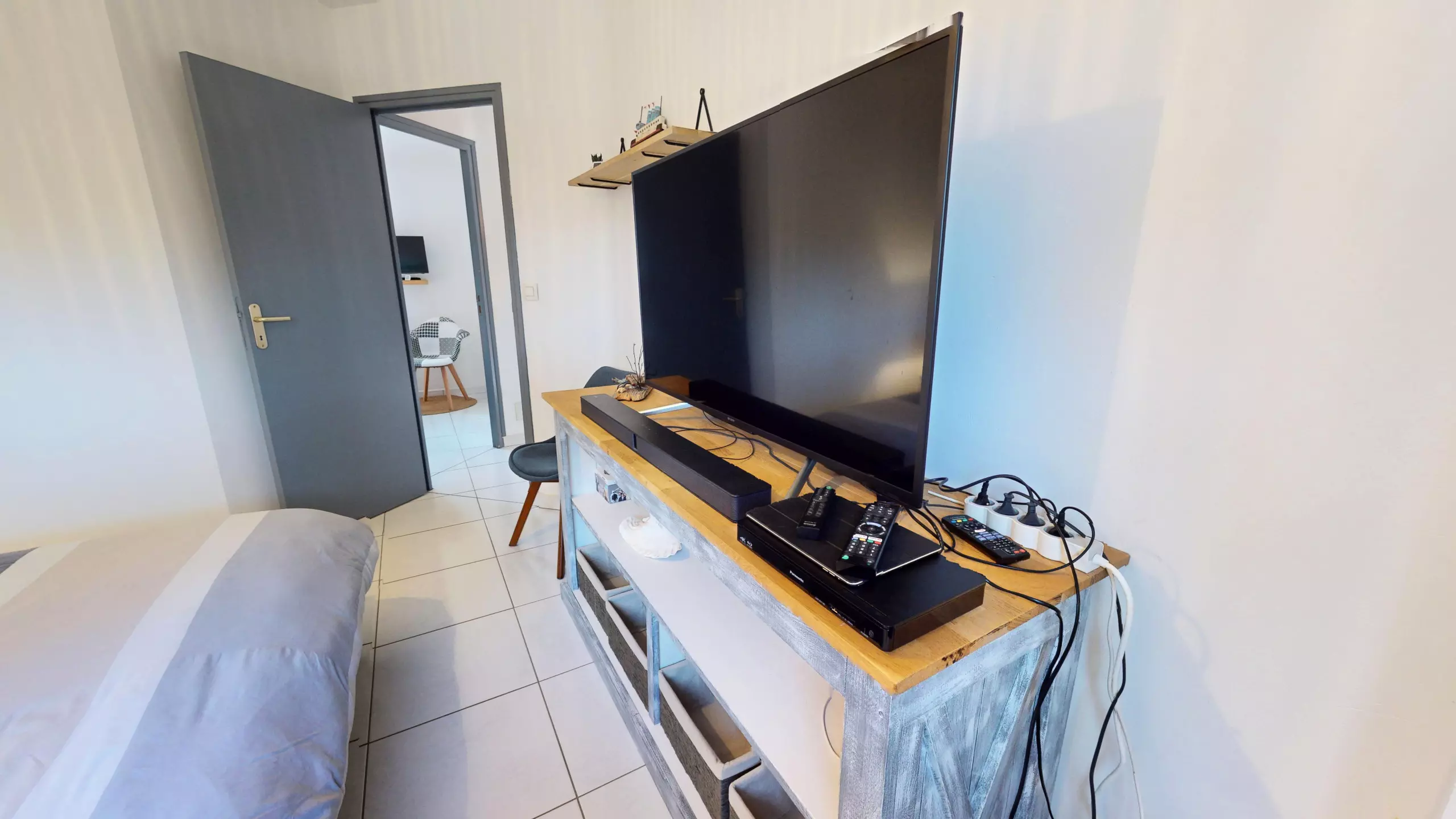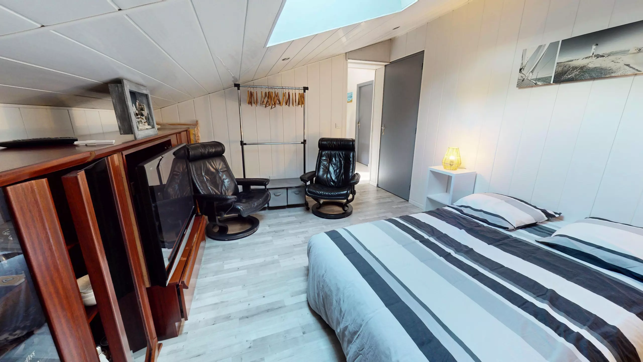 Upstairs, the house has three bedrooms, all equipped with a television: