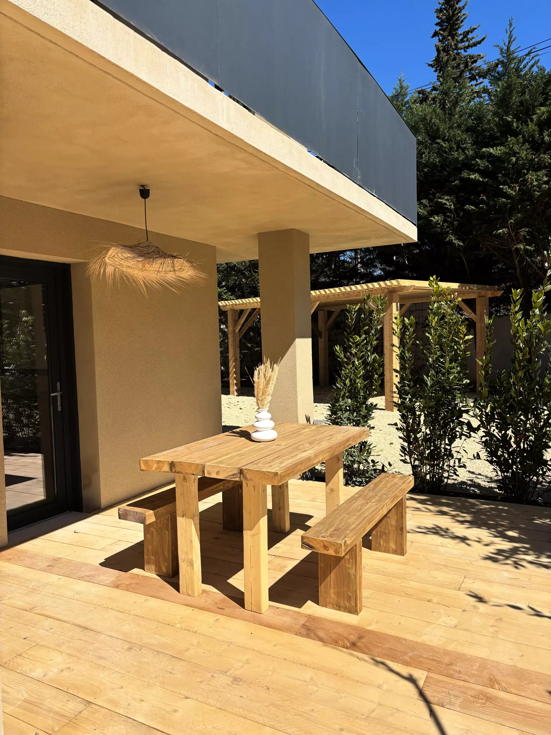 Combining charm and modernity, the house offers beautiful, bright, and welcoming living spaces. Enjoy sought-after amenities for an uncompromising stay: high-speed Wi-Fi, air conditioning, a private swimming pool, and a pétanque court for moments of typical Provençal relaxation.