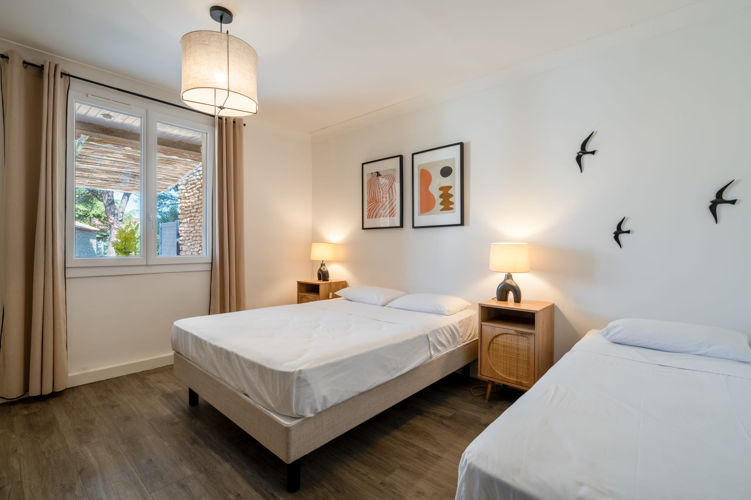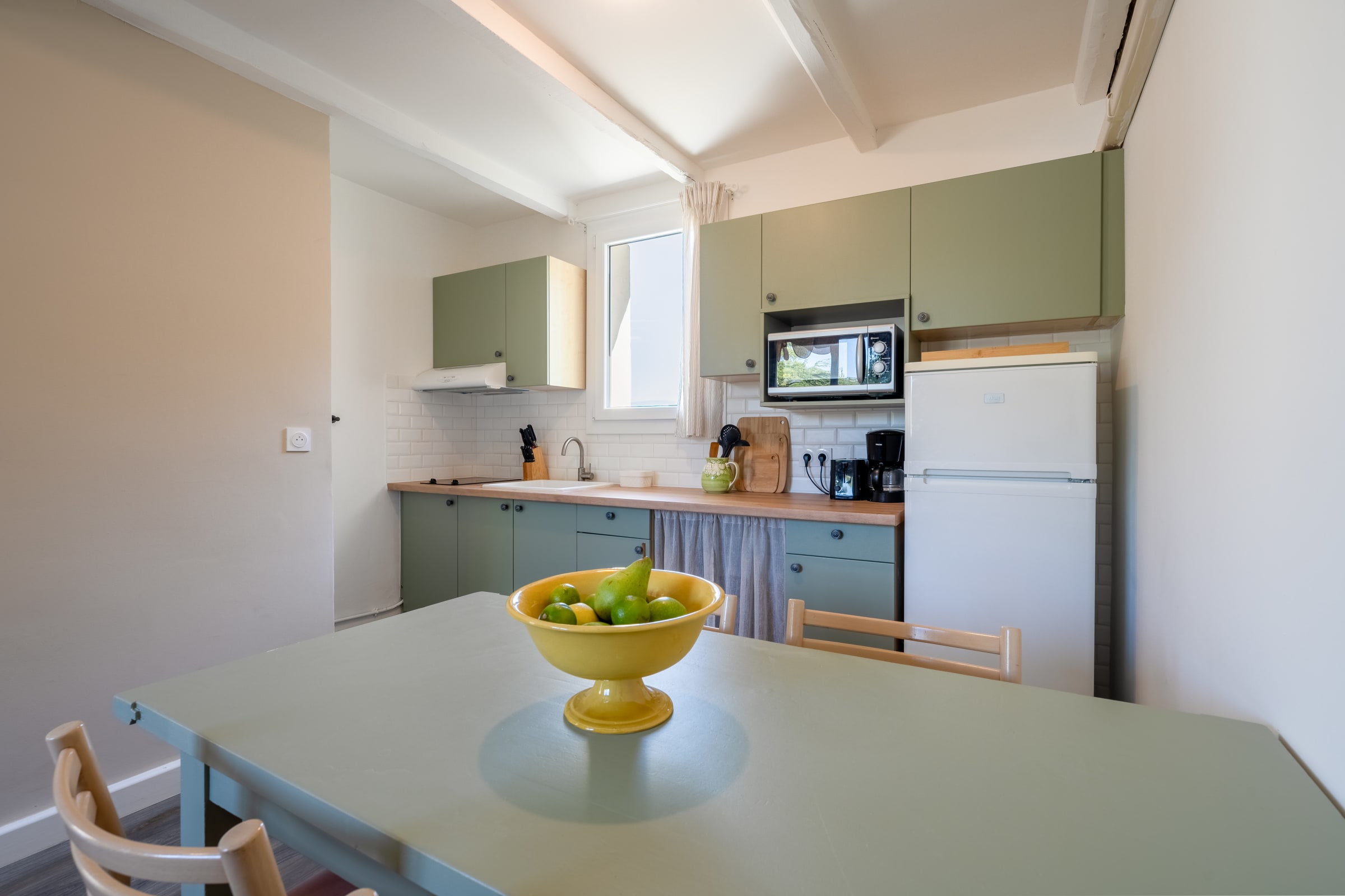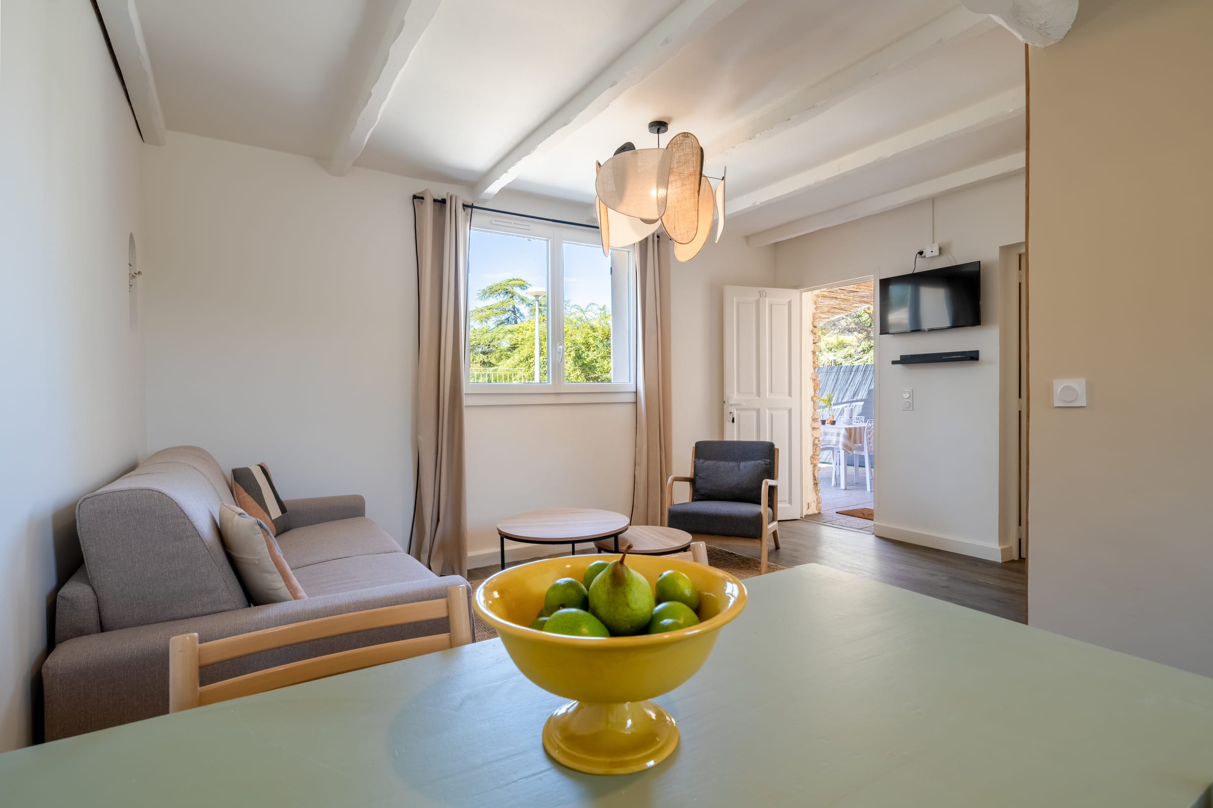 Stay cool during the hot summer days with provided air conditioning. The fully equipped kitchen allows you to prepare delightful meals using fresh local products from the nearby Provencal market.