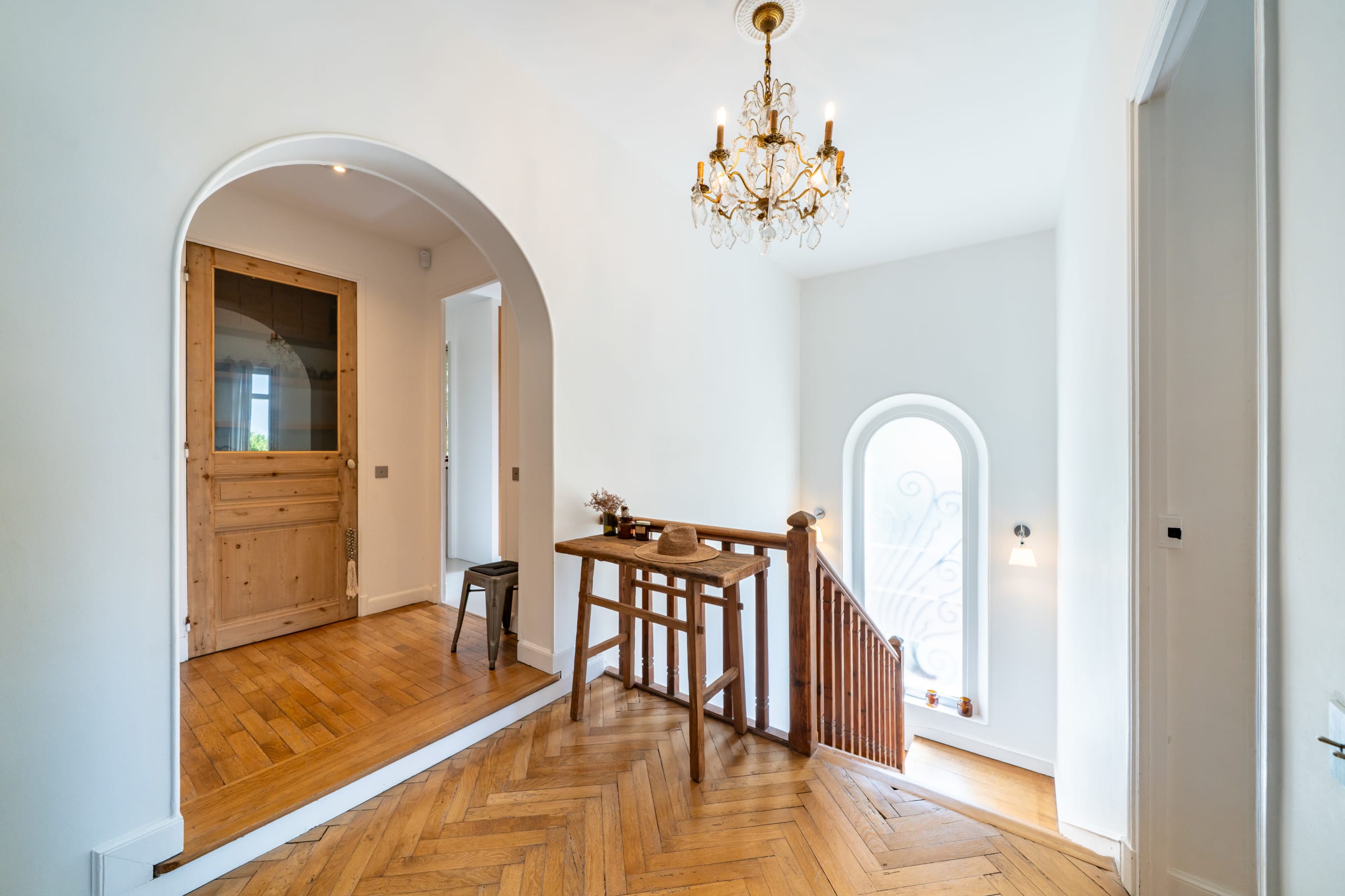 Nestled in the heart of a peaceful and leafy residential area, this charming villa with distinctive character offers an elegant and welcoming setting. Its generous light-filled volumes and refined atmosphere embody the Mediterranean art of living, blending softness, privacy and conviviality.