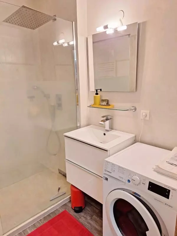 To freshen up after a day of activities, a functional shower room equipped with a washing machine is at your disposal.
