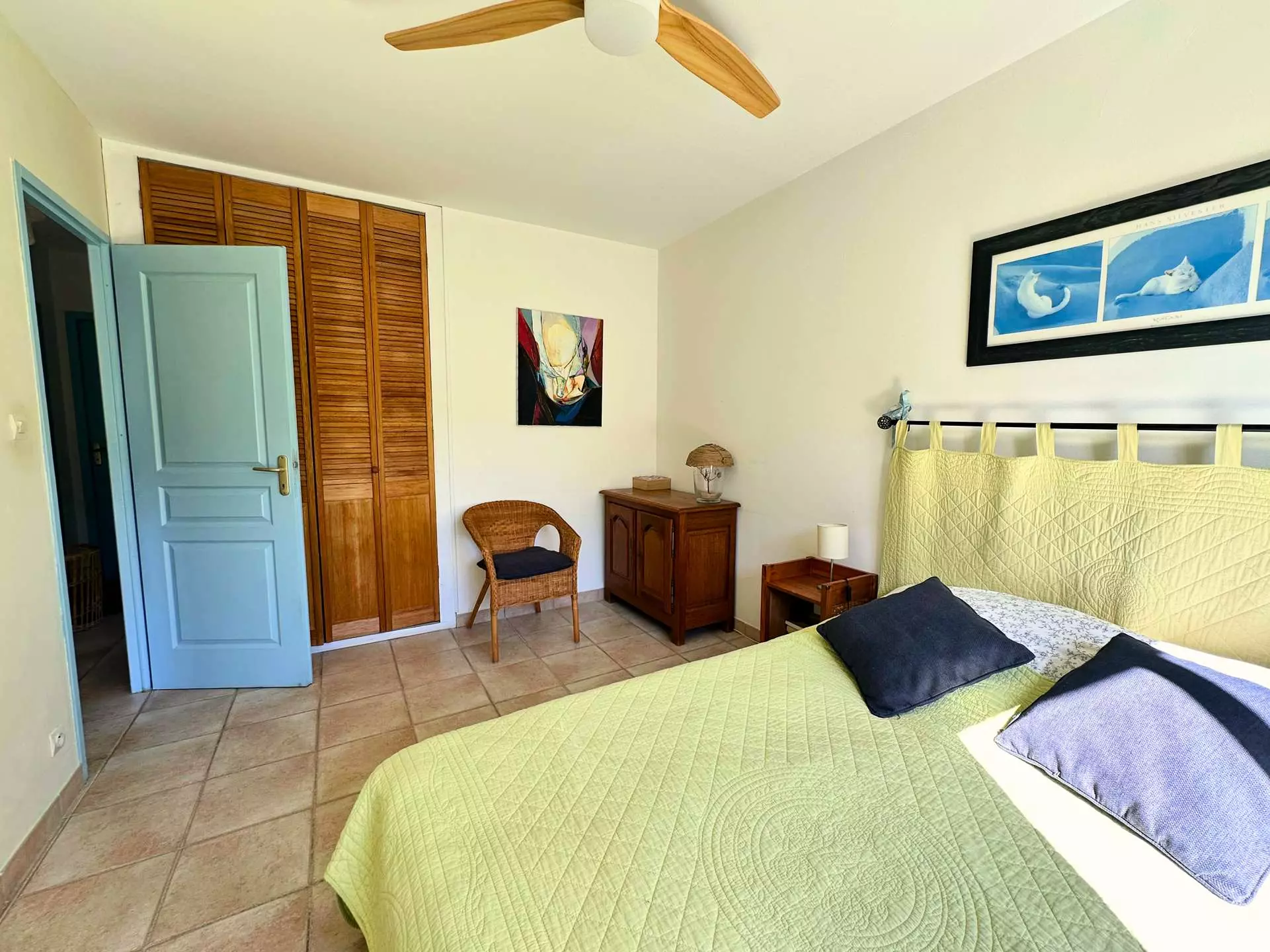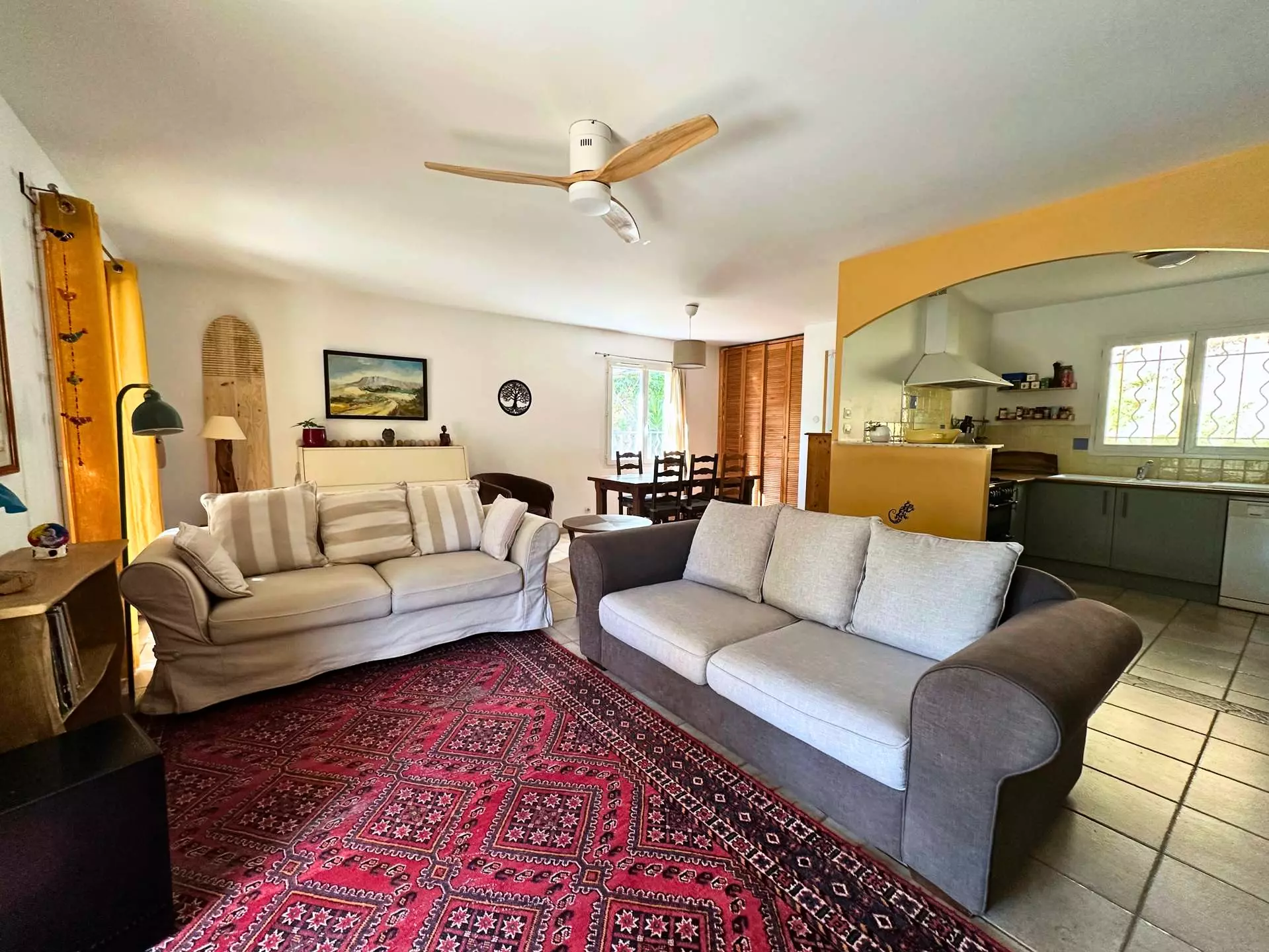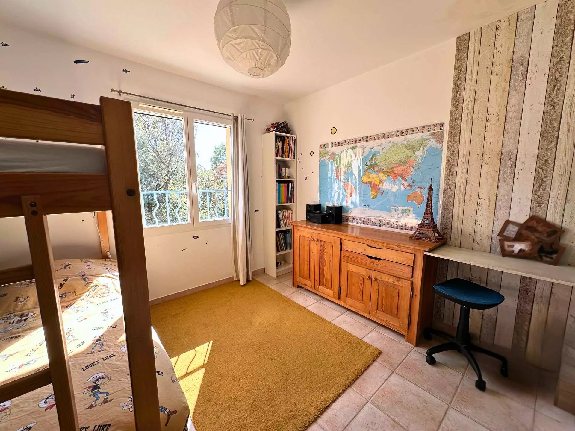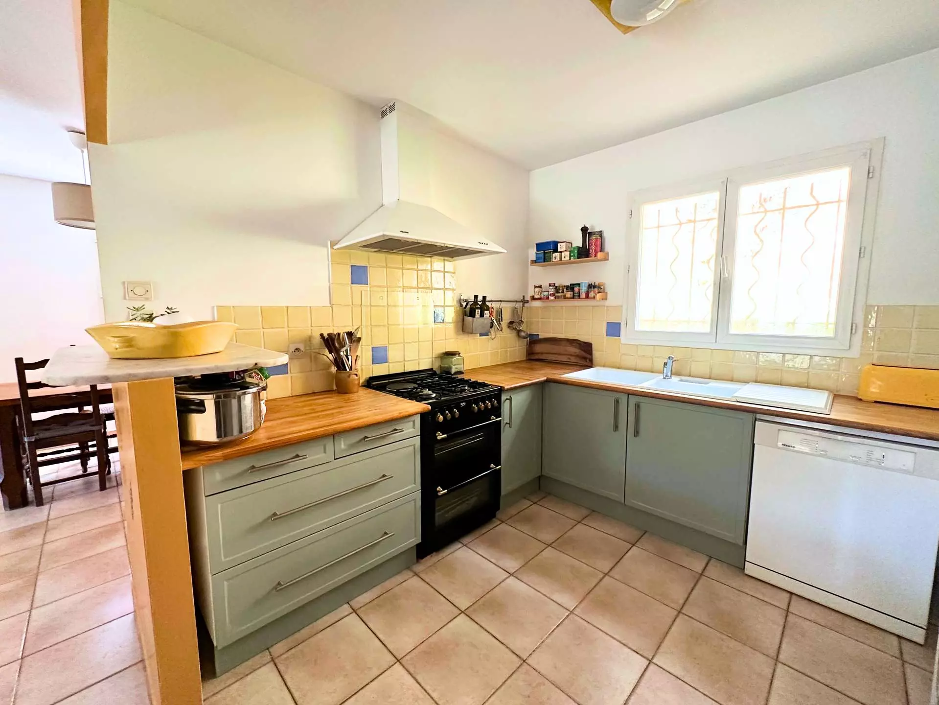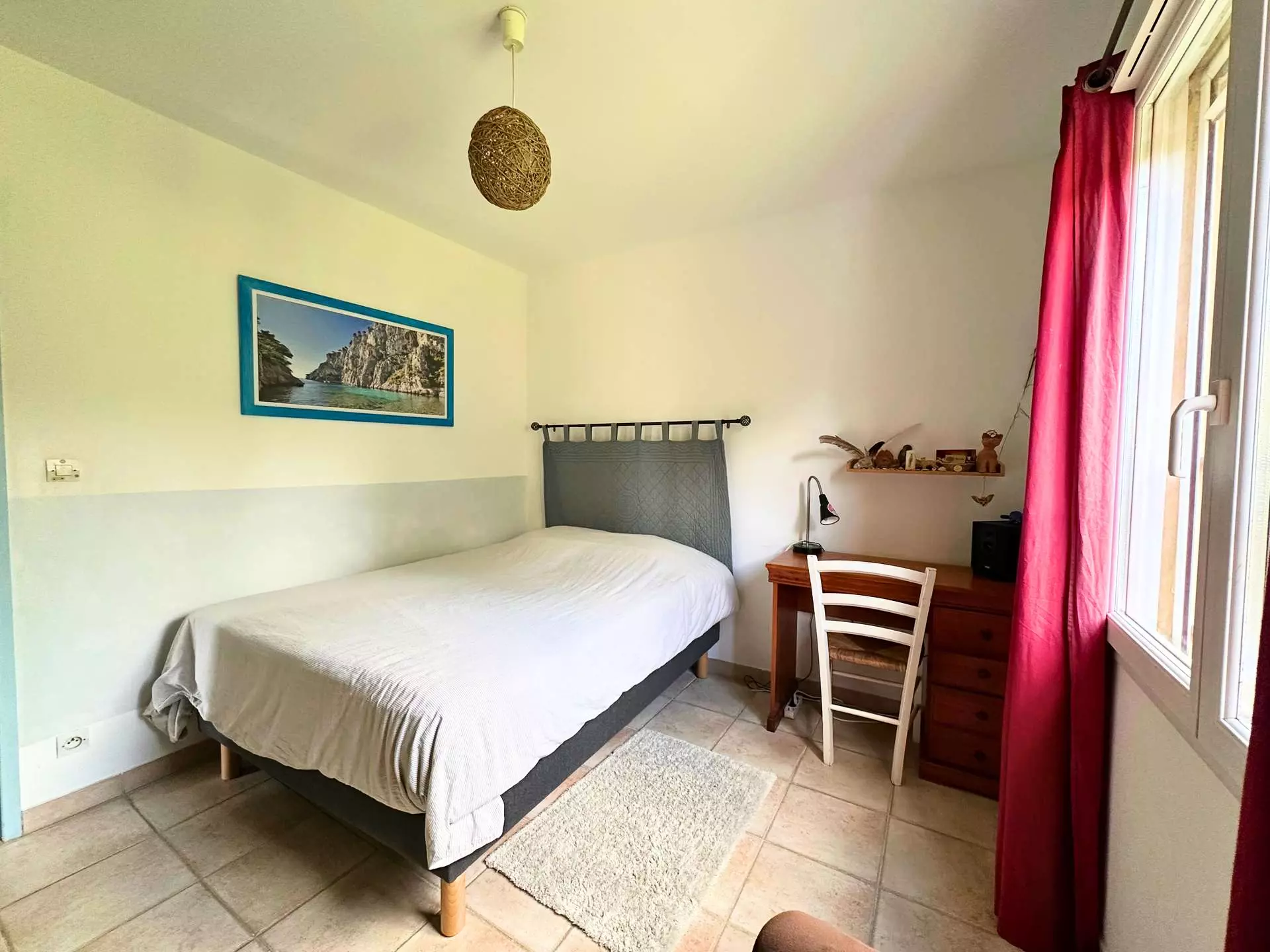 This villa benefits from a vast outdoor space of approximately 1,500 m², with a private 5 x 3 m salt water pool and a lovely terrace equipped with a shaded outdoor dining area and an electric griddle, ideal for enjoying the sun and sharing meals with family or friends.